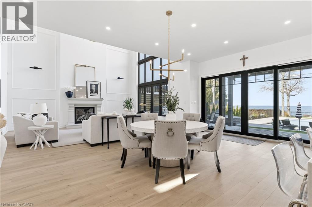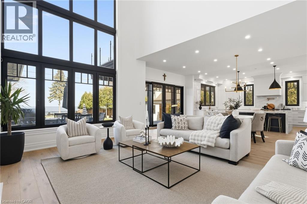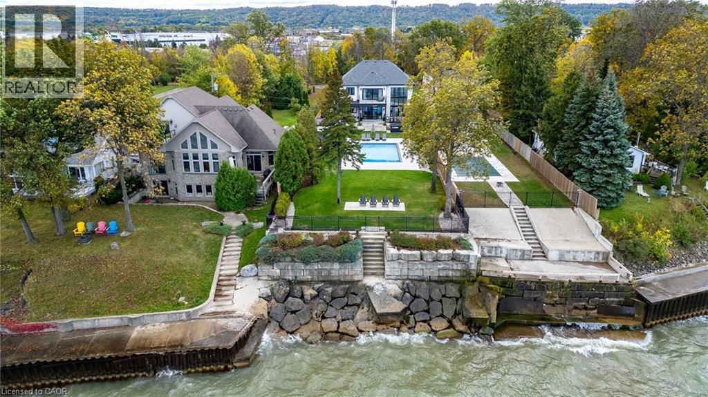Welcome to an extraordinary custom-built waterfront residence offering luxury, craftsmanship, and breathtaking views at every turn. Designed with top-of-the-line finishes throughout, this home showcases soaring 20-foot ceilings in the great room, expansive windows that frame the water, and a seamless blend of elegance and comfort. The chef’s kitchen is a true showpiece, featuring premium appliances, refined cabinetry, a service pantry —perfect for both everyday living and entertaining. The spa-like primary suite offers a serene retreat with stunning views, a beautifully appointed ensuite, and a spacious walk-in closet. Generously sized bedrooms provide comfort and privacy for family and guests. Step outside to your own resort-style oasis, complete with an inground saltwater heated pool overlooking the shoreline. Covered outdoor spaces and meticulously landscaped grounds create the ideal setting for relaxation or gatherings in every season. An elevator provides effortless access to all three levels, enhancing convenience and accessibility. The 3-car garage, spacious mudroom, and main-floor laundry add exceptional functionality, making daily living as comfortable and practical as it is luxurious. (id:64974)