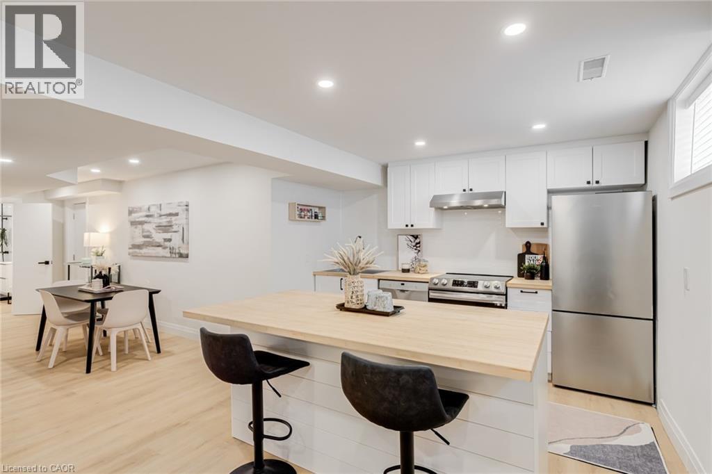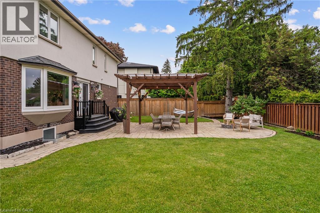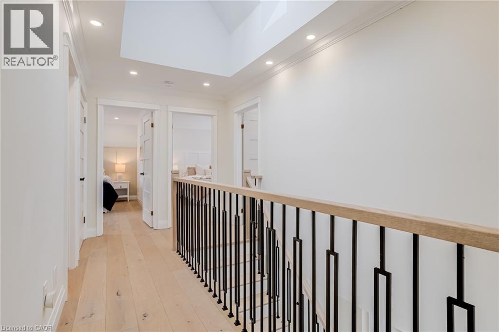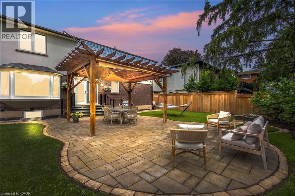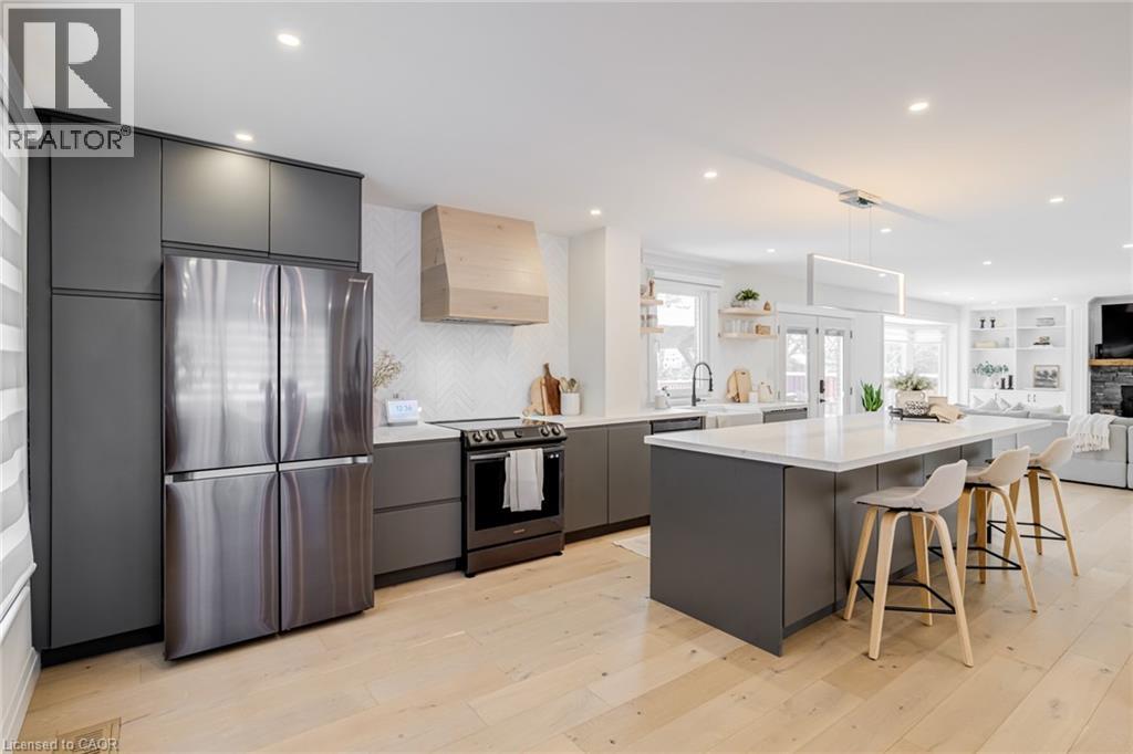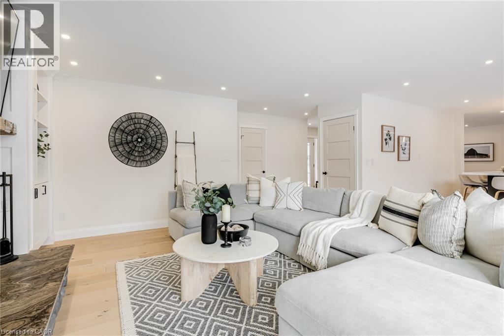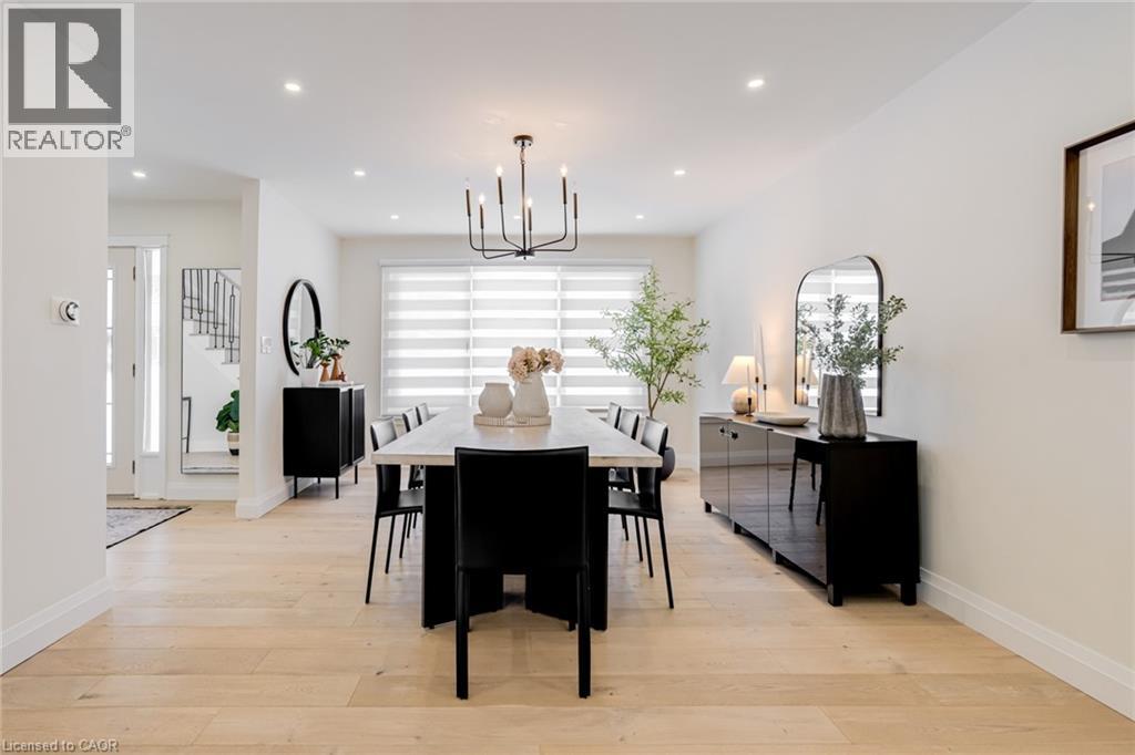 Ideally located on one of South Waterdown’s most desirable streets in the Rockcliffe Survey neighbourhood. Set on a sprawling 75-foot-wide lot, this fully renovated designer two-storey home is just steps to escarpment trails, parks, schools, all of Waterdown’s convenient shopping, dining, or service amenities, and it offers quick access to Highway 403, Aldershot, and the GO Station. Renovated from top to bottom and meticulously maintained, this stunning residence offers 4+2 bedrooms and 4 total bathrooms, with over 3,500 sqft. of thoughtfully designed living space. The main floor features a chef-inspired kitchen with custom cabinetry, quartz counters, and black stainless-steel appliances. Flowing seamlessly into a bright living area anchored by built-in shelving and a gorgeous wood-burning fireplace. The open concept layout is perfect for entertaining and everyday living. A large dining room, stylish powder room and laundry with inside entry from the garage complete the level. Upstairs, skylights flood the home with natural light. Four spacious bedrooms are complemented by a modern main bathroom with a double vanity, and elegant finishes. The primary suite feels like a private retreat, complete with a spa-inspired ensuite and a custom walk-in closet. The fully finished lower level features a separate entrance. There are two bedrooms (with egress windows), a full kitchen, bathroom, and spacious living area—ideal for extended living space,multi-generational living or an income generating suite. This home also features a unique heated studio located at the rear of the garage with access from both the laundry room or directly from the exterior—perfect for a home office, gym, or creative space. Additionalhighlights include engineered hardwood, custom millwork, modern lighting and remote blinds. Step outside to your own private oasis with a landscaped, pool-sized backyard, pergola, and fire pit—an idealsetting for relaxing or entertaining. (id:64974)