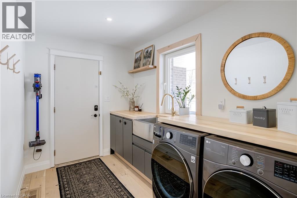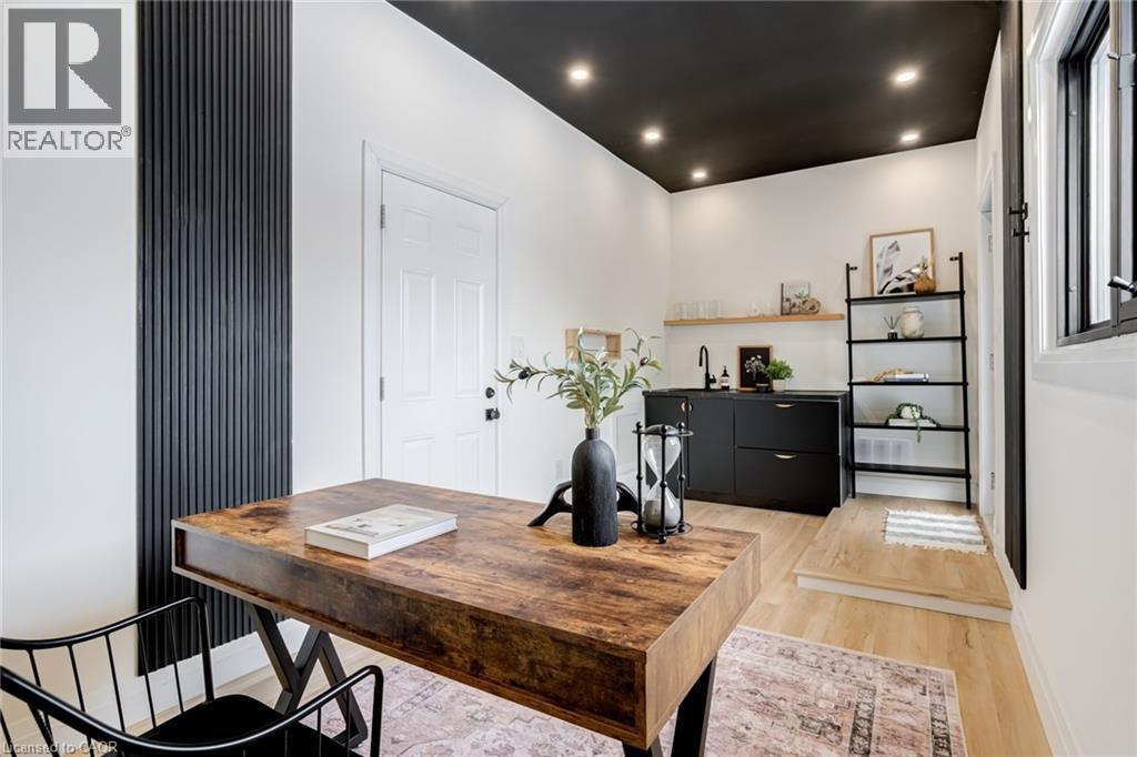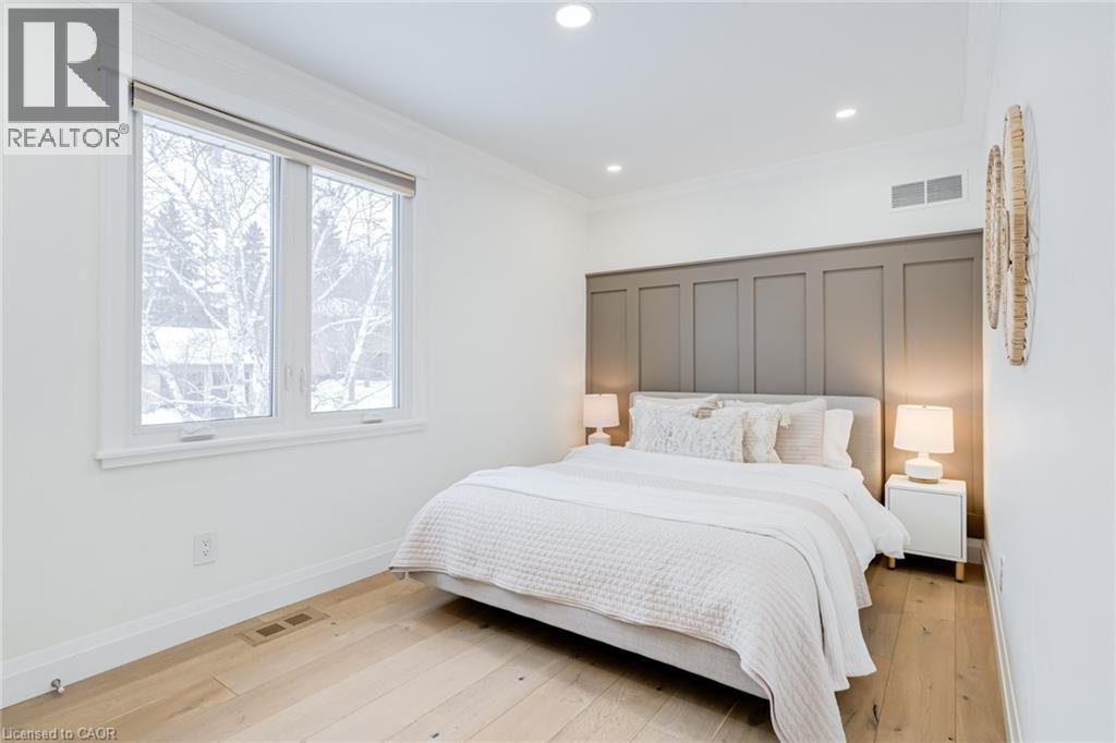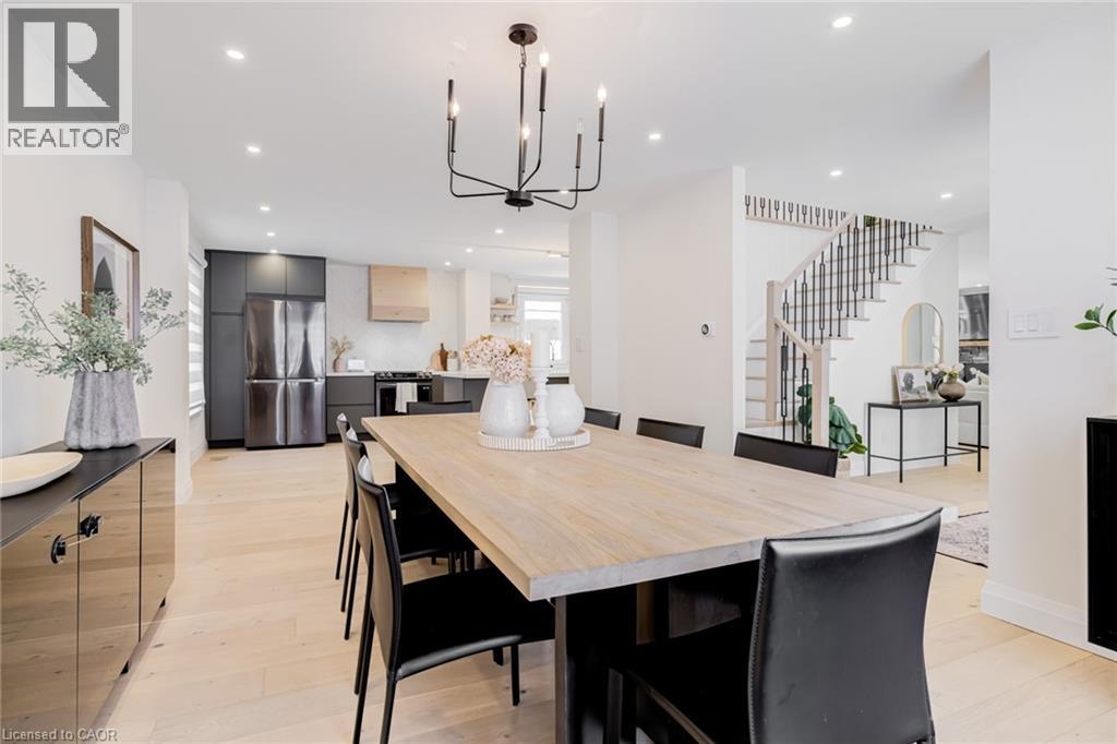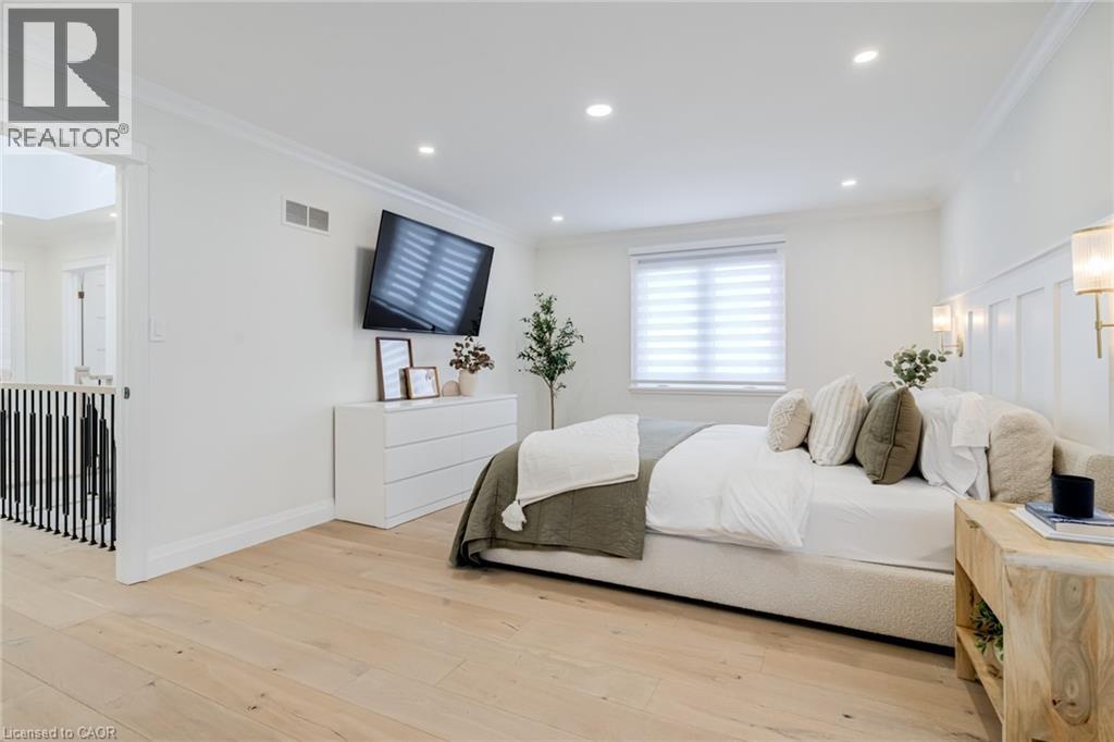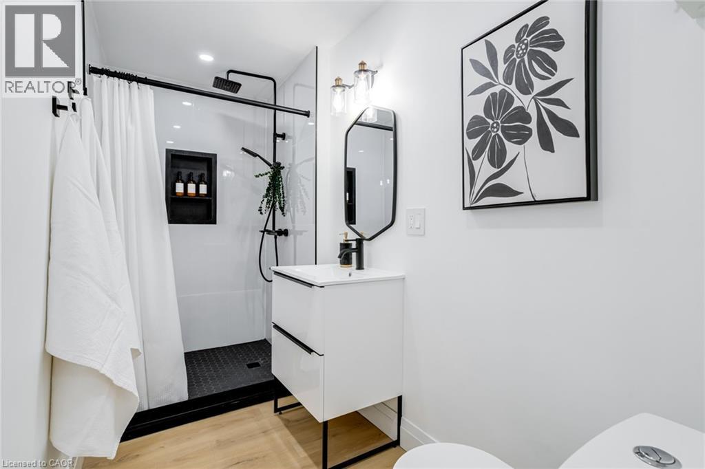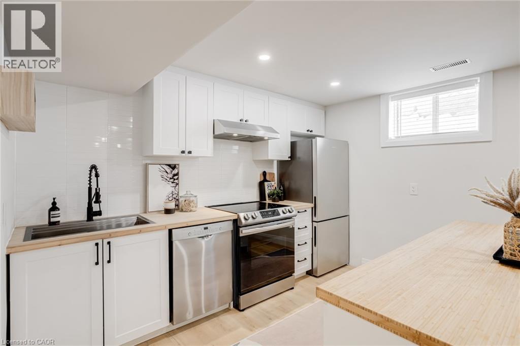 Ideally located on one of South Waterdown’s most desirable streets in the Rockcliffe Survey neighbourhood. Set on a sprawling 75-foot-wide lot, this fully renovated designer two-storey home is just steps to escarpment trails, parks, schools, all of Waterdown’s convenient shopping, dining, or service amenities, and it offers quick access to Highway 403, Aldershot, and the GO Station. Renovated from top to bottom and meticulously maintained, this stunning residence offers 4+2 bedrooms and 4 total bathrooms, with over 3,500 sqft. of thoughtfully designed living space. The main floor features a chef-inspired kitchen with custom cabinetry, quartz counters, and black stainless-steel appliances. Flowing seamlessly into a bright living area anchored by built-in shelving and a gorgeous wood-burning fireplace. The open concept layout is perfect for entertaining and everyday living. A large dining room, stylish powder room and laundry with inside entry from the garage complete the level. Upstairs, skylights flood the home with natural light. Four spacious bedrooms are complemented by a modern main bathroom with a double vanity, and elegant finishes. The primary suite feels like a private retreat, complete with a spa-inspired ensuite and a custom walk-in closet. The fully finished lower level features a separate entrance. There are two bedrooms (with egress windows), a full kitchen, bathroom, and spacious living area—ideal for extended living space,multi-generational living or an income generating suite. This home also features a unique heated studio located at the rear of the garage with access from both the laundry room or directly from the exterior—perfect for a home office, gym, or creative space. Additionalhighlights include engineered hardwood, custom millwork, modern lighting and remote blinds. Step outside to your own private oasis with a landscaped, pool-sized backyard, pergola, and fire pit—an idealsetting for relaxing or entertaining. (id:64974)