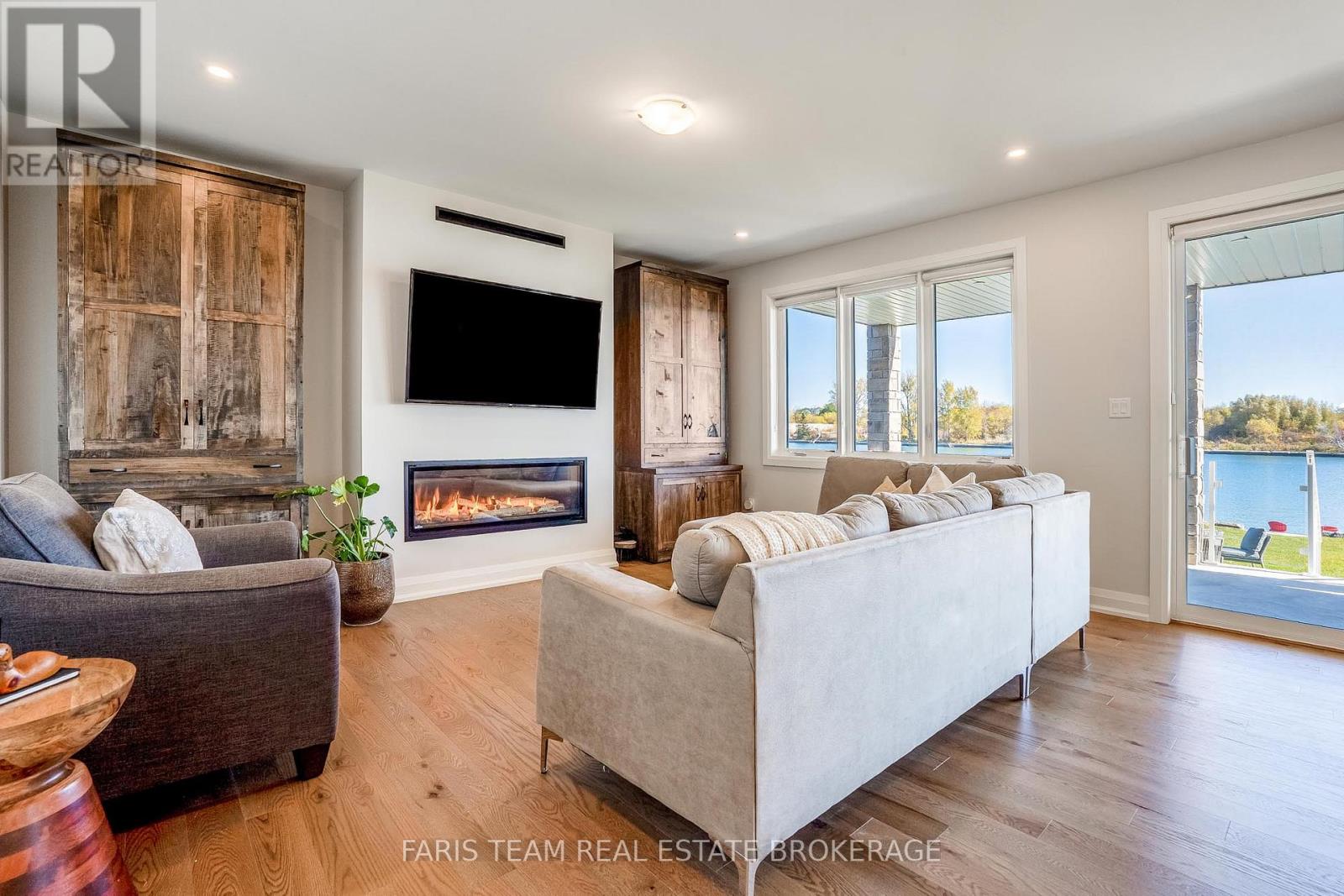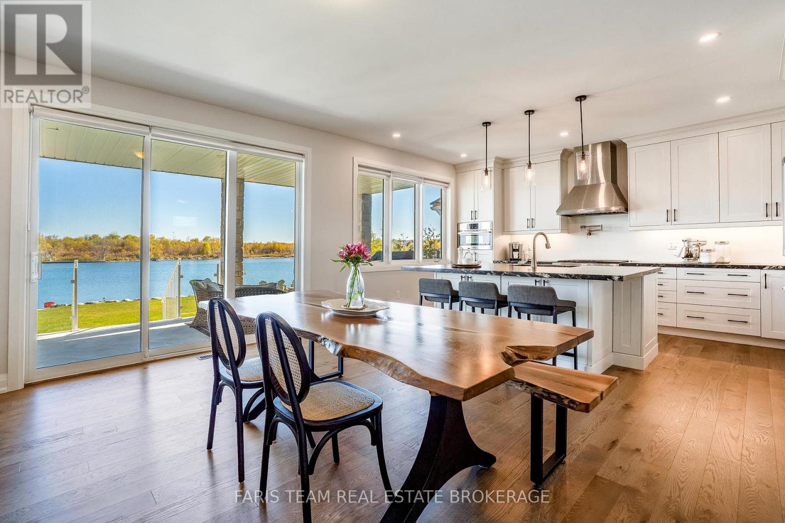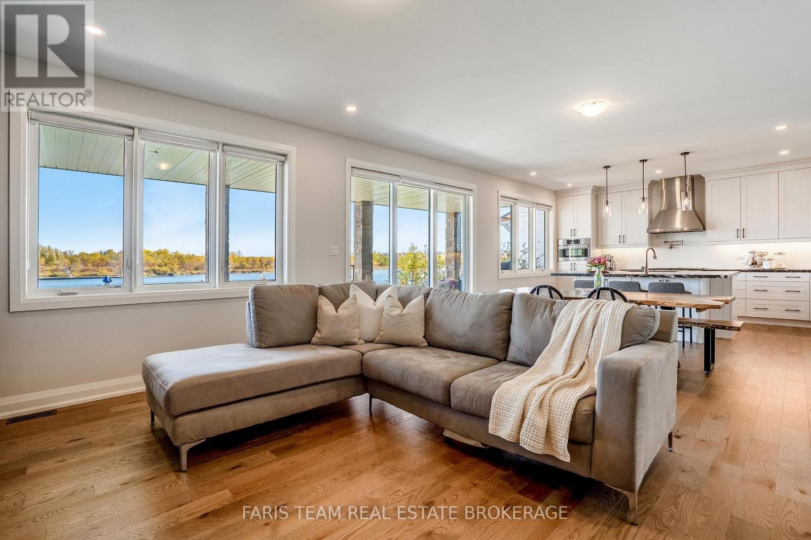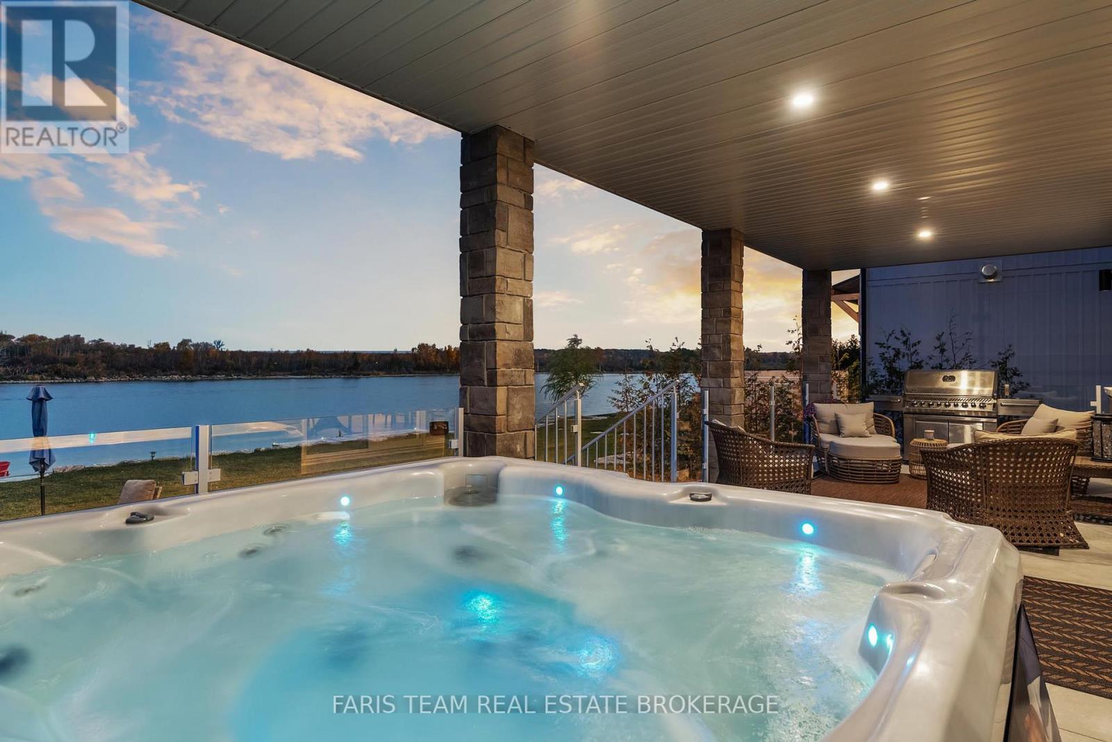 Top 5 Reasons You Will Love This Home: 1) 2-storey home presenting a breathtaking waterfront with deep, clear water and captivating sunrise views over the horizon, offering an unparalleled experience to enjoy every morning 2) Rare gem, complete with a full basement boasting large, sun-filled windows and awaiting your personal finishing touch, along with heated flooring in the ensuite bathroom 3) Step out onto the expansive covered back deck with a hot tub, or enjoy sweeping 180-degree views from the massive second-level balcony, perfect for relaxation 4) Custom-designed kitchen featuring luxurious high-end appliances, exquisite leathered granite countertops, a spacious island, and panoramic views that elevate every meal 5) Resting in a boater's paradise, this stunning year-round home or cottage offers easy access to Georgian Bay while still being within easy reach of nearby amenities. 2,213 sq.ft. with an unfinished basement. (id:64974)