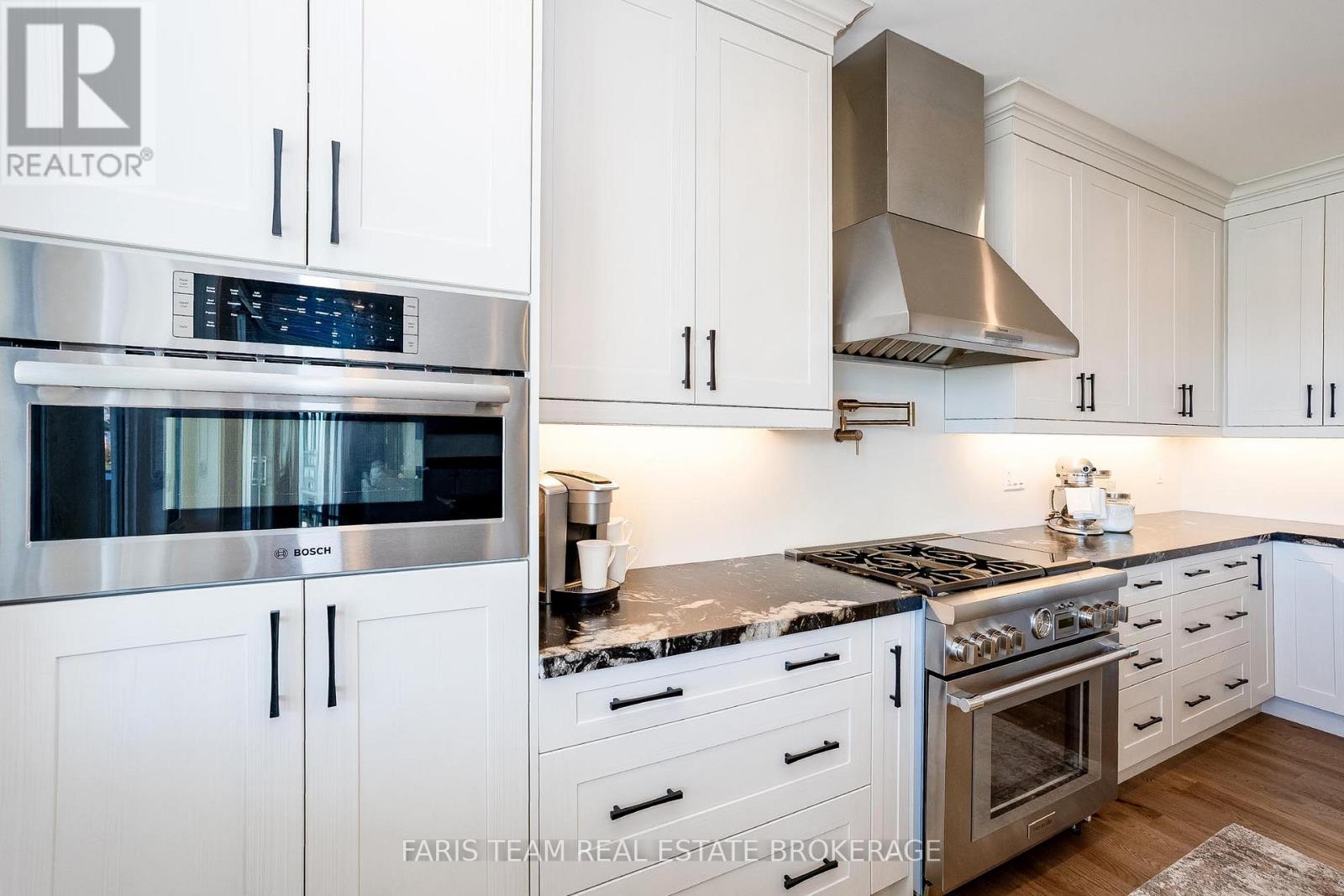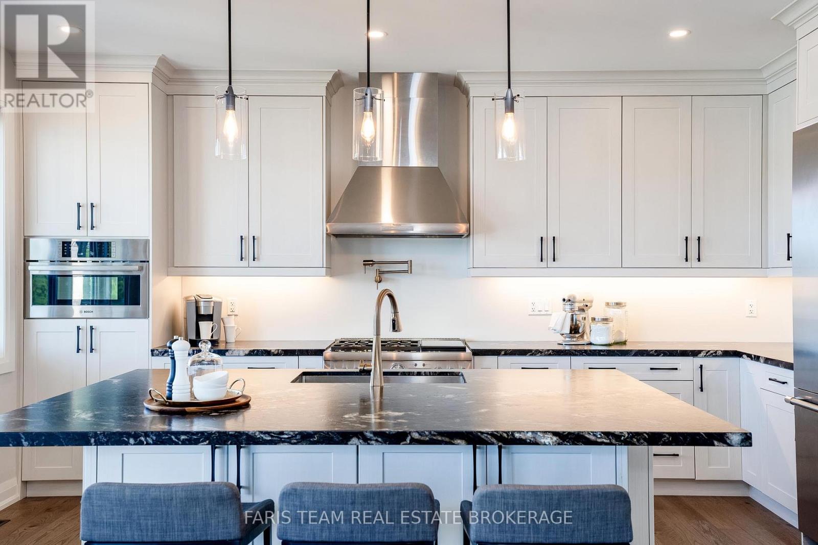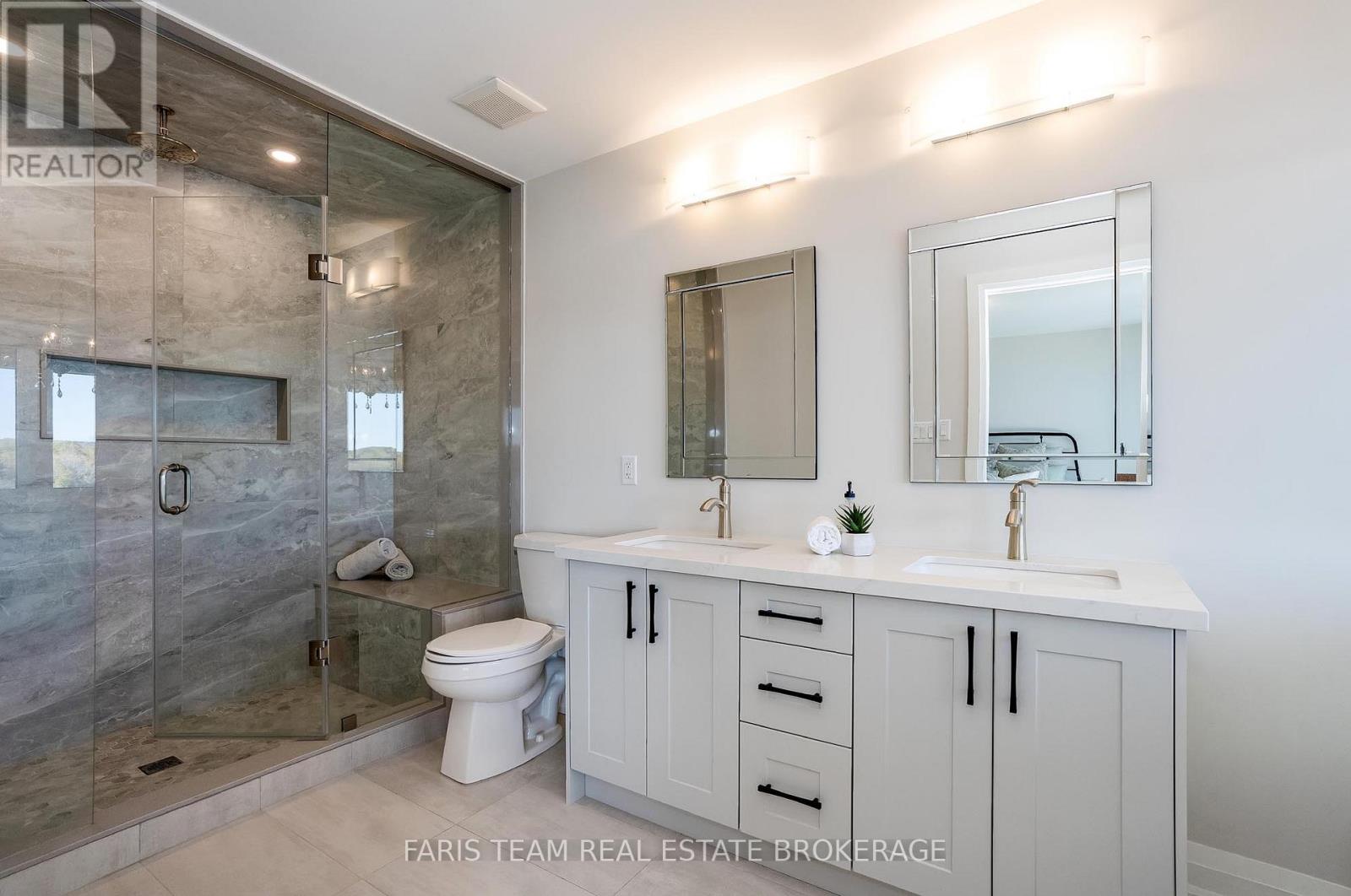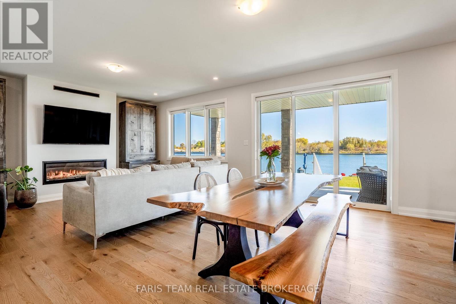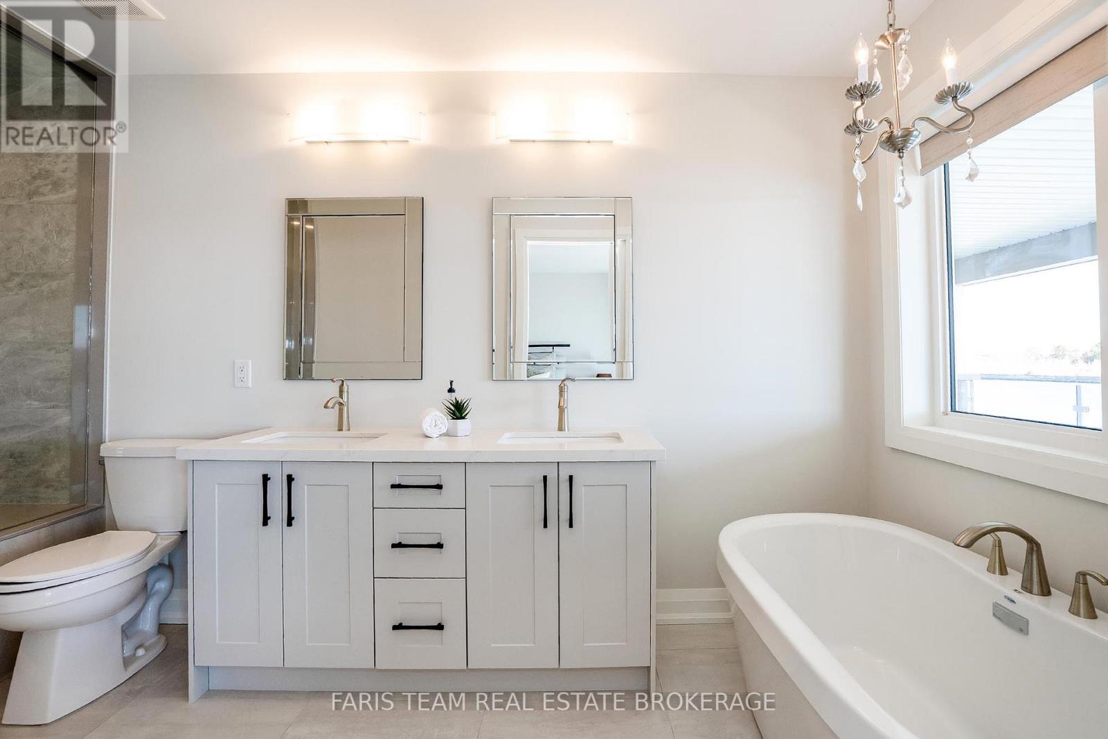 Top 5 Reasons You Will Love This Home: 1) 2-storey home presenting a breathtaking waterfront with deep, clear water and captivating sunrise views over the horizon, offering an unparalleled experience to enjoy every morning 2) Rare gem, complete with a full basement boasting large, sun-filled windows and awaiting your personal finishing touch, along with heated flooring in the ensuite bathroom 3) Step out onto the expansive covered back deck with a hot tub, or enjoy sweeping 180-degree views from the massive second-level balcony, perfect for relaxation 4) Custom-designed kitchen featuring luxurious high-end appliances, exquisite leathered granite countertops, a spacious island, and panoramic views that elevate every meal 5) Resting in a boater's paradise, this stunning year-round home or cottage offers easy access to Georgian Bay while still being within easy reach of nearby amenities. 2,213 sq.ft. with an unfinished basement. (id:64974)