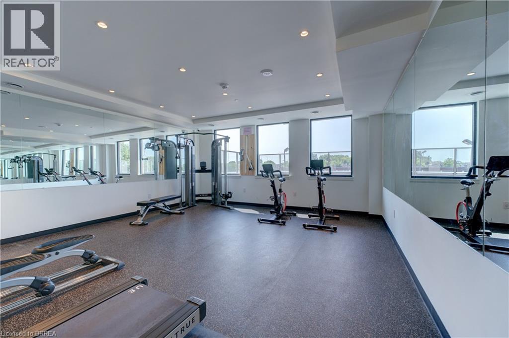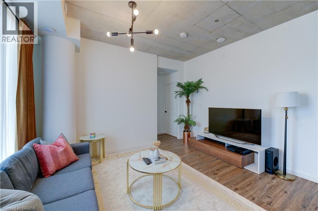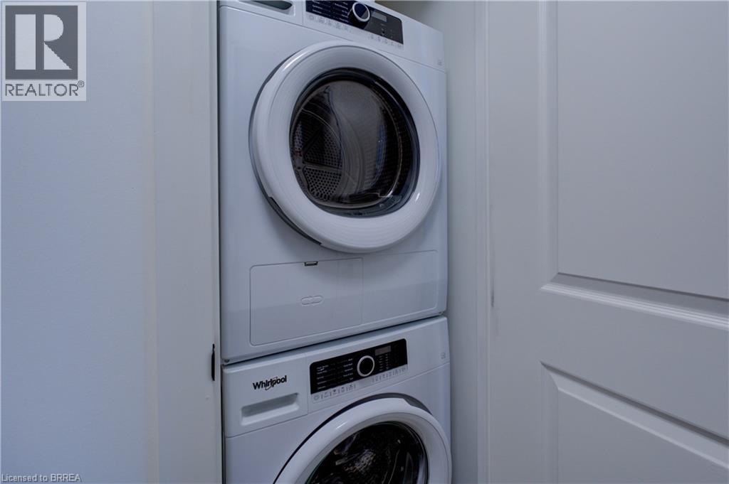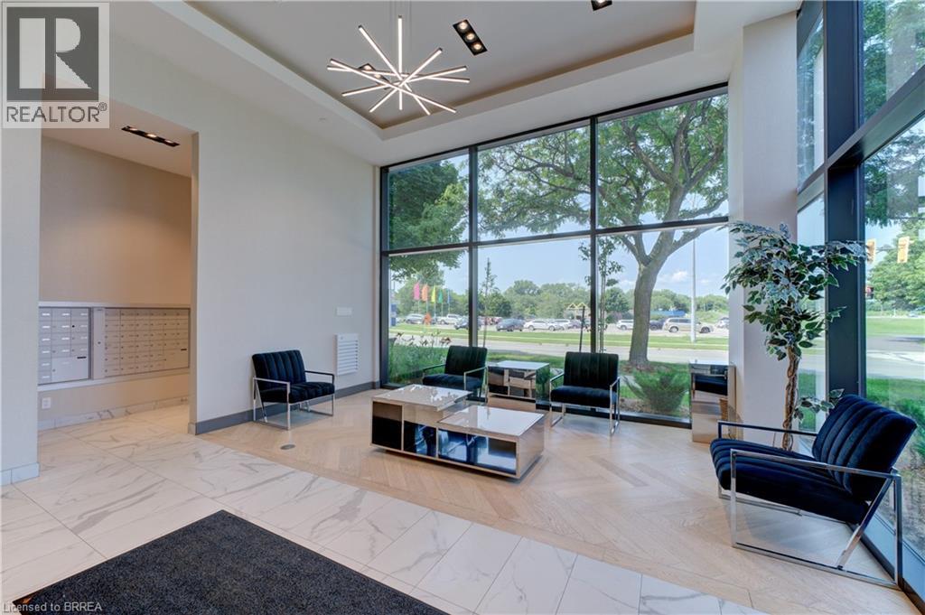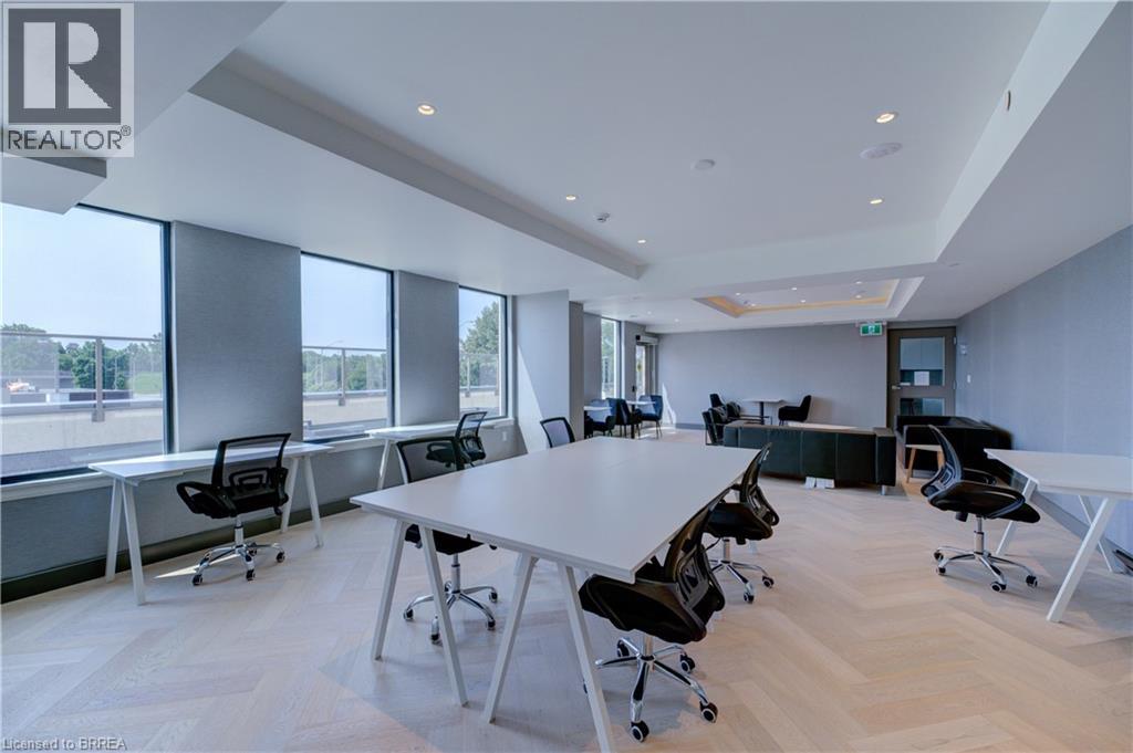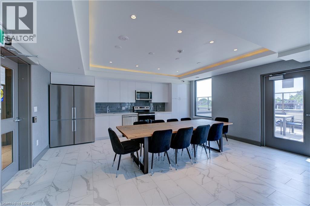 Indulge in sophisticated living with this stunning 2 bedroom, 2 bathroom carpet-free condo. Located in a very modern building, secure double-door entry leads to a welcoming lobby. Enjoy direct access to exceptional amenities. Inside the unit, discover 9-foot ceilings, sleek European-style cabinetry, premium finishes, durable engineered plank flooring, elegant porcelain tiles and luxurious stone countertops. Stainless steel appliances and in-suite laundry add to the convenience. This unit is perfectly situated on the same floor as the fitness centre, expansive & versatile party/meeting room, exclusive executive lounge and a breathtaking rooftop terrace with BBQ facilities. Enjoy your own private balcony, your own highly-valued designated parking spot and a main floor locker in the massive locker room with exterior access for handy bicycle storage & easy retrieval with the Grand River trail system as your play ground! This wonderful condo experience offers both luxury and lifestyle. Easy to show – experience it today! (id:64974)