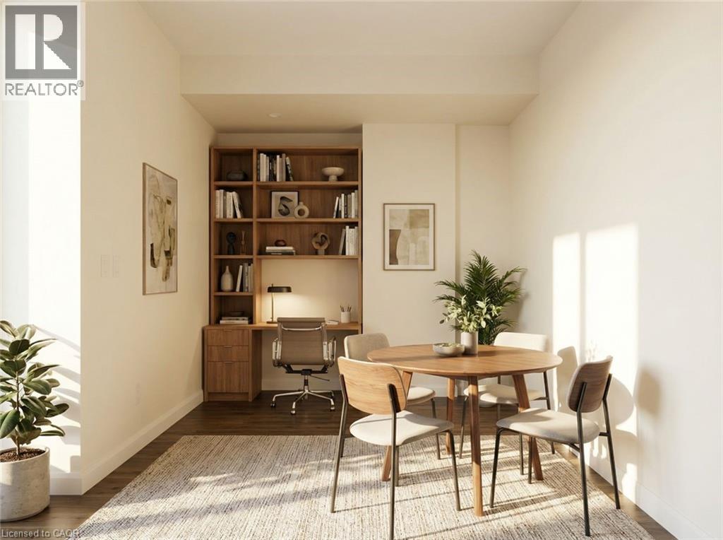 Welcome to Grand Bell Condos at 7 Erie Avenue—a rare opportunity to own a bright 1-bedroom plus den, 1-bathroom suite priced **well below market value**, making it without a doubt the **best deal in Brantford right now**. This home features soaring 9-foot ceilings, a contemporary kitchen with quartz countertops and a large island, open north views, in-suite laundry, and a versatile den perfect for a home office or guest room. Unlike most units, this one comes with **both covered parking and an owned storage locker included**—a huge advantage since only select suites in the building have parking. The boutique building offers premium amenities including a rooftop terrace with BBQ, fitness Centre, social lounge, co-working space, and party room, all just steps from the Grand River trails, Laurier University, downtown shops, and everyday conveniences. With its discounted price and included parking, this suite delivers immediate value—don’t miss the chance to secure the best deal on the market. (id:64974)