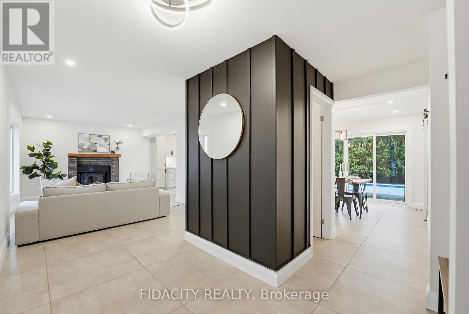 Set within one of Kanata's most established neighbourhoods, this beautifully updated single family home offers an ideal mix of modern updates, generous living space, and a backyard designed for summer. The outdoor space is a true highlight, featuring a heated in ground saltwater pool, mature hedges, and a gazebo with a shingled roof, creating a fantastic setting for entertaining or relaxing with family and friends. Inside, the kitchen has been extensively renovated and offers both style and function with floor to ceiling shaker cabinetry with soft close hardware, a large quartz island with seating, subway tile backsplash, recessed lighting, and stainless steel appliances including a gas cooktop. A walk in pantry with sliding barn door provides excellent additional storage.The main level also features a bright living room with a bay window and a wood burning fireplace, along with a dining area that opens to the backyard through oversized sliding patio doors. A stylish powder room with a floating quartz vanity and wood accent wall and a spacious mudroom with access to the double car garage complete the level. Upstairs you'll find 4 well sized bedrooms, including a primary suite with its own updated 3 piece ensuite featuring heated tile floors, a glass walk in shower with rainfall shower head, matte black fixtures, and hexagonal tile detail. The main bathroom includes a granite double vanity with dual sinks and linen storage.The fully finished basement adds excellent additional living space with a large recreation room with pot lights and wide plank flooring, along with a full bathroom, laundry area, and plenty of storage. Situated on a quiet cul-de-sac in Beaverbrook, the home is surrounded by mature trees and located close to highly rated schools, parks, walking paths, highway access and all essential amenities.(potential to build over the garage to expand living space) (id:64974)