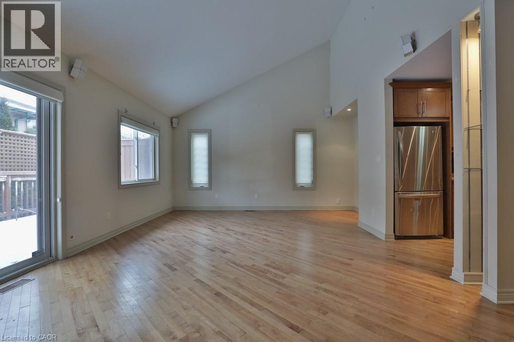 Welcome to this modern 2-bedroom plus loft end-unit townhouse, perfectly positioned in a quiet, sought-after pocket of St. Catharines. Offering approximately 1,594 sq. ft. of finished living space, this home blends open-concept design with thoughtful separation for everyday comfort. The main floor features a spacious eat-in kitchen, living, and dining area with sliding doors leading to a private walkout deck—ideal for relaxing or entertaining. Cathedral ceilings flood the home with natural light and highlight the open loft overlooking the main living space. Upstairs, enjoy a generous primary suite with dual his-and-hers closets, a second bedroom, and a versatile loft perfect for a home office or den. The unfinished basement provides additional flexible space for storage, while the attached garage adds convenience. A fantastic opportunity for professionals, downsizers, or first-time buyers seeking style and location. Close to many amenities in the area including grocery, schools, transit, QEW, and more. (id:64974)