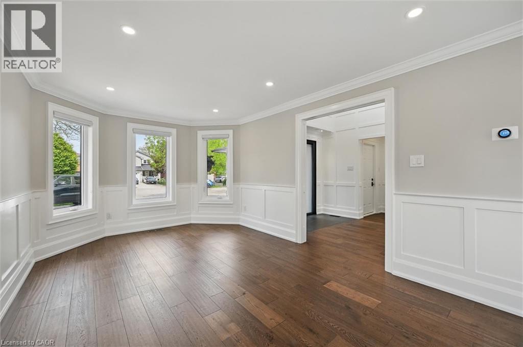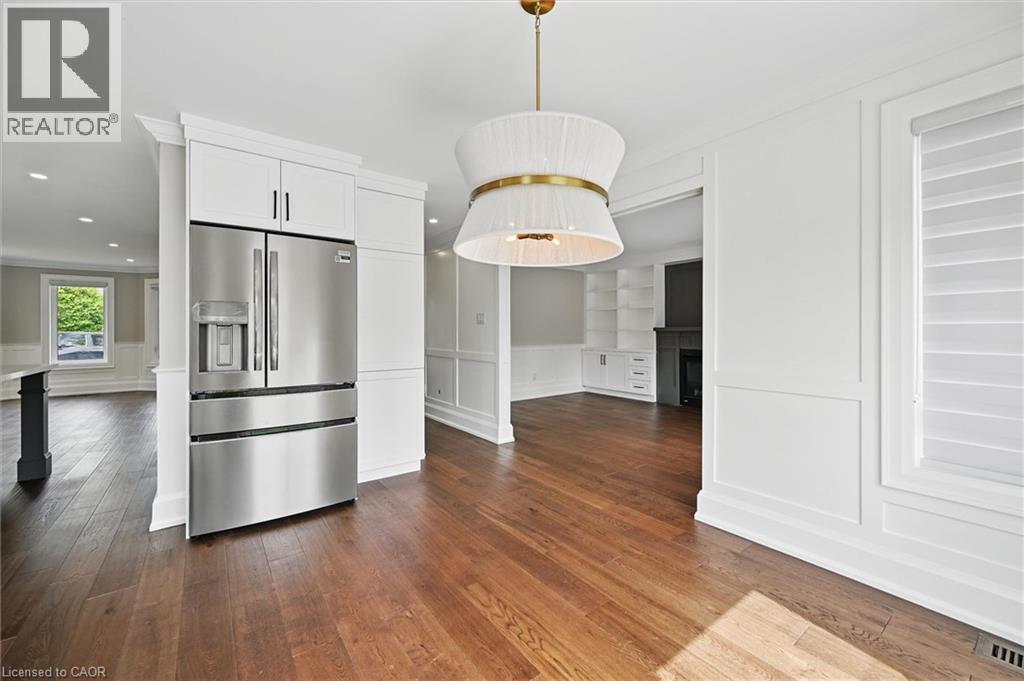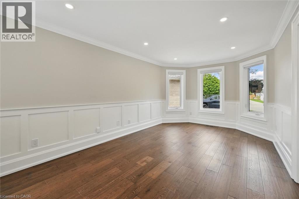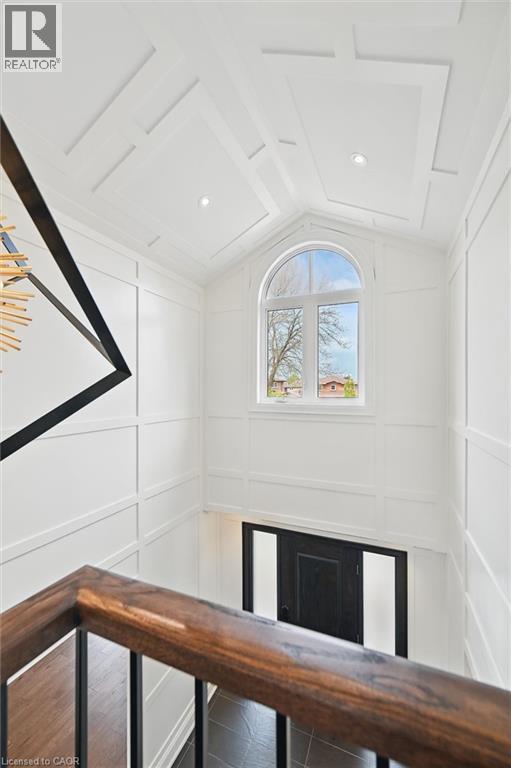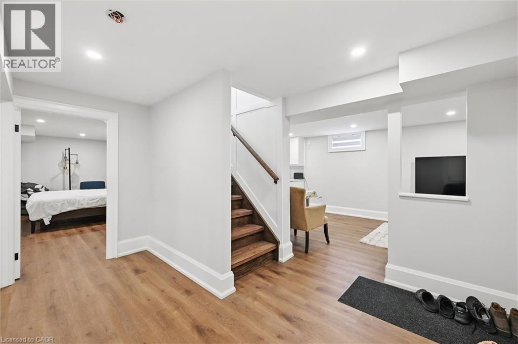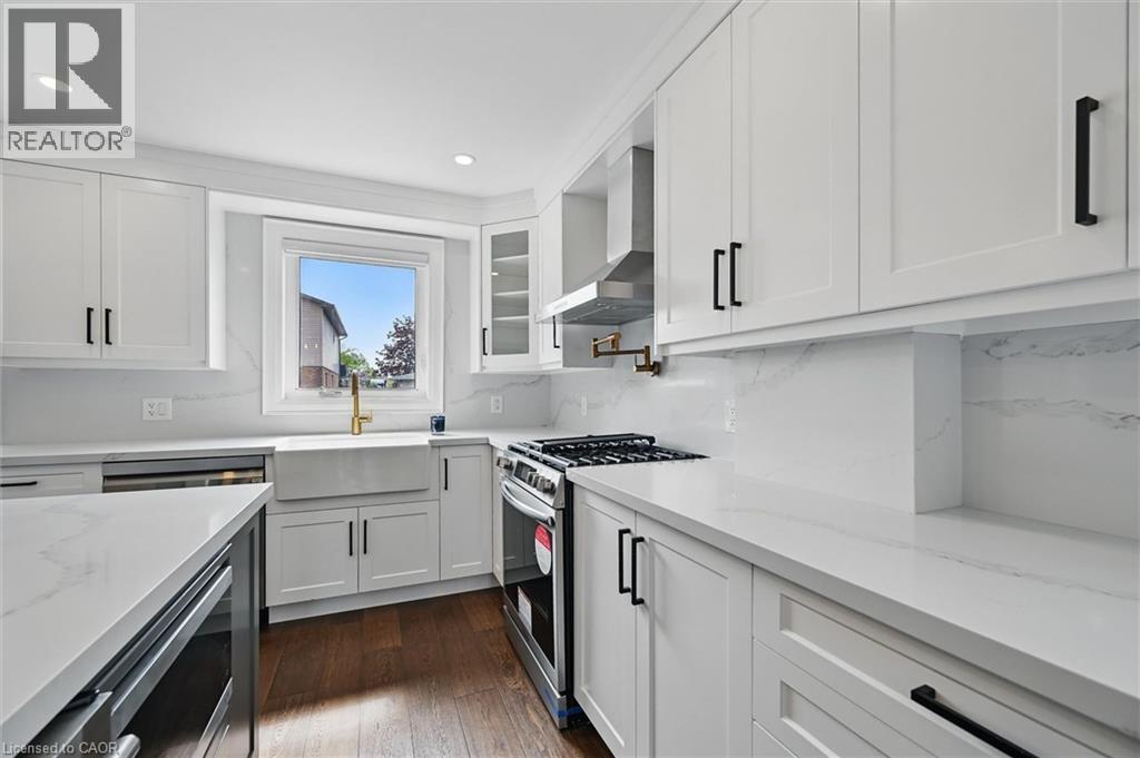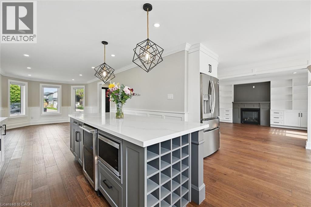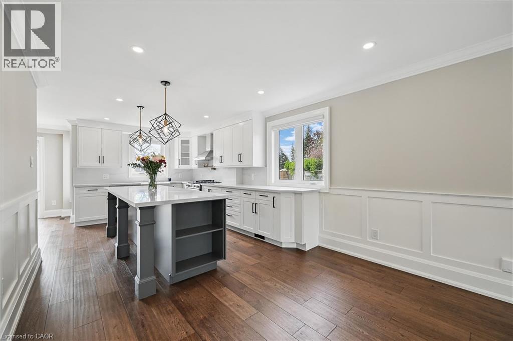 Welcome to 7 Grandview Avenue! Nestled in one of Stoney Creek’s sought-after lakefront beach communities, just steps to Lake Ontario and minutes to shopping, dining, schools, and quick QEW access. Situated on a quiet, family-friendly court, this home was meticulously renovated in 2023 with exceptional quality from top to bottom. A bright, open foyer with soaring ceilings, elegant staircase, and classic wall paneling creates a warm first impression. The main level features a formal living room and a stunning open-concept kitchen with modern soft-close cabinetry, under-cabinet lighting, quartz counters and backsplash, oversized island with built-in wine display, bar fridge and microwave, natural gas range with pot filler, and porcelain apron sink. There is a large dining room with patio doors to rear yard and an inviting family room offers a gas fireplace with custom built-ins, plus a 2 pc bath and large laundry room to complete this level. Upstairs offers three spacious bedrooms, including a primary retreat with walk-in closet and a 4-piece ensuite with double sinks, make-up station and glass shower. A 5-piece main bath features double sinks, deep soaker tub. The lower level includes a fully self-contained in-law suite with separate walk-up entrance, featuring a living room, kitchen with quartz counters and backsplash, stainless steel appliances, bedroom, 3-piece bath, laundry, and ample storage. The fully fenced pie-shaped yard boasts a huge exposed aggregate patio, concrete pad for future shed, and plenty of space to entertain or for kids to play. Extensive upgrades include trim and wainscoting, 5” engineered hardwood flooring, solid interior doors, 7” baseboards, crown molding, pot lights throughout, custom closets, and modern iron railings. Exposed aggregate driveway, walkways, and patios with stamped concrete borders. Double attached garage and double-wide driveway for up to 8 cars. 13 appliances included. Nothing to do but move in! (id:64974)