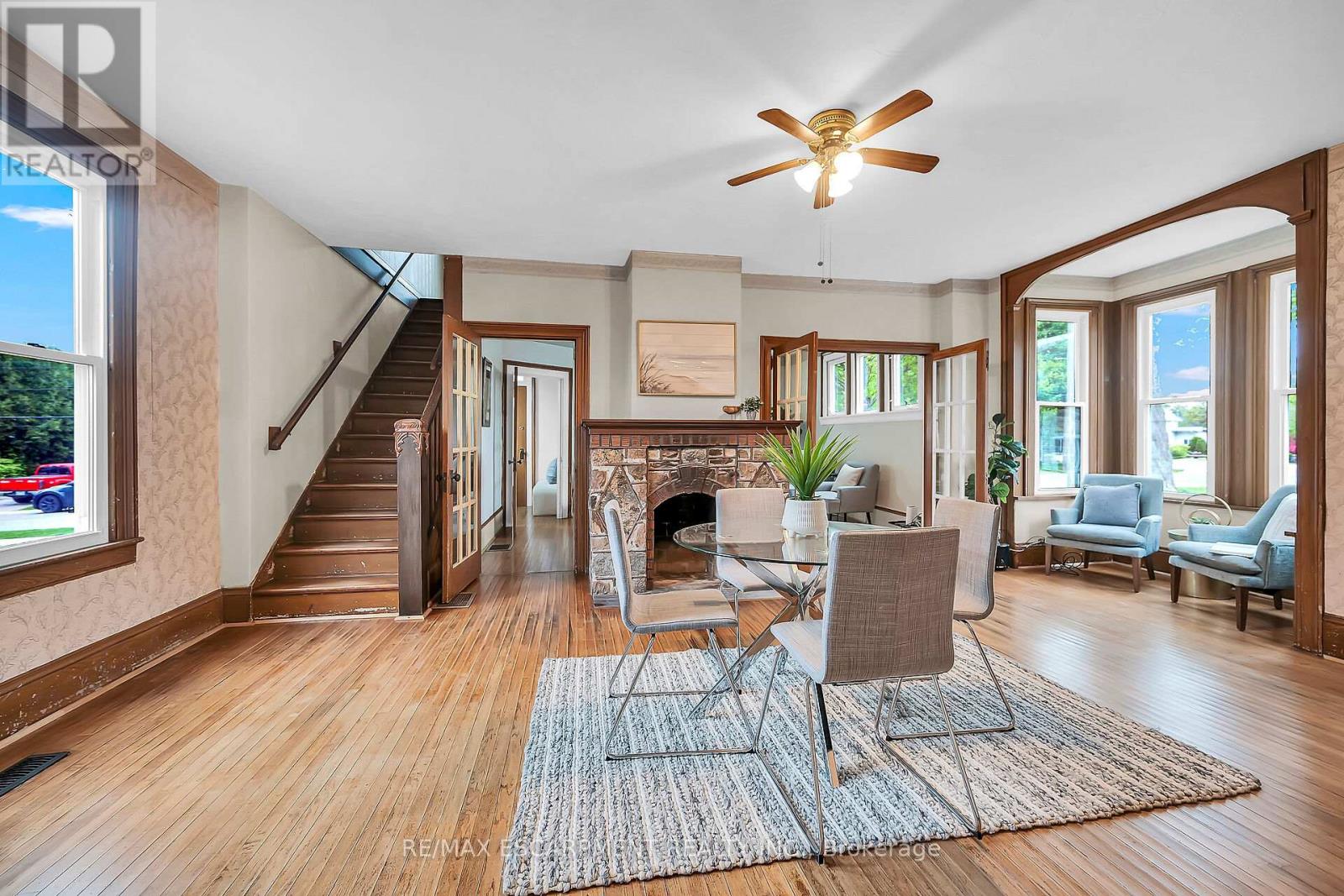 Stately 2 storey "Dover Classic" plus 2017 in-law style addition located in the heart of Port Dover - near schools & churches - walking distance to all of this popular Lake Erie town's sought after amenities - including live theatre, weekly "Music in the Park" attractions, eclectic shops, trendy eateries, mini golf, links style golf course & famous beach front. Positioned proudly on huge, mature 0.23 acre treed lot, the tastefully appointed home boasts quaint covered front porch & paved driveway extending to back yard where 128sf rear deck landing leads to separate doors accessing both primary & addition section. The freshly redecorated original home introduces 2,210sf of well preserved, character filled living area incs 1,077 sf of original main level living space sporting spacious multi-purpose room ftrs garden door deck walk-out - segues to functional kitchen - then pass thru French doors to inviting living room enhanced with authentic wood burning natural stone fireplace - continues to similar themed family room incs reverse side of stone fireplace - completed with welcoming front foyer. Ornate staircase ascends to 625sf - 3 bedroom upper level flanking 4pc bath. Beautifully refinished period hardwood flooring & heavy wood baseboards/trim compliment timeless décor with yesteryear's flair. Versatile 180sf service style partial basement houses newer n/g furnace equipped with AC-both new 2022, n/g hot water heater (rental), sump pump & new 200 amp hydro panel-2025. bright 498sf west-wing addition, built in 2018, provides the perfect multi-generational venue for either parents and/or children and/or an economic rental option. Ftrs open concept design highlighted with living room/kitchenette, sizeable bedroom, 4pc bath & foyer - accented with low maintenance vinyl flooring. Attractive & Affordable - Unbeatable Combination! (id:64974)