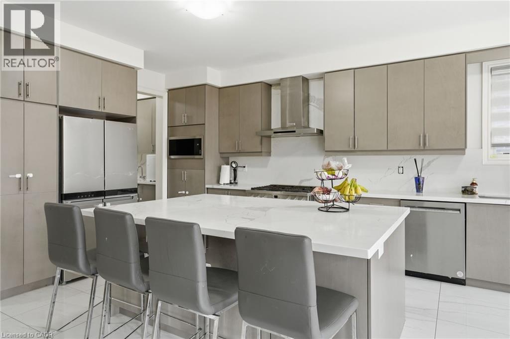 This lovely 2023 Greenpark home is nestled in the charming community of Waterdown. The spacious residence features four + three bedrooms and four + two bathrooms, with nearly 5,000 square feet of finished living space across three levels. It is ideal for growing families or multi-generational living. The main floor offers a breathtaking open-concept layout with soaring 9-foot ceilings that fill the space with natural light. The gourmet kitchen serves as the heart of the home, complete with luxurious quartz countertops, a massive oversized island perfect for casual meals and gatherings, a convenient butler's pantry, abundant storage and exquisite custom cabinetry. Adjacent to the kitchen, the cozy family room flows effortlessly, making it ideal for year-round entertaining. A tucked-away room off the family area works perfectly as a home office or dedicated play space for children. Upstairs, you will find four generous bedrooms, three full bathrooms and a convenient laundry room. Oversized closets provide ample storage, while beautiful hardwood flooring throughout the principal areas adds timeless elegance and easy maintenance. The fully finished lower level stands out with three additional bedrooms and two full bathrooms, offering excellent potential for an in-law suite or guest accommodation. Abundant windows bring in plenty of natural light, complemented by modern finishes and Greenpark's renowned quality craftsmanship. Located in beautiful Waterdown, the home is close to trails, amenities, schools and provides easy access to Burlington and Hamilton. Don't miss this rare chance to own a near-new executive home in one of the area's most desirable neighborhoods! Don’t be TOO LATE*! *REG TM. RSA. (id:64974)