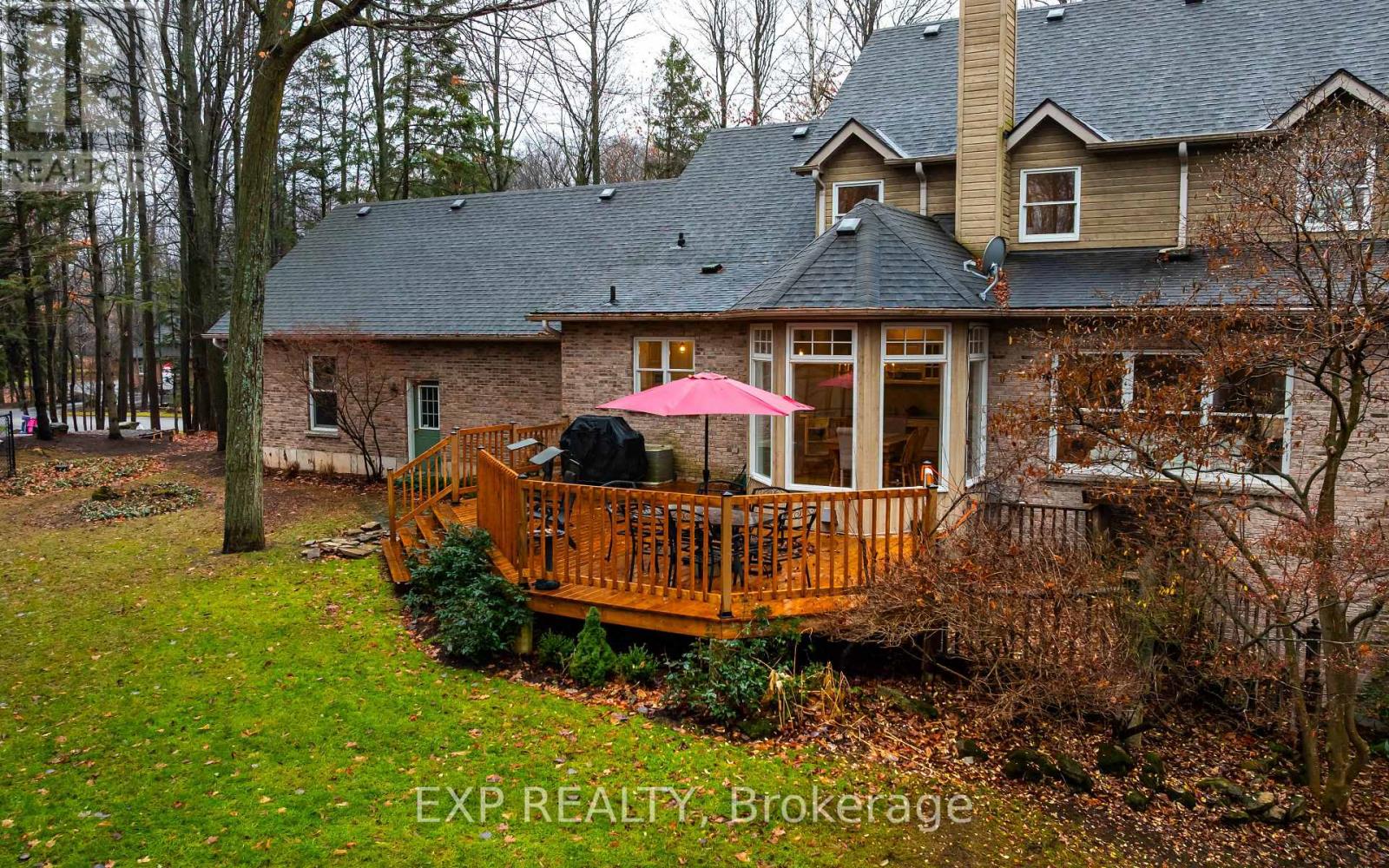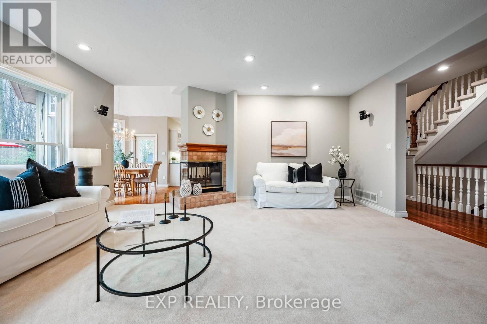 The neighbourhood of your dreams & the home you'll never want to leave. If you ask anyone in the Orangeville area what their dream street is, chances are they'll say Ironwood Court - and homes here rarely come up for sale. Tucked away on an exclusive cul-de-sac and backing onto protected Mono/Island Lake Conservation lands, this stunning 0.55-acre property offers true privacy, incredible nature views, and one of the most coveted locations in town. This elegant 3,389 sq ft home welcomes you with bright, timeless living spaces. The main floor features a sun-filled office, a formal living room with a beautiful bay window, and a cozy family room overlooking the treed backyard, all tied together by a charming 3-sided fireplace. The spacious kitchen includes a centre island with gas cooktop, walk-in pantry, and hardwood floors, flowing seamlessly into the dining room with walkout to a two-tiered deck-perfect for entertaining. The primary suite sits in its own private wing, offering serene views, a walk-in closet, and a spa-inspired ensuite with jacuzzi tub and walk-in shower. Upstairs, two generous bedrooms include a secondary suite with ensuite, plus a bright loft/den ideal for kids, hobbies, or a quiet retreat. The walk-out lower level (over 8.5 ft ceilings!) is a rare blank canvas -potential to add bedrooms, a games room, or a full in-law suite with its separate garage access. Walking distance to Island Lake trails, parks, and Broadway's shops and restaurants, this is a once-in-a-lifetime chance to live on the street everyone dreams of. (id:64974)