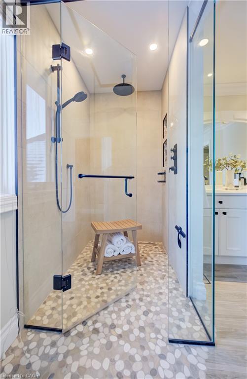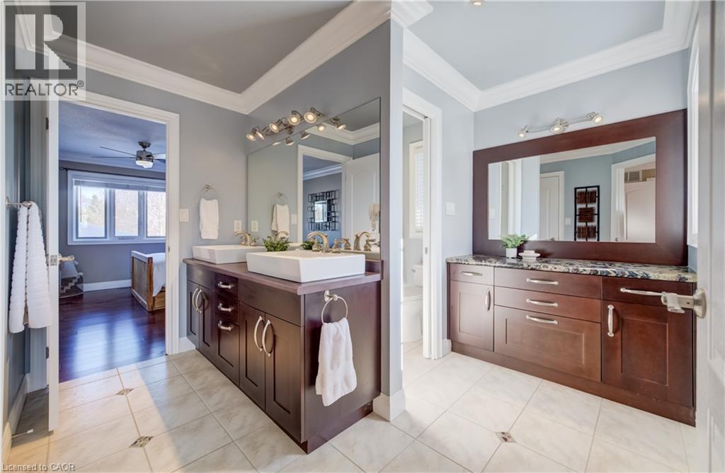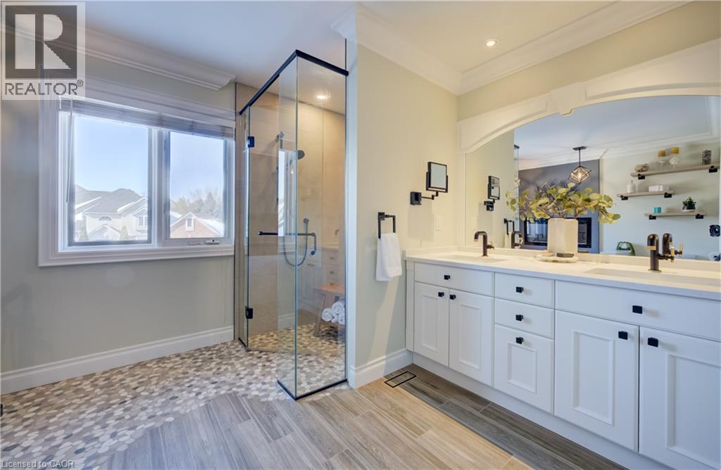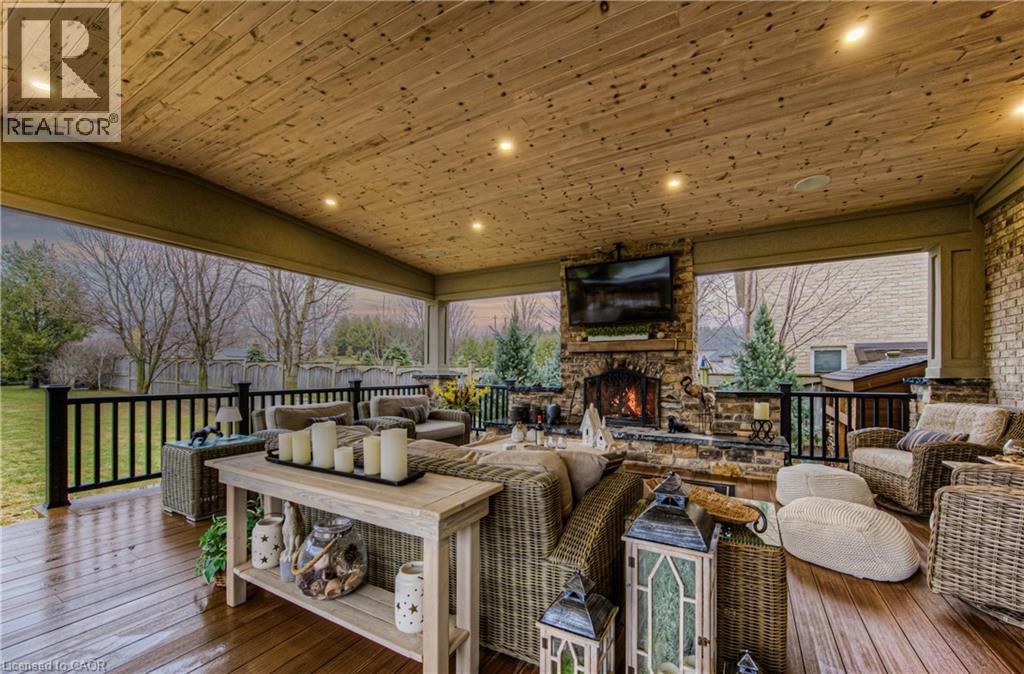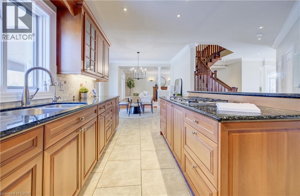 Imagine coming home to a Muskoka inspired resort in your own back yard! Meticulously maintained family home situated on a magnificent estate lot. Upon arriving you will be greeted by a generously sized paver stone drive and a wonderful home accented with classical touches. The expansive foyer showcases the architectural staircase open from the lower level to the upper level. A formal living room with separate side porch could also serve as an office. Family gatherings will be accommodated via the formal dining room with butler pantry, which opens to the chef’s kitchen affording B.I. appliances (Miele 5 burner gas cook top, Miele d/w, KitchenAid double wall oven). The oversized island is perfect for meal prep and conversations. The kitchen, breakfast area, family room w/f.p. overlook the show stopping patios and yard. The 2nd level gives you 4 generous sized bedrooms incl. an opulent primary bdrm featuring private sitting area, and updated (’24) ensuite w double vanity, make up counter, heated tile floor, Toto washlet, soaker tub and a feature wall with fireplace. The main bath allows 2 of the bedrooms immediate access to a double vanity, prep area/storage and a seamless granite shower. Upper laundry with custom wormy maple countertop is convenient and stylish. The lower level affords a spacious games area, ample wet bar (with fridge and d/w). The entertainment area with projector and power screen is waiting for movie night. The Fireplace will add to your comfort. This floor includes a three-piece bathroom with a wet sauna and a gym. Out back you will be transported to a cottage like setting. Greeted by a stately covered composite deck with hand crafted stone wood burning f.p. The tiered deck flows to a large out door dining space w/ covered bbq. area and finishes off at the 8 person Jacuzzi hot tub. The tranquil salt water pool (approx. 22’ x 44’) with stone waterfall is perfect for unwinding. Poolside cabana adds to the warm weather fun. This is a must see. (id:64974)