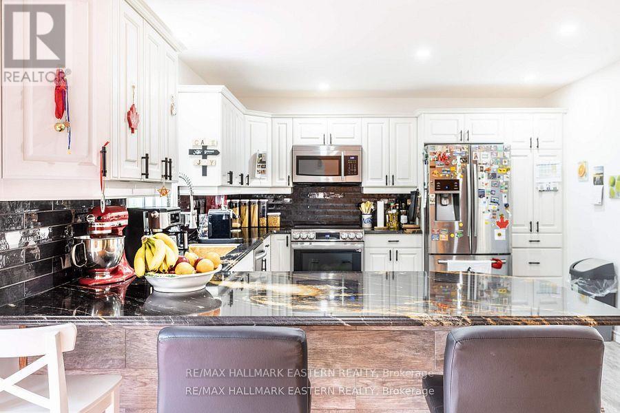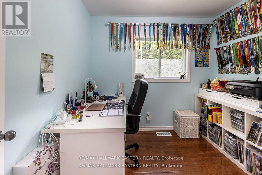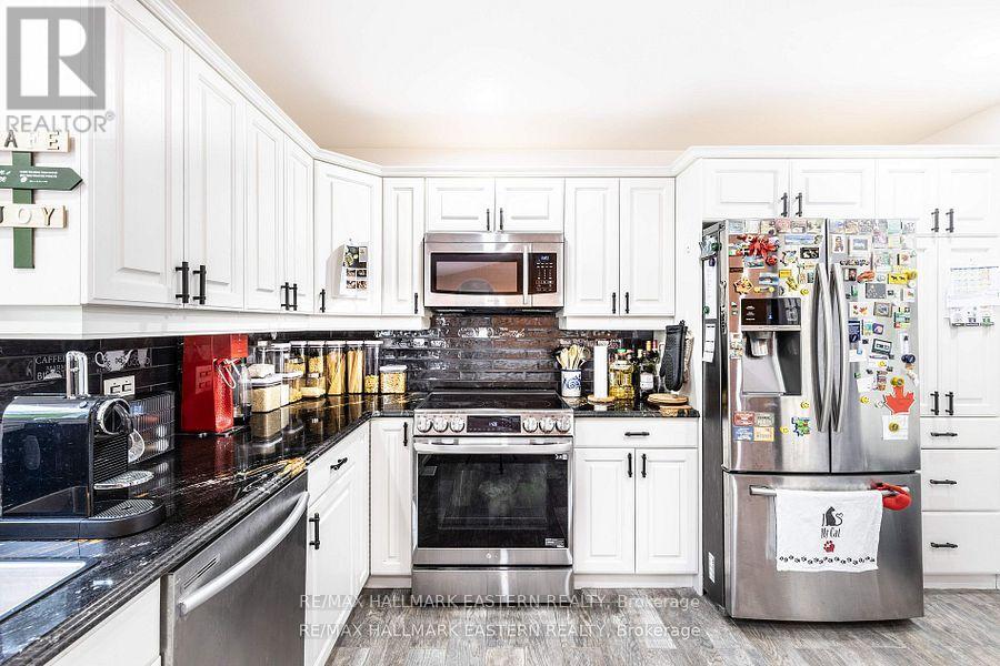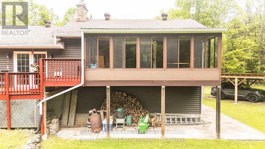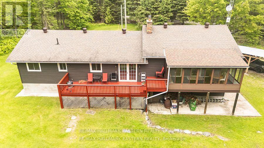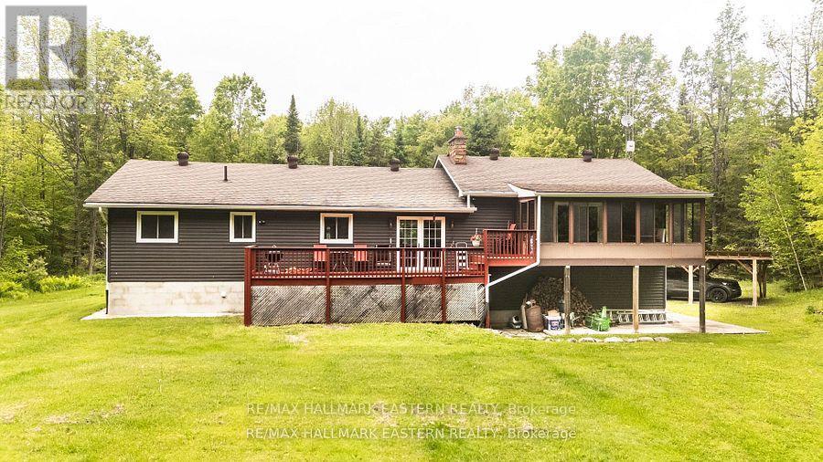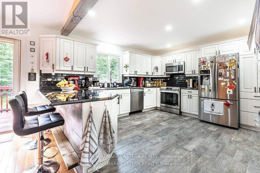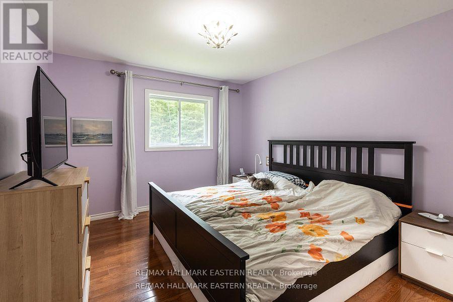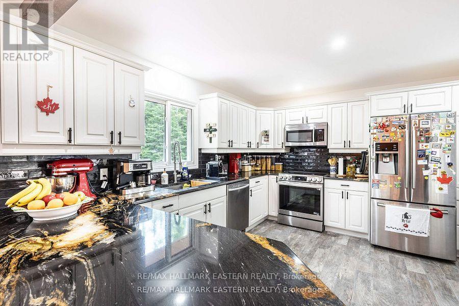 Private 1.85-Acre Retreat with In-Law Potential. Tucked away on a quiet, secluded lane and surrounded by mature trees, trails, and nearby lakes, this beautifully maintained bungalow offers the perfect blend of privacy and comfort. Featuring 4+1 spacious bedrooms and 3bathrooms, this home is ideal for a large or blended family. A separate entrance through the double car garage provides excellent potential for an in-law suite or multi-generational living. The inviting family room showcases a stunning stone fireplace, while the open-concept dining area walks out to a large rear deck, perfect for entertaining or relaxing in nature. The modern kitchen offers granite countertops and hardwood flooring throughout the main level. Major updates include a new carport (2023), paved driveway (2022), owned hot water heater(2023), water purification system (2022), garage door opener (2023), updated sump pumps(2022-2025), generator(2023), and a current WETT certificate (2024). Move-in ready and set in a peaceful, natural setting, this is country living at its finest! (id:64974)