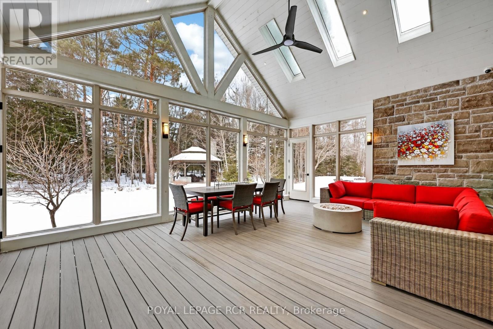 *TWO HOMES UNDER ONE ROOF - BUNGALOFT & BUNGALOW - ON 2 ACRES* This spectacular multi-generational 5929sf country estate offers 2 completely distinct living areas w/ absolute privacy. This elegant residence presents a 2784sf west wing bungaloft with 3+1 bdrms and an east wing 1744sf, bungalow with 2+1 bdrms all under one roof! It's masterfully designed for two families. Both exquisite residences offer private heated garages (3+2), 2 oversized sunrooms, separate front entrances, private yards and finished basements. This manor is nestled onto two luscious private acres within mins to Hwy 404, all amenities and exceptional scenic trails. The west wing features a great room with a soaring 14-ft cathedral ceiling, a stone fireplace and a 11' formal dining room. The gourmet kitchen boasts a breakfast area, quartz countertops and a centre island. The private upper-level primary loft, offers a large sitting room, a massive dressing room and a spa-like 6-pc ensuite w/ a freestanding tub and glass shower. The lower level includes a games room, rec room, bdrm, 4 pc bath with sauna and play room. This wing is completed by an attached, heated 3-car garage with EV charger. The east wing provides unparalleled independence with its own open-concept kitchen featuring quartz countertops that overlooks the spacious family room w/ a fireplace and built-in shelving. Relax in the breathtaking sunroom with retractable screens and skylights. The lower level offers a theatre room w/ built-in bar, bdrm and 2-pc bath. This wing has its own private heated 2-car garage with EV charger, a unique wash bay and waterproof walls. Outside, the stone & stucco exterior offers incredible curb appeal with a massive paved driveway for ample parking. The backyard is a resort with stone patios, composite decking, and a custom wooden pavilion w/ stone fireplace. This exceptional 2 family property blends rural tranquility with luxury and privacy. A rare and unparalleled find! (See Attached Floor plans) (id:64974)