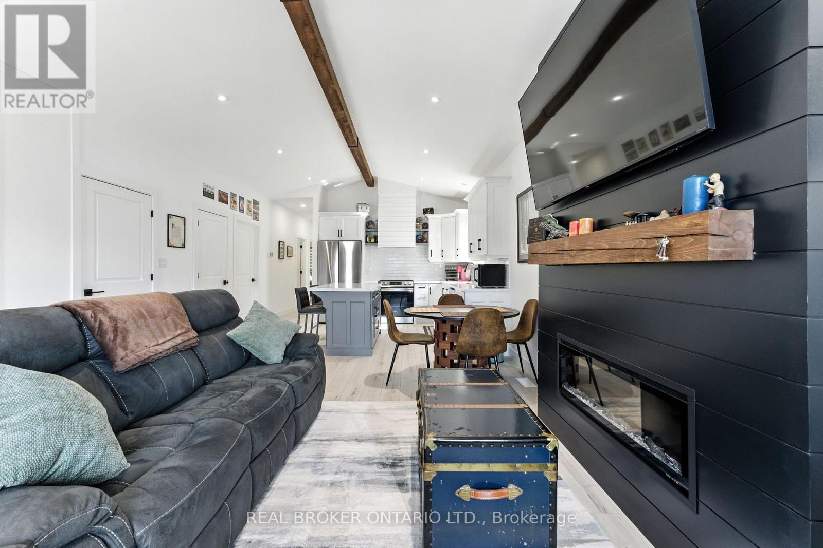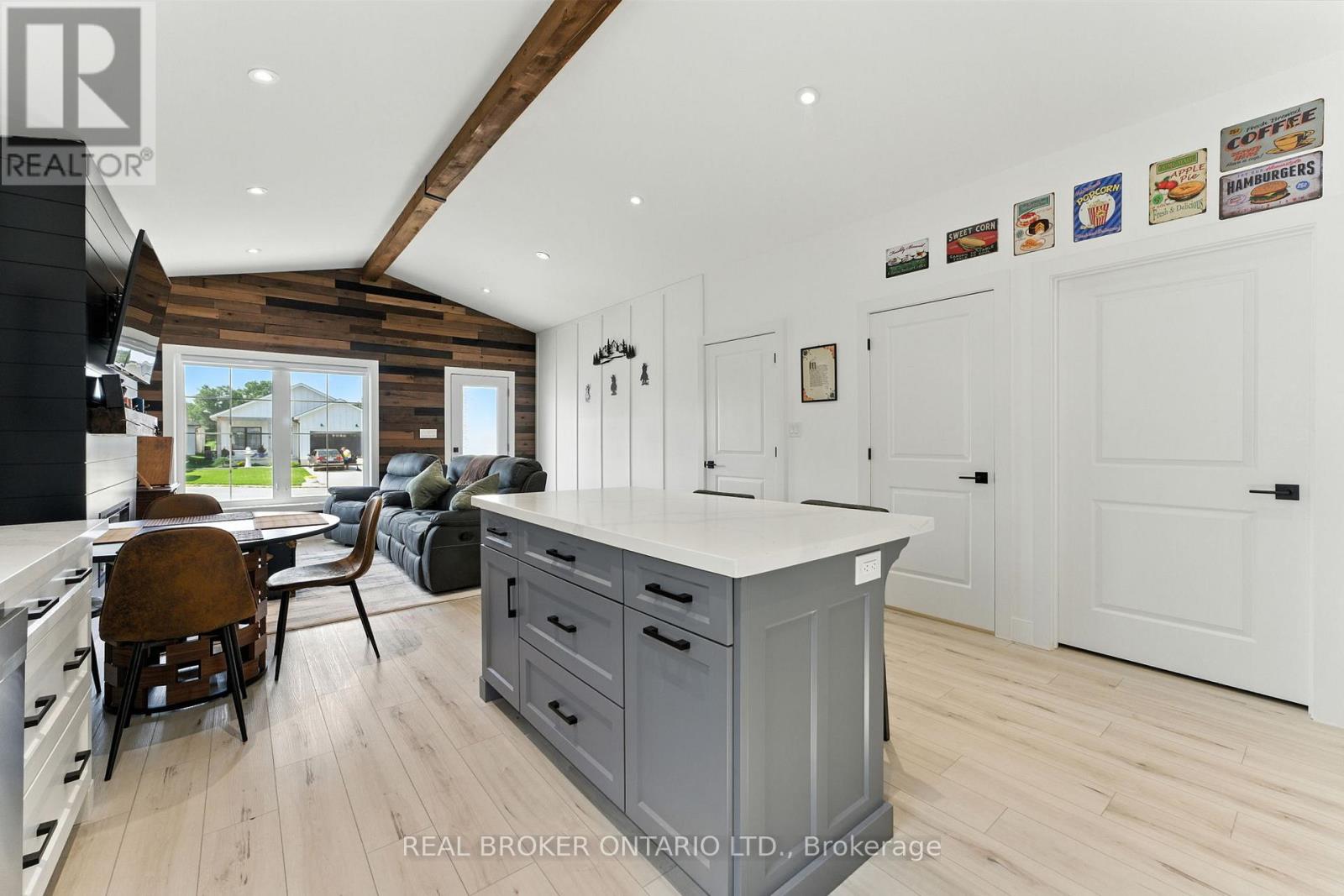 Welcome to 7 MacNeil Court! Discover your dream home in the heart of Port Burwell! This stunning white, hardy board & batten board, showcases a beautiful stone facade with elegant black and blonde oak accents. 3+2 Spacious Bedrooms, including a luxurious primary suite with ensuite and walk-in closet. 2+1 Full Bathrooms, designed for both comfort and style. An **Open Concept Living Space** that flows seamlessly into a chef's kitchen, perfect for entertaining! Take in the beauty of **vaulted ceilings** and a custom iron shiplap fireplace that adds warmth and character. Stainless steel appliances and matte black finishes create a sleek and modern vibe. This home is offering all contents, as a complete package, move in ready, that features, Two TV's with Wall mount brackets, Sofa couch and matching recliner chair, Kitchen table with chairs, two island stools, both bedroom sets, Stereo and speakers, BBQ and Two patio chairs, the Garage workbench, the Snowblower, the lawnmower, the gas weedtrimmer, and leafblower, the garage shelving, the table saw and the mitre saw, all furniture and contents purchased brand new within a year ago. Recently purchased backup hydro system that connects to the Hydro meter for those unexpected power outages, Briggs & Straton Generator in Negoaitable with all offers. Just minutes from Port Burwell's summer hub, a short stroll to breathtaking views, and an easy commute to Tillsonburg. This oasis of a home is not just a house; it's a peaceful retreat waiting for a family to create lasting memories. Perfect for Airbnb setup. Move-in ready and waiting for YOU! (id:64974)