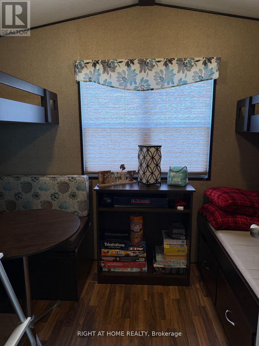 Welcome to 7 Nipagon Cir, a remarkable 2015 Northlander cottage in the desirable Parkbridge's Country Life Gated Resort. This charming property features two cozy bedrooms and a convenient pull-out sofa, accommodating up to 8 guests, making it perfect for family getaways or entertaining friends. The outdoor space is designed for relaxation and enjoyment, featuring a beautiful stone fire pit set in patterned concrete, a utility shed for added storage, and an irrigation system to keep your garden lush. Just steps away from the swimming pool with guest parking and only a 5-minute walk to a private beach, this location offers both convenience and leisure. The community is vibrant and active, with access to five pools (indoor and outdoor), tennis courts, mini-golf, and a recreation hall for events, ensuring there's always something to do. Plus, with local shopping, a new arena, and a library nearby, everything you need is within reach. Opening: Friday, 25 April 2025 - Closing: Sunday, 16 November 2025. The 2025 seasonal site fees are competitively priced at $6,420 + HST, which includes access to all amenities, gated car entry, and exclusive beach access. This property is not just a home; it's a lifestyle choice. Schedule a viewing today and discover the charm and tranquility of this beautiful cottage! (id:64974)