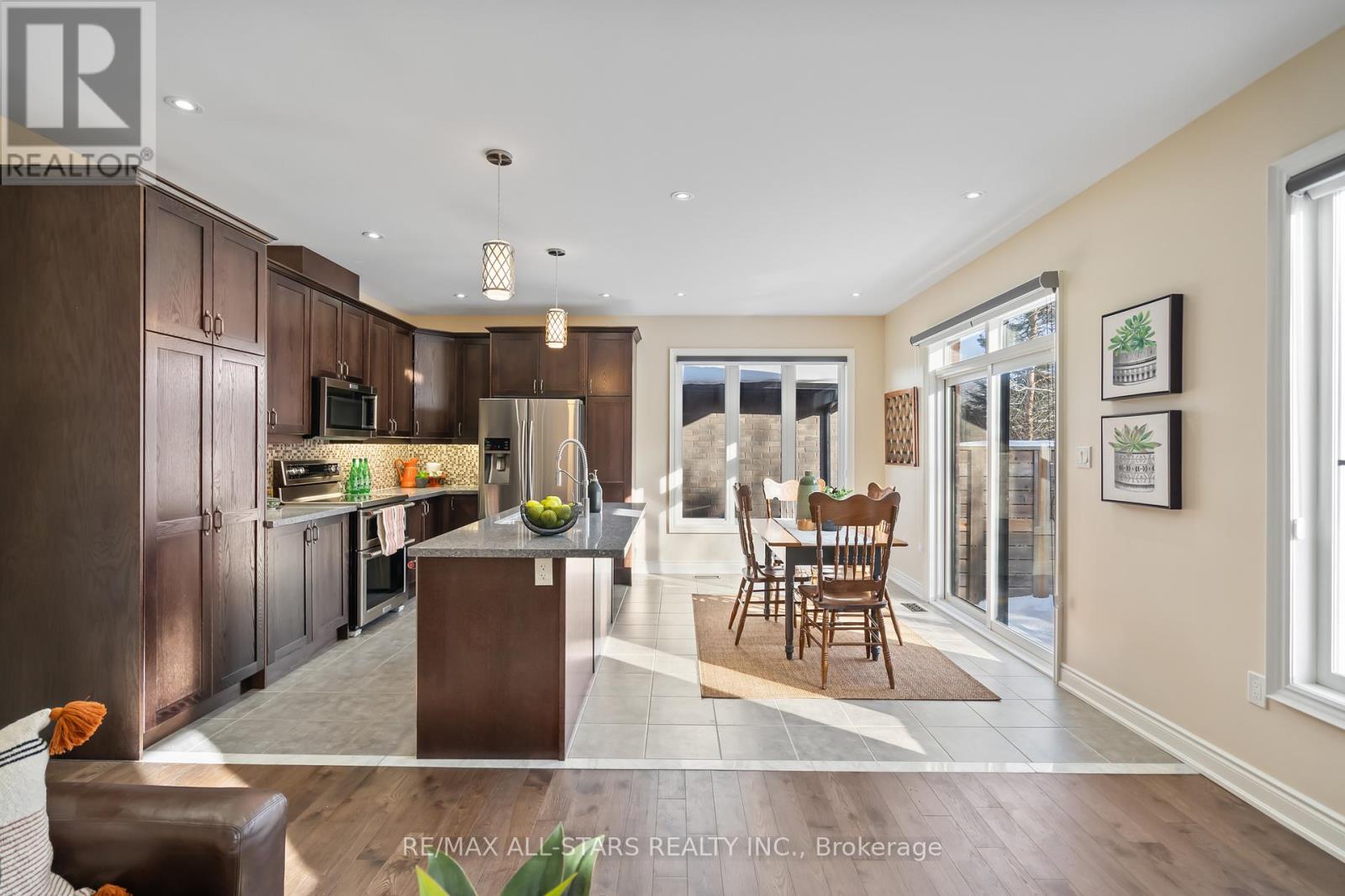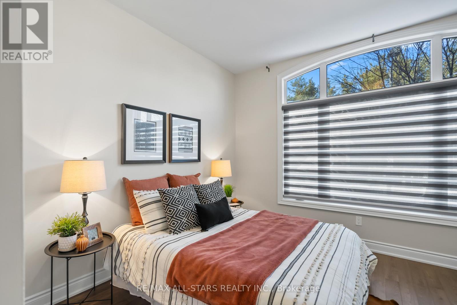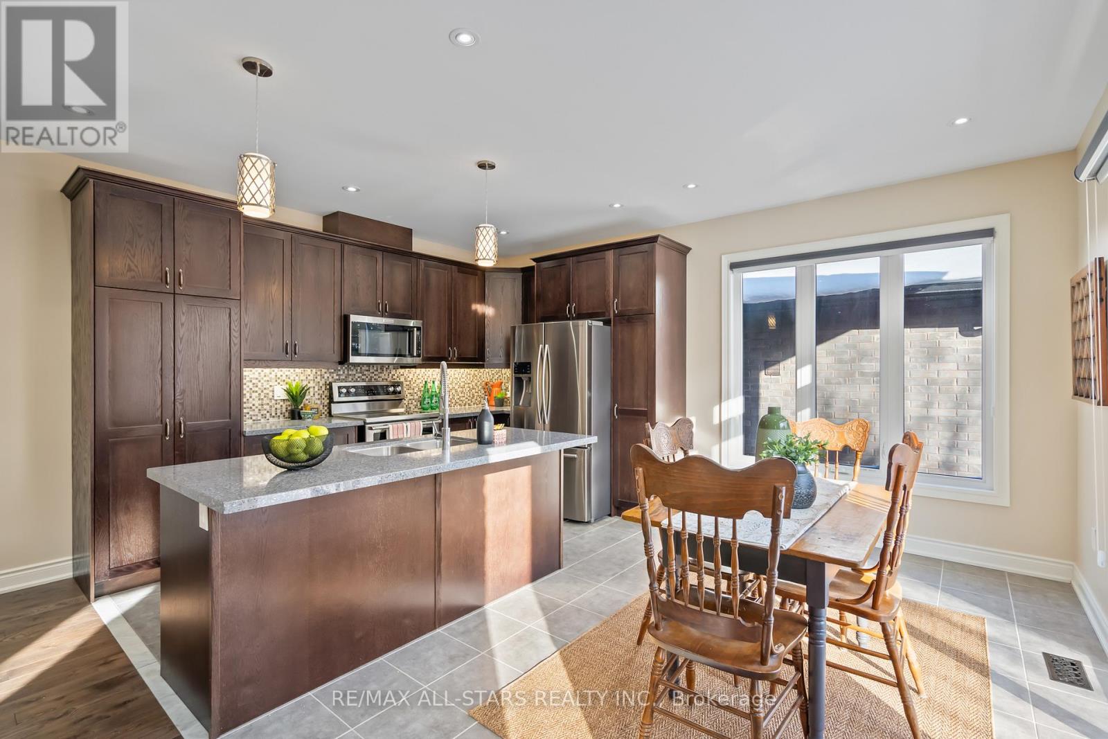 Curb appeal is the first thing you notice with this beautiful 4 bedroom bungaloft on prestigious Os James Hunt Court. With rich red brick and a neutral stone facade, interlock walkway and natural stone steps you are welcomed with immediate warmth. Entering the home you'll appreciate the open concept layout across the back of the house including the living room with gas fireplace featuring cultured stone veneer and framed within 2 large windows, the spacious kitchen with stainless steel appliances and quartz countertops and the dining area which walks out to the deck through the patio slider. The principal suite includes a 5 pc ensuite with built in soaker tub and glass shower enclosure and a spacious walk-in closet with wardrobe. The 2nd Bedroom overlooks the front with a gorgeous arched window and has semi-ensuite access to the 4pc main bathroom. Laundry is conveniently located on the main floor while two additional closets provide ample storage for linens and jackets near the foyer. The upper level features two additional large bedrooms with closet organizers and a third full bathroom. The lower level is unfinished, you can visualize the potential with the wide open space and above-grade windows, and includes a rough-in for an additional bathroom. The landscaped backyard features a raised composite deck (permitted 2017 per MPAC) and interlock patio seating area which continues to wrap around to the gate and walkway to the front of the house. **EXTRAS** POTL $286.94.57 includes street snow removal and garbage/recycle/compost waste removal - full inclusions to be confirmed with the Status Certificate. (id:64974)