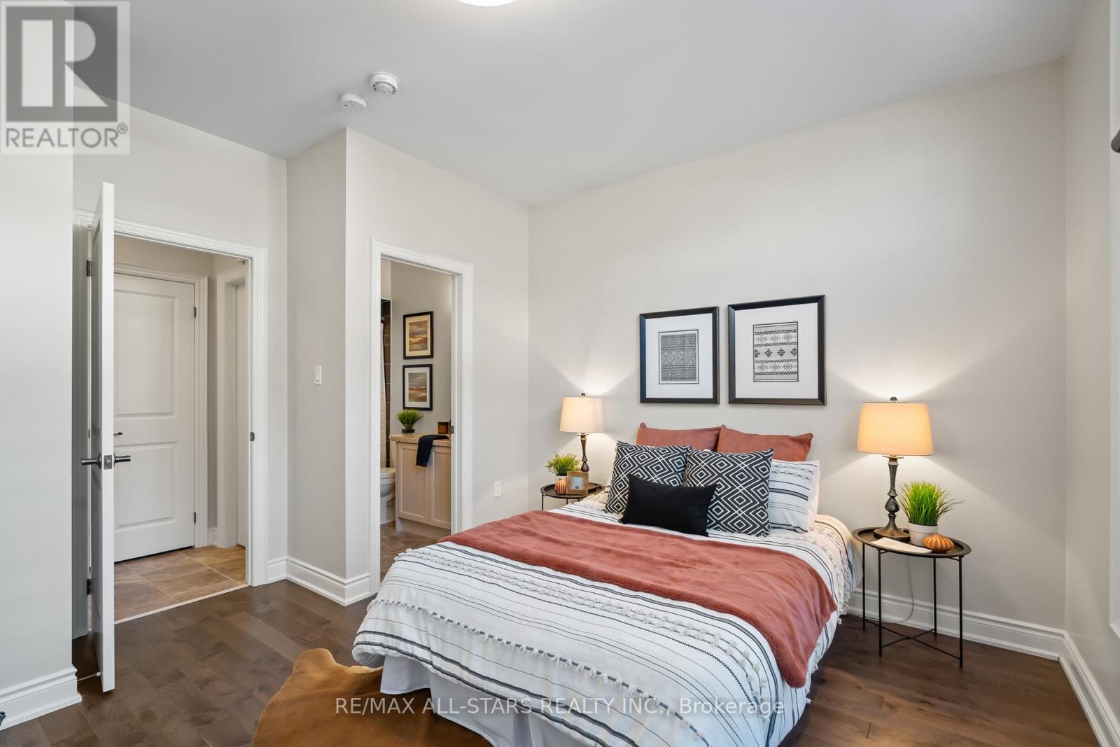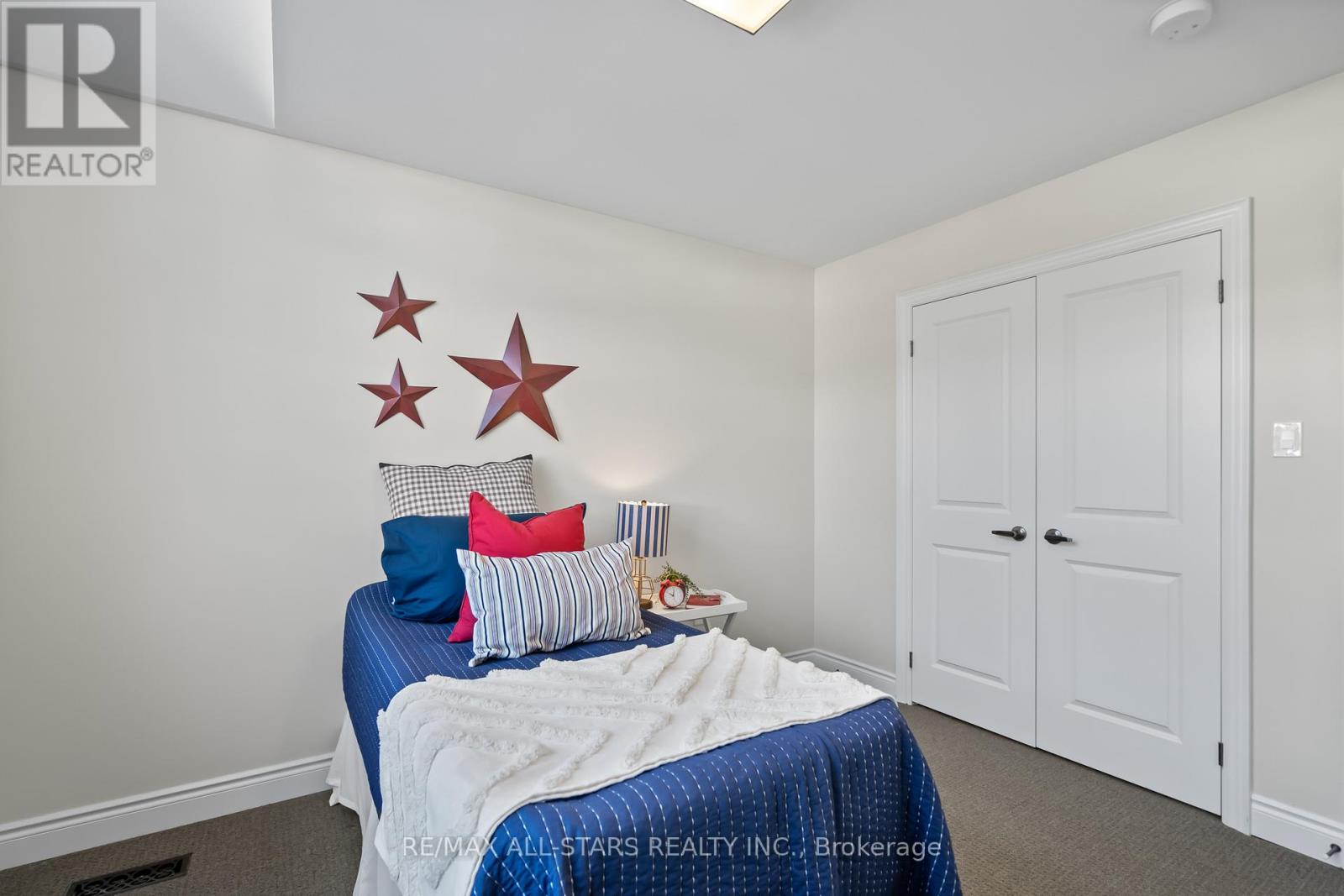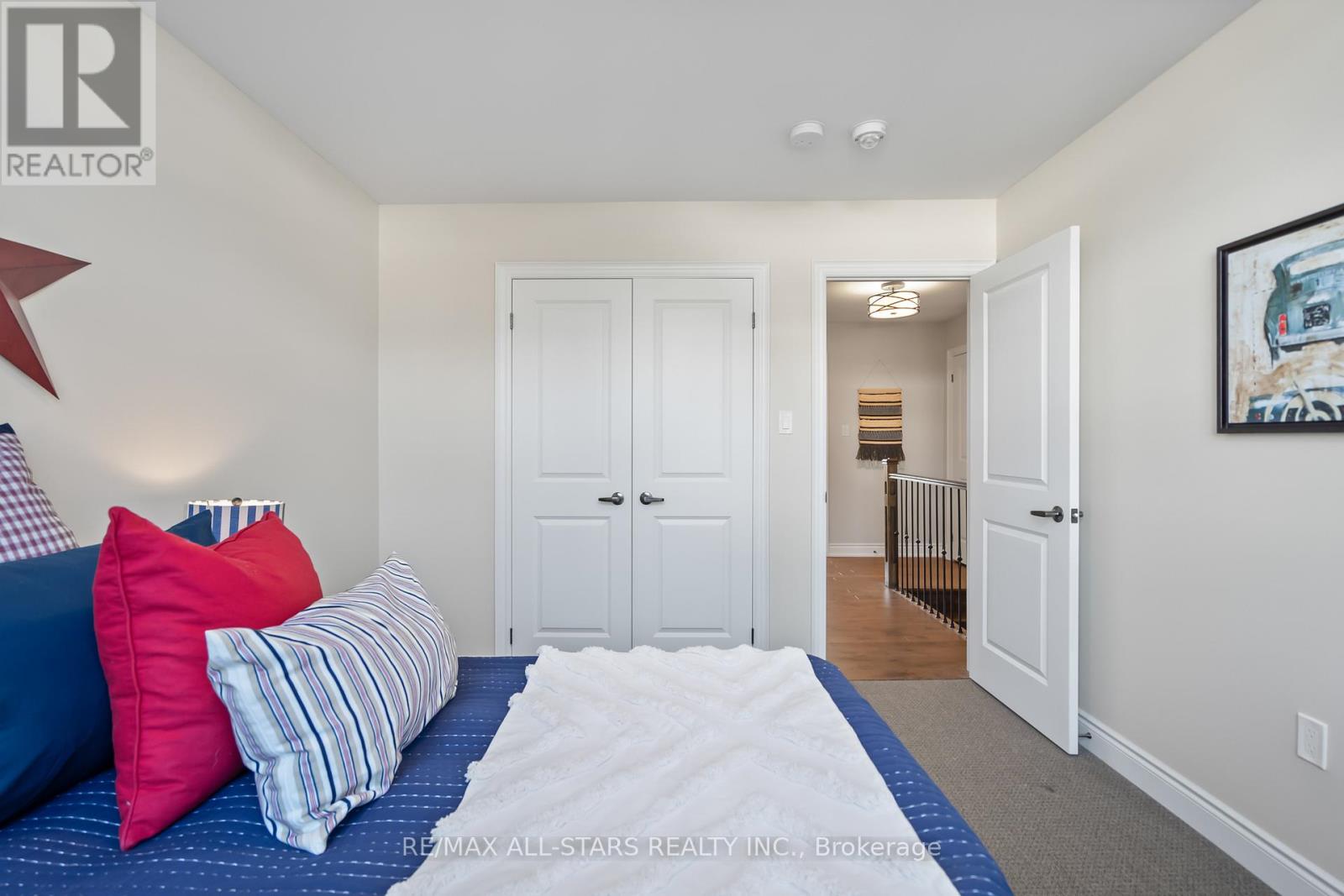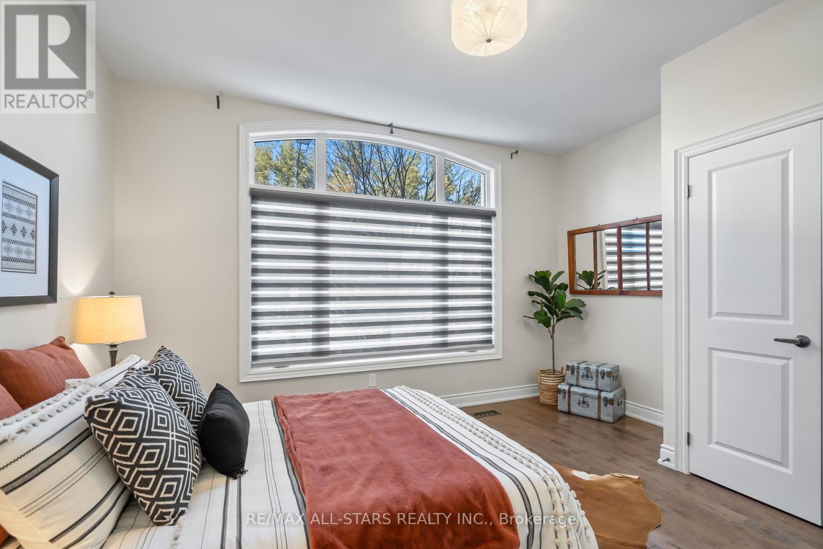 Curb appeal is the first thing you notice with this beautiful 4 bedroom bungaloft on prestigious Os James Hunt Court. With rich red brick and a neutral stone facade, interlock walkway and natural stone steps you are welcomed with immediate warmth. Entering the home you'll appreciate the open concept layout across the back of the house including the living room with gas fireplace featuring cultured stone veneer and framed within 2 large windows, the spacious kitchen with stainless steel appliances and quartz countertops and the dining area which walks out to the deck through the patio slider. The principal suite includes a 5 pc ensuite with built in soaker tub and glass shower enclosure and a spacious walk-in closet with wardrobe. The 2nd Bedroom overlooks the front with a gorgeous arched window and has semi-ensuite access to the 4pc main bathroom. Laundry is conveniently located on the main floor while two additional closets provide ample storage for linens and jackets near the foyer. The upper level features two additional large bedrooms with closet organizers and a third full bathroom. The lower level is unfinished, you can visualize the potential with the wide open space and above-grade windows, and includes a rough-in for an additional bathroom. The landscaped backyard features a raised composite deck (permitted 2017 per MPAC) and interlock patio seating area which continues to wrap around to the gate and walkway to the front of the house. **EXTRAS** POTL $286.94.57 includes street snow removal and garbage/recycle/compost waste removal - full inclusions to be confirmed with the Status Certificate. (id:64974)