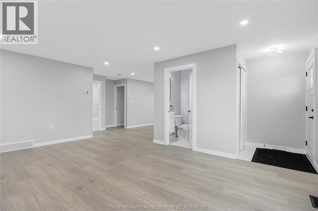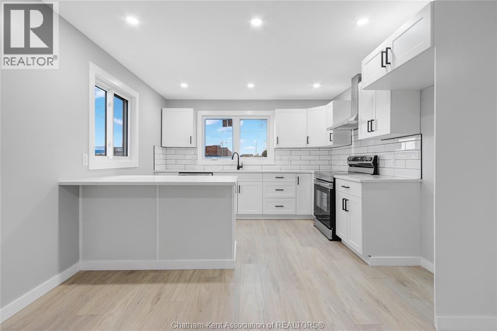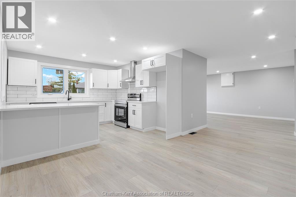 Welcome to 7 Oxley Drive in the desirable north end of Chatham! Perfectly situated close to shopping, restaurants, gyms, schools, and everyday amenities, this fully renovated 2-bedroom bungalow offers stylish, move-in-ready living with high-end custom finishes throughout. From the moment you arrive, you’ll appreciate the extensive exterior updates including a new steel roof, new vinyl siding, new windows, and new exterior doors. Inside, the home has been thoughtfully redesigned with modern elegance and functionality in mind. The stunning custom kitchen features quartz countertops, a beautiful breakfast island, and quality cabinetry, perfect for morning coffee or entertaining guests. The spacious family room offers plenty of room to host and relax. You’ll find two generously sized bedrooms, a gorgeous 4-piece bathroom finished with custom porcelain tile, plus a convenient 2-piece bath. A wide hallway leads to the dedicated laundry room and a double sliding patio door that opens onto a massive brand-new deck, ideal for summer gatherings. The driveway is prepped and ready for your finishing touches. This turnkey bungalow is an incredible opportunity in a sought-after location. Don't delay, call today! (id:64974)
