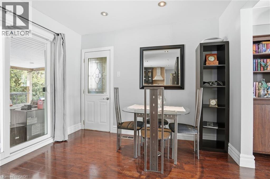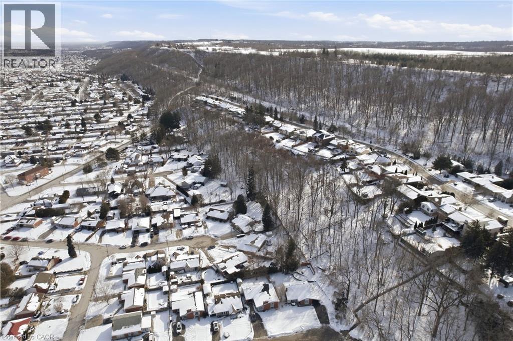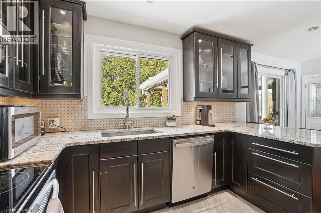 Escarpment Views! Rare Court Location in Old Stoney Creek. Complete In-Law Suite with Separate Entrance! Homes seldom come available on this private cul-de-sac in the sought-after Battlefield community. This lovingly maintained solid brick home offers 4 bedrooms, 2 baths, and exceptional versatility for families or multi-generational living. The main level features an eat-in kitchen, separate dining room, and a bright living room with French doors and a cozy gas fireplace. Updated laminate and hardwood flooring, newer windows and doors reflect pride of ownership throughout. The fully finished lower level is a complete in-law suite featuring a brand-new full kitchen, offering excellent flexibility for extended family living. Set on a beautifully treed pie-shaped lot, the backyard is designed for entertaining, featuring a heated in-ground pool, an updated stone patio, two gazebos, and full fencing for kids and pets. A unique loft-style bedroom and enclosed porch overlooking the yard add charm and flexibility. Quiet court living beneath the Escarpment a rare opportunity in one of Old Stoney Creek's most desirable pockets. (id:64974)