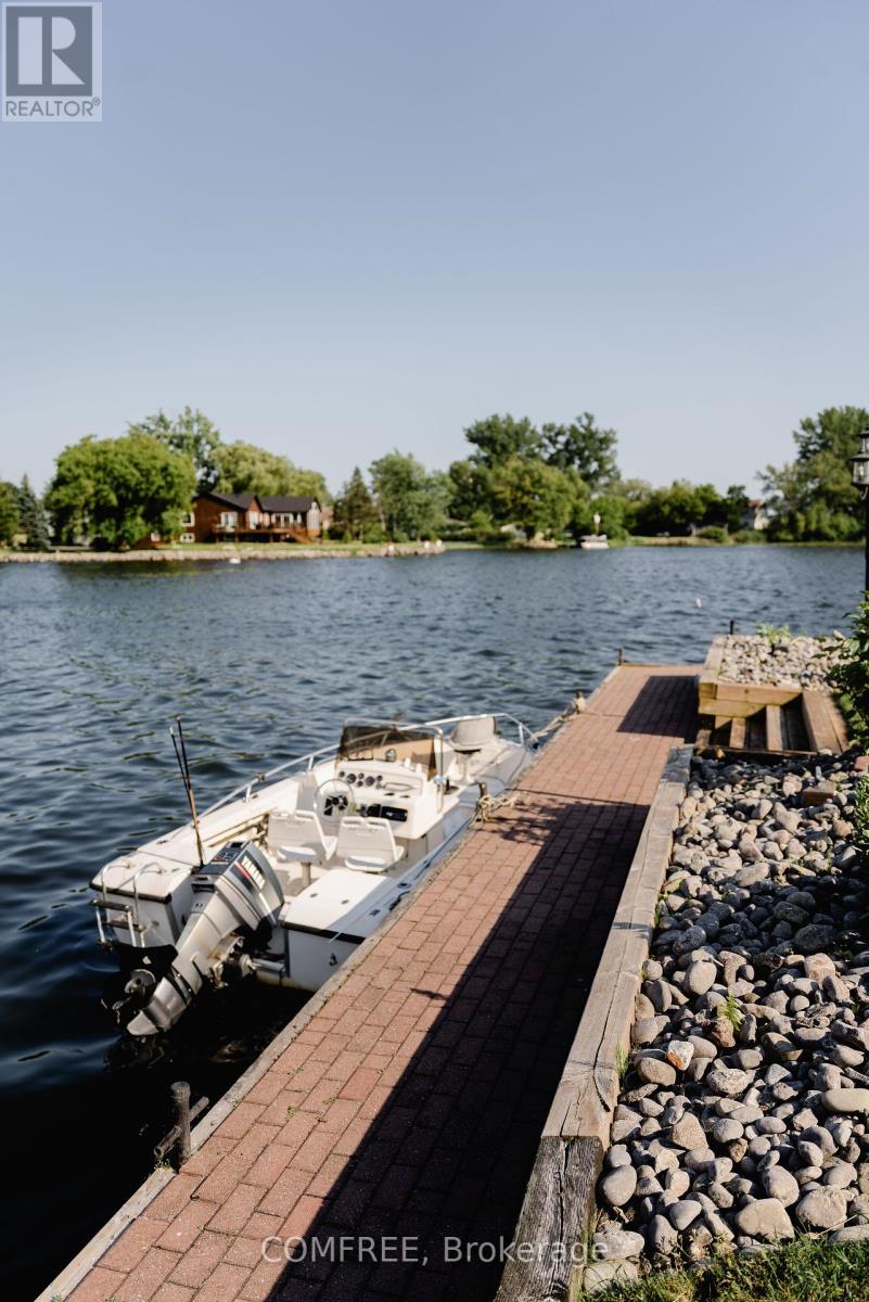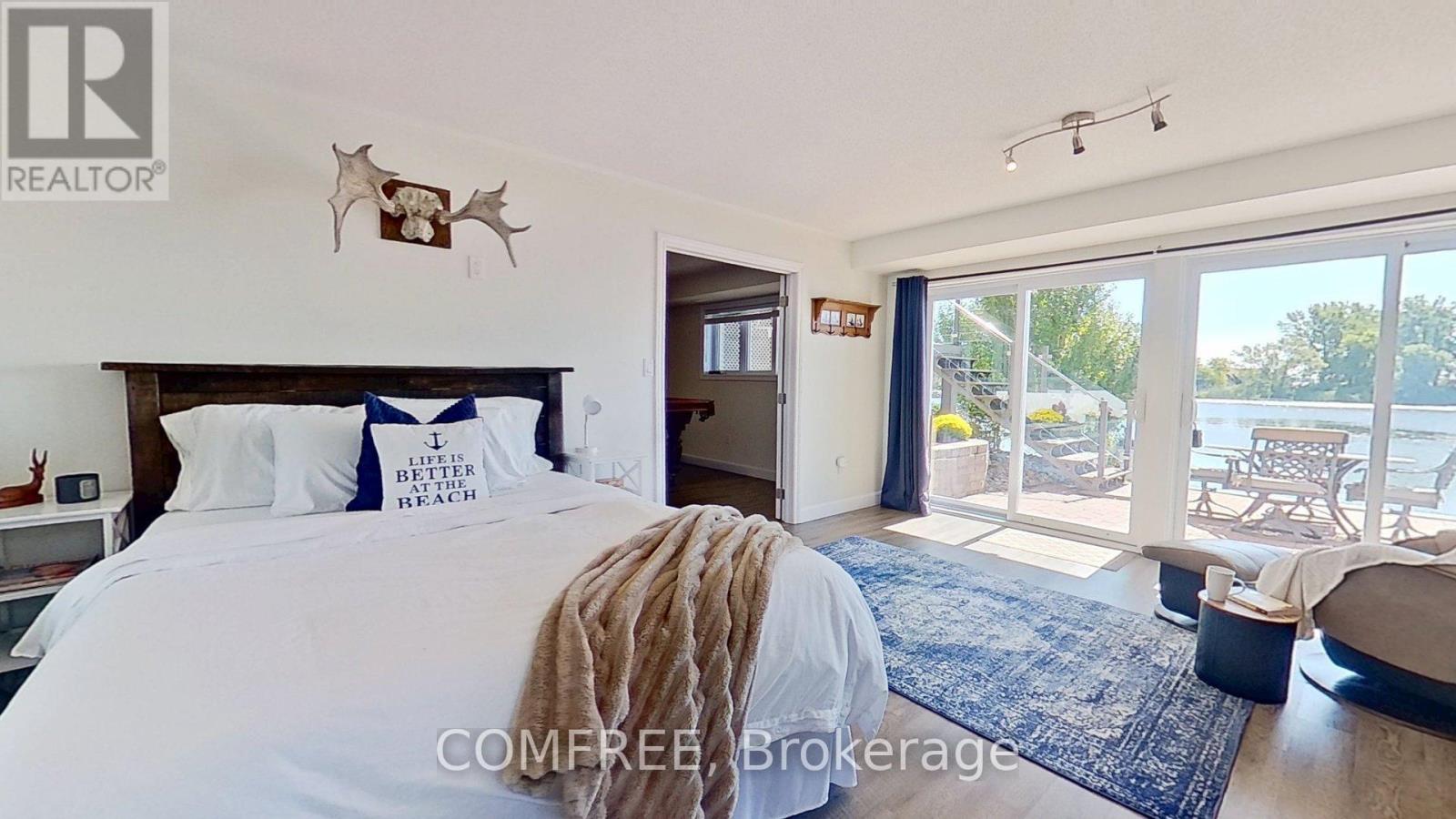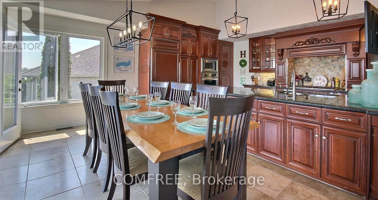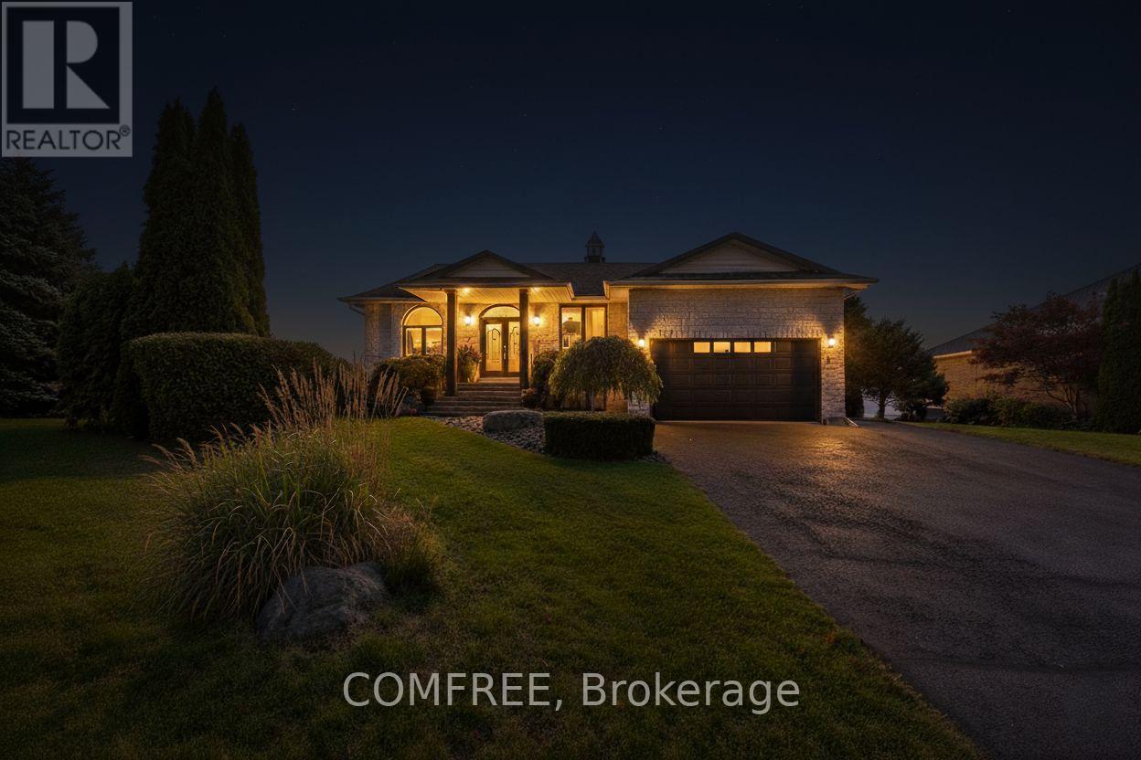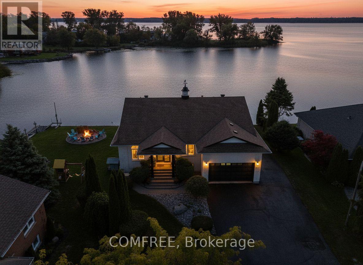 Welcome to your lakeside escape with this stunning southern exposure waterfront home that sits at the end of a quiet cul-de-sac in the town of Brighton, on a protective cove of Presquille Bay with an incredible 175 ft of waterfront. This property is a rare opportunity of both sheltered waters for docking and kayaking, complete with a Seadoo/kayak lift, as well as the open-water adventures awaiting nearby on Lake Ontario. With the benefit of Brightons charming downtown a mere 5 minutes away and full municipal services, this waterfront location is rare. Wall to wall french doors along the entire length of the home provides natural light and sweeping breathtaking views of Presquille Bay. The home features vaulted beamed ceilings, a main floor open-concept layout, a 50 ft covered deck complete with hot tub, a gourmet kitchen that boasts granite counters, a 9-ft island, gas cooktop, heated floors and Sub-Zero fridge. Centered between the dining space and great room and kitchen is a magnificent floor -to-ceiling stone fireplace. The luxe primary suite offers a fireplace, walk-in closet with laundry, and walkout to the hot tub. A study or 2nd bedroom is located off the front foyer. The bright finished walkout basement offers excellent potential for an in-law suite or separate apartment, with its large windows also overlooking the Bay. The lower level has a 4 pc bath, rec room, two bedrooms, and a hobby room/gym with plumbing and patio doors to a second outdoor bricked patio area. The property offers plenty of storage options with an attic above the garage and an expansive enclosed shed under the main deck. The driveway accommodates up to 6 vehicles plus an RV/boat pad. No worries about power outages as there is a hard wired natural gas generator. (id:64974)