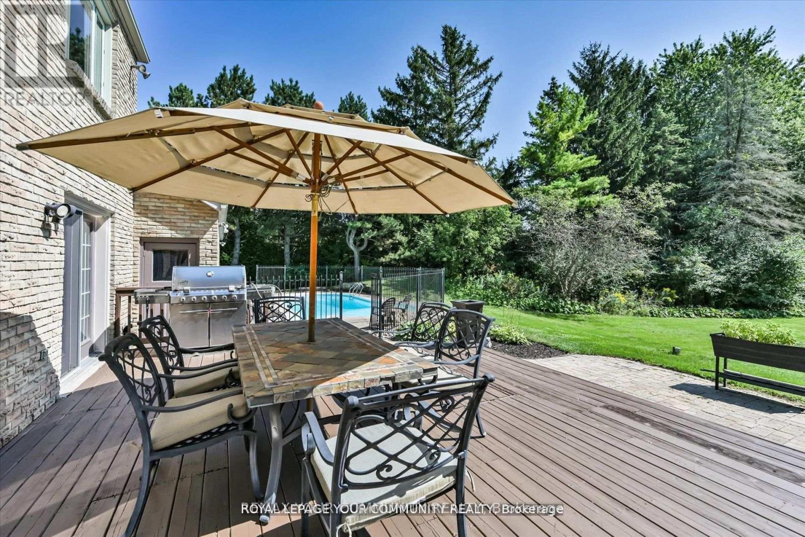PRIVATE*PEACEFUL*PERFECT*POTENTIAL! Wow! If you are looking for seclusion, you have found it right here! Gorgeous well kept Stately Executive Residence. Nestled on close to 2 Acre Estate lot with complete privacy, on a Cul De Sac, quiet dead end Court location. Nestled among towering trees and breathtaking Country views in prestigious Aurora Estates, in south East Aurora. Aurora's most Prestigious Community with Multi Million Dollar Mansions, Boasting sunny South Private exposure, Country elegance abounds here. This Estate lot is completely flat. Well designed elegantly poised home, with over 3000 sq ft. living area, provides a versatile canvas for your personal style. Many windows throughout that brings the beauty of the outdoors within. Quality finishing's throughout, hardwood floors, pot lighting, French Doors, o/s baseboards, 3 fireplaces. Two walkouts to rear yard Oasis! Finished lower level. 3 car garage. The Rear Yard Oasis! boasts an in-ground pool with wrought iron rail surround, Large decking, interlocking patio, all nested with a lush Forest backdrop. Landscape lighting front and rear. Close to shopping, Beacon Hall Golf Course, mins drive to the 404 Highway, St Andrews College with I.B. programme, The Country Day School, and Villanova College. Possible potential for lot severance off Steeplechase. (id:64974)