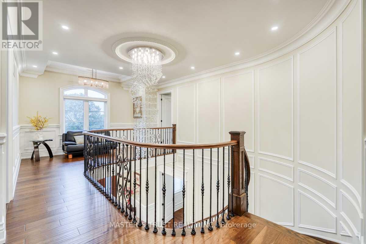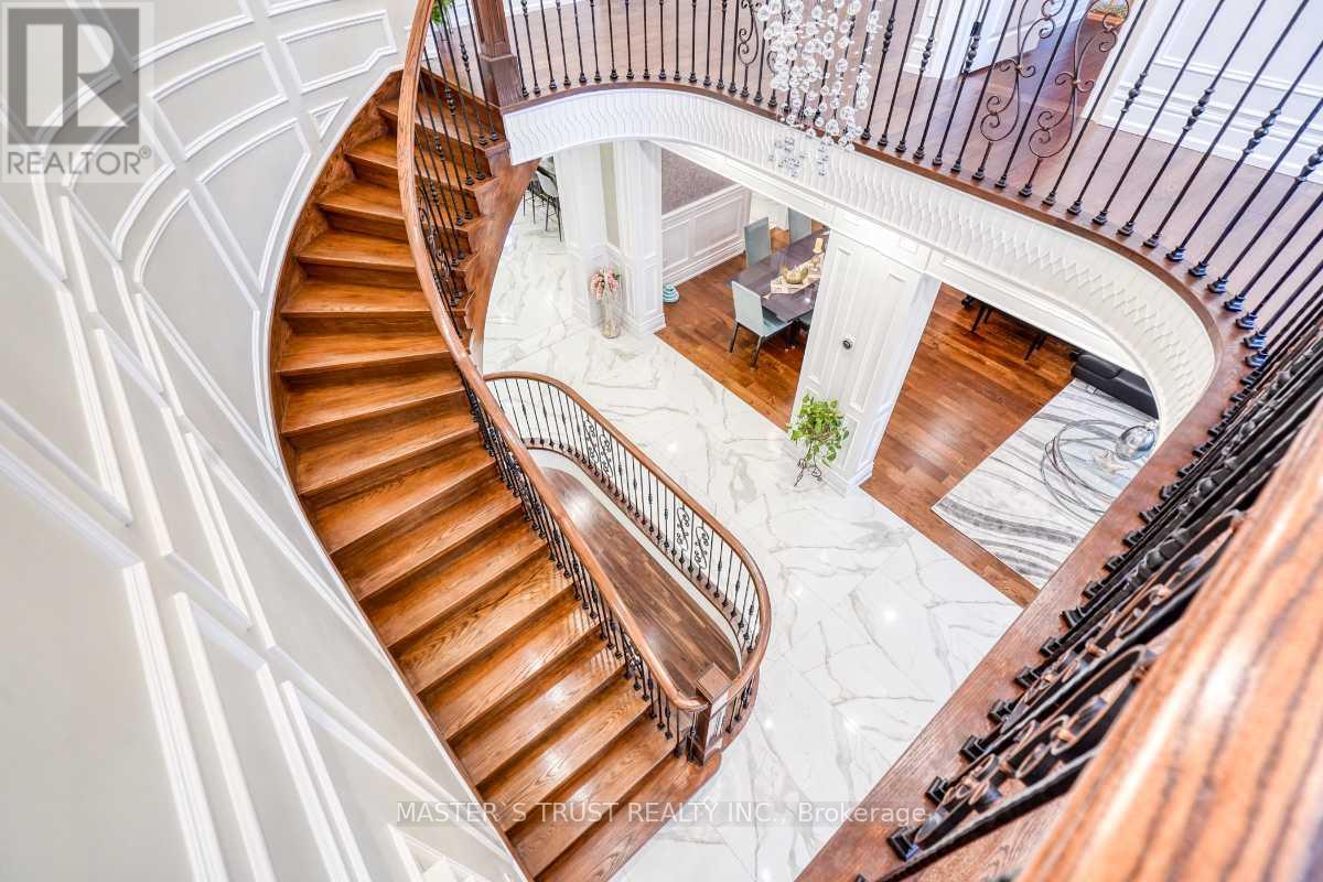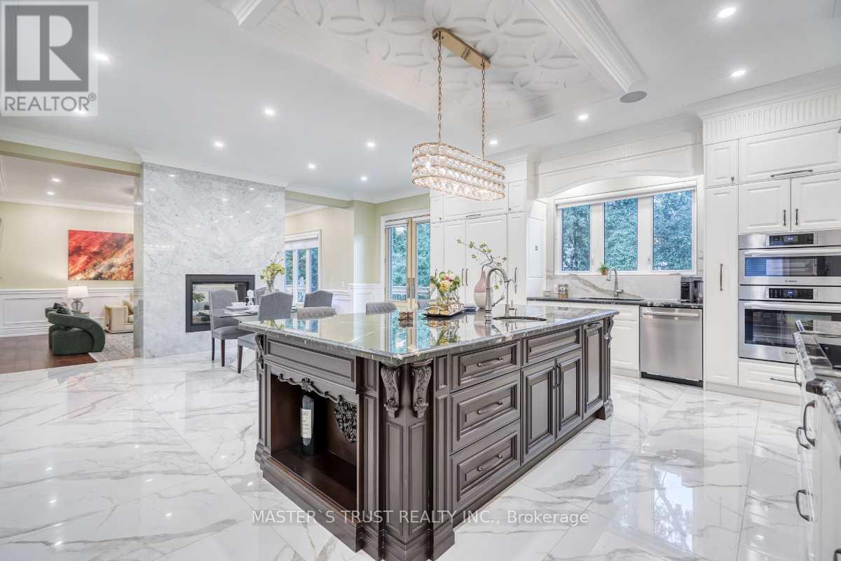 This remarkable, pie-shaped lot, custom-built home resides within a quiet cul-de-sac located in the scenic and elegant Unionville community. It is conveniently near the top ranked, William Berzy Elementary School and Unionville HS District! Ample space is produced by the 11ft ceiling on the main floor, allowing tons of natural lighting into the gorgeous atmosphere. The exquisite main kitchen features high-end marble counters and expansive island complemented by the famous Bosch appliances and second kitchen enclosed behind the main, ready at your creative disposal. The family room is separated by the two-way fireplace. Upstairs highlights the 9 ft ceiling and 5 bedrooms, all including ensuite. The breathtaking primary bedroom incorporates steam applications into the shower allowing for perfect relaxation. The fully finished, walk-up basement also has an outstanding 9 ft ceiling and heated floors, leading to the home theatre, a 3-piece ensuite with a sauna room, and an additional bedroom with another 3-piece ensuite. The spacious tandem 3 car garage with the unbelievable room in the driveway for 6 more cars ensures that space is never an issue! Please refer to the "Home Features Sheet" in the Attachments for even more detailed features included. Welcome to the lovely 7 Trumpour Court. (id:64974)
