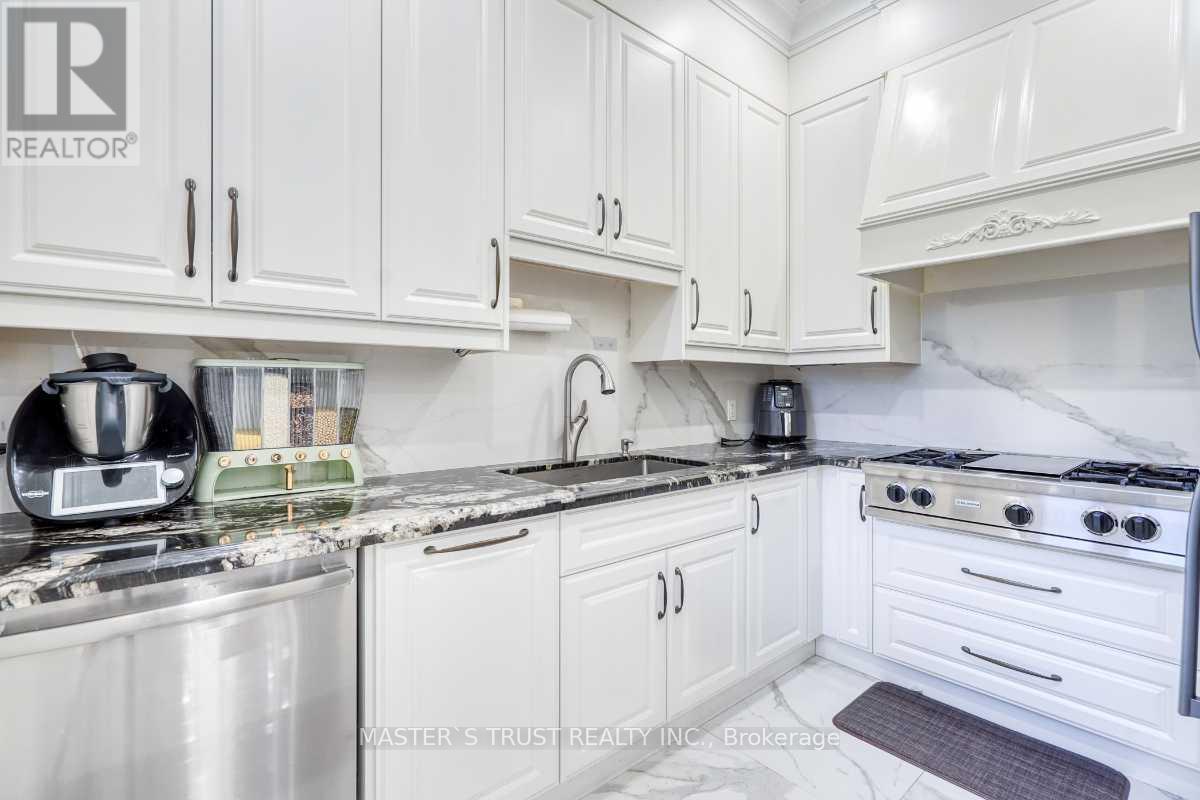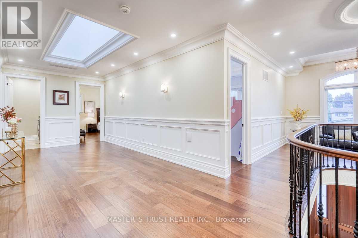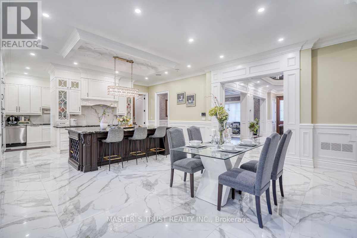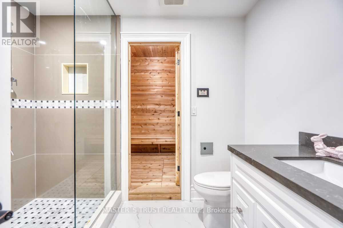 This remarkable, pie-shaped lot, custom-built home resides within a quiet cul-de-sac located in the scenic and elegant Unionville community. It is conveniently near the top ranked, William Berzy Elementary School and Unionville HS District! Ample space is produced by the 11ft ceiling on the main floor, allowing tons of natural lighting into the gorgeous atmosphere. The exquisite main kitchen features high-end marble counters and expansive island complemented by the famous Bosch appliances and second kitchen enclosed behind the main, ready at your creative disposal. The family room is separated by the two-way fireplace. Upstairs highlights the 9 ft ceiling and 5 bedrooms, all including ensuite. The breathtaking primary bedroom incorporates steam applications into the shower allowing for perfect relaxation. The fully finished, walk-up basement also has an outstanding 9 ft ceiling and heated floors, leading to the home theatre, a 3-piece ensuite with a sauna room, and an additional bedroom with another 3-piece ensuite. The spacious tandem 3 car garage with the unbelievable room in the driveway for 6 more cars ensures that space is never an issue! Please refer to the "Home Features Sheet" in the Attachments for even more detailed features included. Welcome to the lovely 7 Trumpour Court. (id:64974)