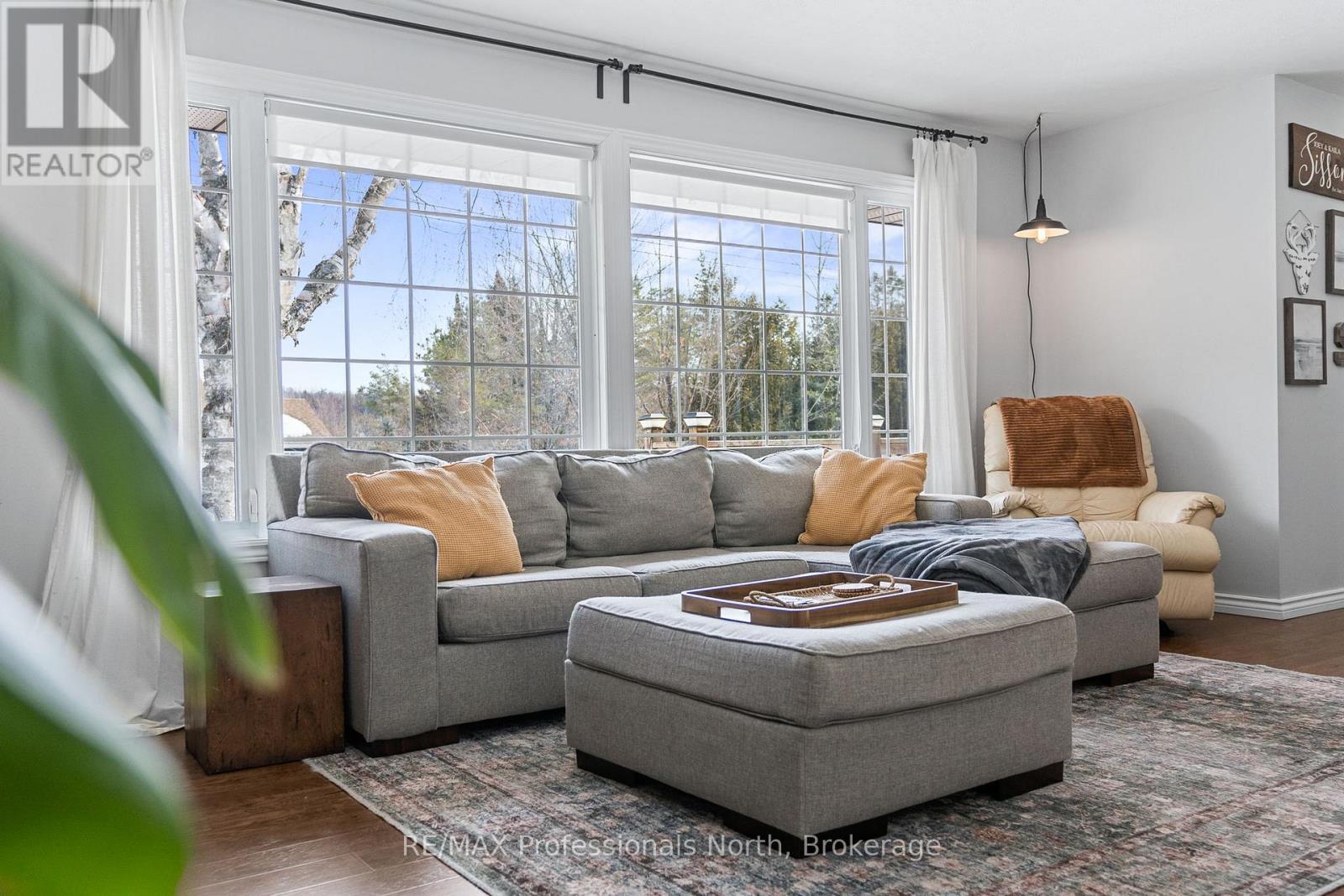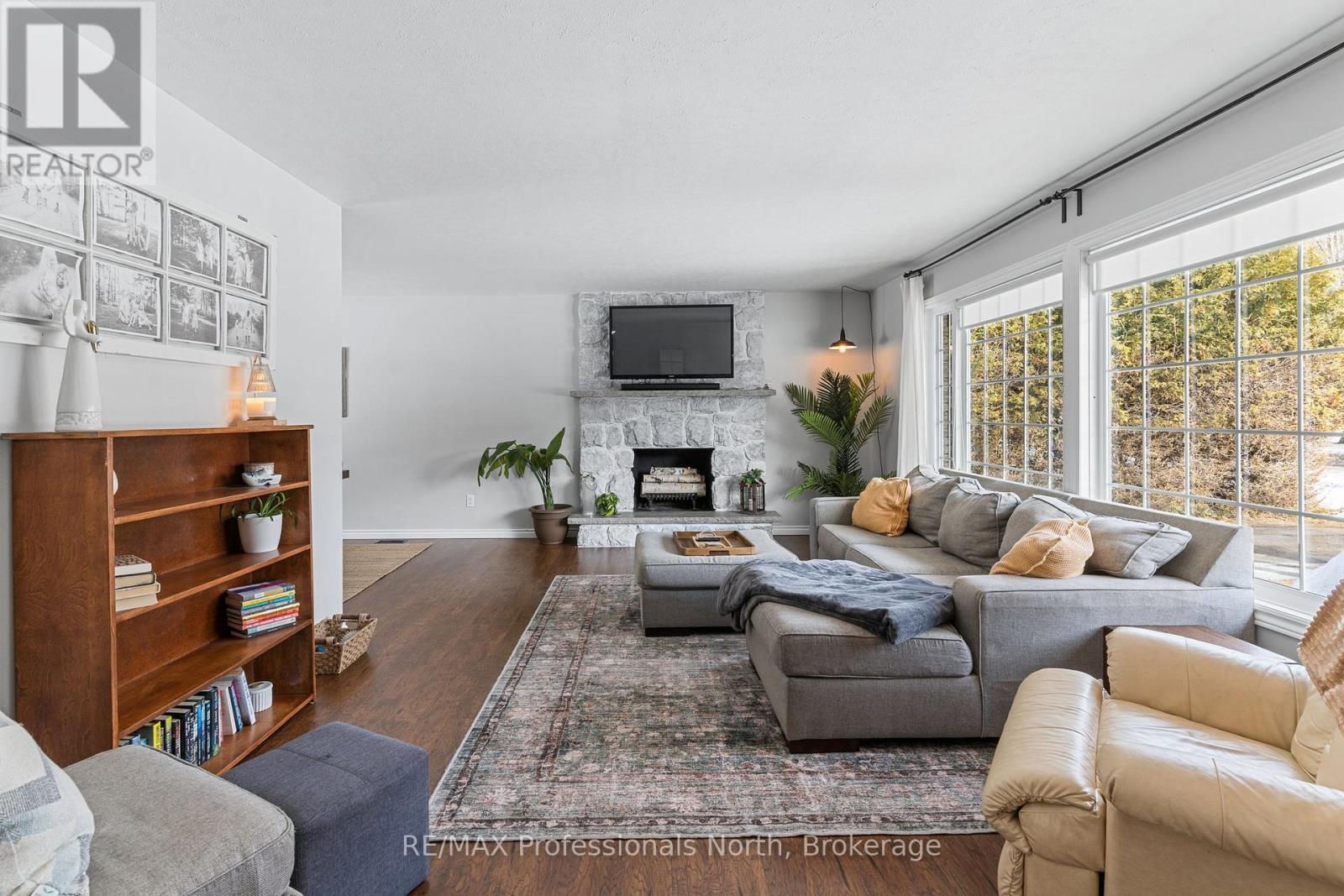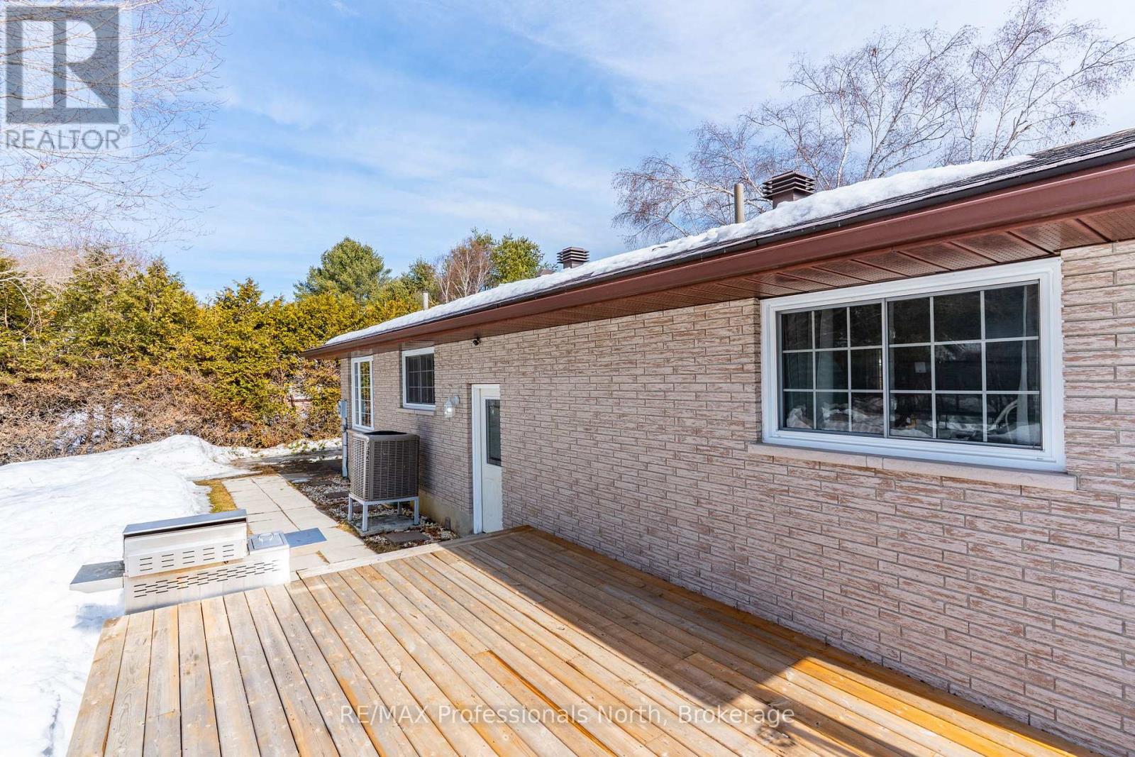 Welcome to a beautifully updated, classic brick bungalow on a quiet, family friendly street in Minden Hills. Blending modern aesthetics, move in ready convenience, and incredible future potential, this home is an absolute must see. Set back from a paved year round road, the property has exceptional curb appeal. A front deck and mature birch tree frame the large yard, which even had enough room for a small personal skating rink last winter! Spanning just under 1,200 sq ft on the main level, the desirable layout perfectly separates the living and sleeping quarters. Large windows flood the space with natural light, highlighting the seamless flow between the living room, dining area, and kitchen. The spacious living room features a striking stone fireplace, perfect for a propane insert. Tucked quietly at one end are three generous bedrooms and a sparkling, updated full bath. Downstairs features just over 400 sq ft of finished space currently serving as a nice rec room, with space to add a fourth bedroom. You will also find incredible equity building potential with a room already plumbed for a second bath, alongside a large furnace and laundry room offering ample storage. Step into the expansive, west facing backyard to find your private summer oasis. Surrounded by mature hedges, the yard features a large entertaining deck, an above ground pool, and a mature maple tree offering shade with plenty of room for yard games. Enjoy the added peace of mind of town water and municipal sewers. Location is everything! Leave the car in the paved driveway and walk to Archie Stouffer Elementary School. Spend weekends strolling to downtown Minden's local restaurants and shops, exploring the scenic Riverwalk and boardwalk. Active families will love walking to the Minden Arena, offering a skating rink, walking track, pickleball, and basketball. Don't miss this incredible opportunity! (id:64974)