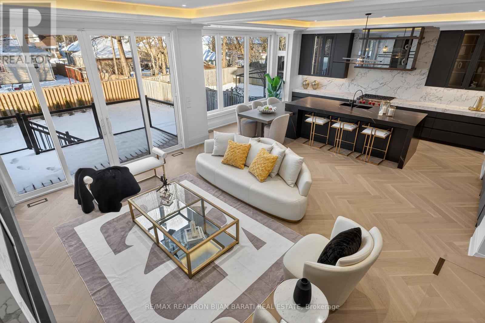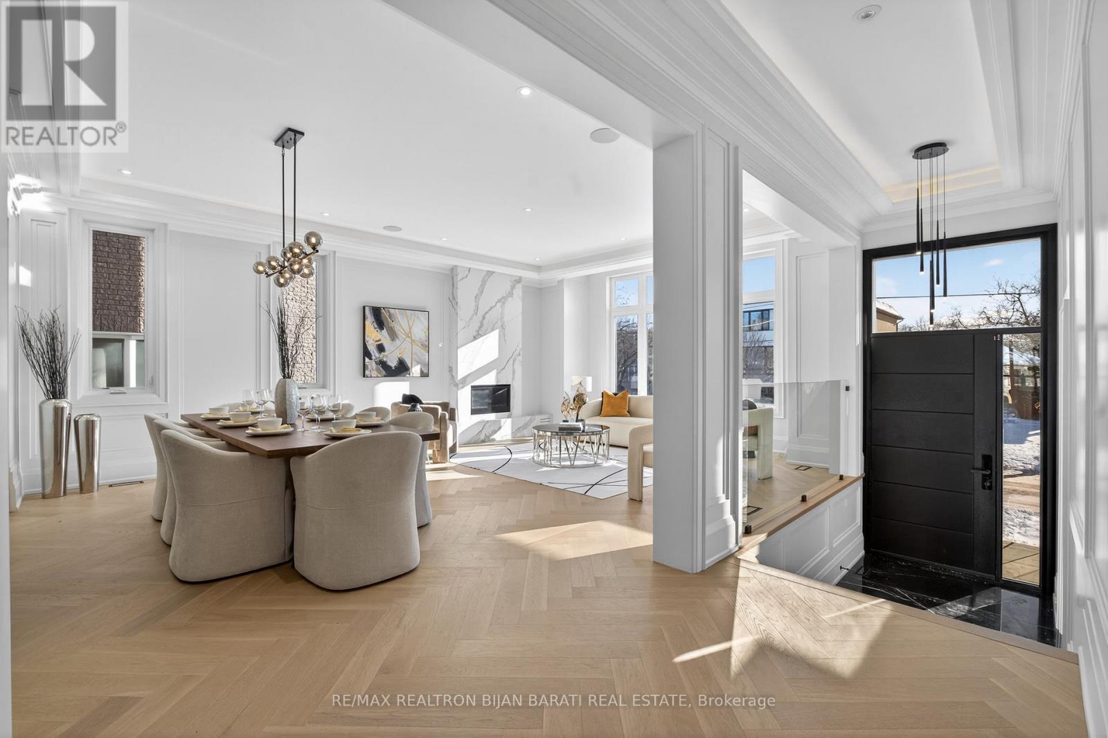 Tastefully Designed, Masterfully Built in 2024, Conventionally located Just Step Away from Vibrant Yonge St / Steeles Ave! Boasting A Perfect Blend Of Contemporary/Modern Design with The Latest Tech & Comfort & Elegance >> ~ 4,800 S.F of Elegant Living Space: 3,262 Sq.Ft + Finished Heated Floor W/O Basement. This Fantastic Home Features Extensive Use of Custom Millwork & Crafted Built-Ins Enriched with Modern Designer Stylish Accents: Blending Wood, Porcelain Slabs, Wallpaper, Glass, Lighting & Other Trendy Materials! Timeless Curb Appeal with A Quality Pre-Cast Facade! Designer Herringbone Hardwood and Porcelain Slabs for Floors, High-Grade Windows, Panelled Walls In Living/Dining/Staircase/Foyer&Hallways! Functional Architectural Design! Open Rising Main Staircase Accented by LED Night Light,Tempered Glass Railing & Skylight with An Artful Wall Panelled. Heated Floor Foyer and Stylish Library With 12' Ceiling Height. Elegant Modern Office with Incredible Designed Walls, Cabinet, Dropped Ceiling & Hidden/Inlay Lighting. Open Concept Main Level with 10' Ceiling, LED Lighting, Decorative Wall Unit/Drink Centre, Living & Dining Room with Panelled Wall and LED Lights. Sleek Professional-Style Kitchen Include Modern Quality Cabinetry, Wolf & Sub-Zero Appliances, Huge Island, Breakfast Bar & An Extra Catering Kitchen in Servery! Dramatic Family Rm with Designer Wall Unit Includes a Gas Fireplace & Floor-To-Ceiling Sliding Doors W/O to Family-Sized Deck and Fully Fenced Backyard! Upstairs with ~10' Cling Includes the Primary Suite Showcases a Designer Bed Board, Boutique Style Walk-In Closet & Skylight Above & Spa-Inspired 6-Pc Ensuite with Smart Toilet & Heated Floor. Additional 3Bedrooms Offer:Own Ensuite, Built-In Closets with Organizers.The Finished Lower Level Boasts 12' Clings, Heated Floor, A Beautiful Wall Unit & Wet Bar, Nanny/Guest Suite & 3-Pc Ensuite, Gym/Den, and a Mudroom. (id:64974)