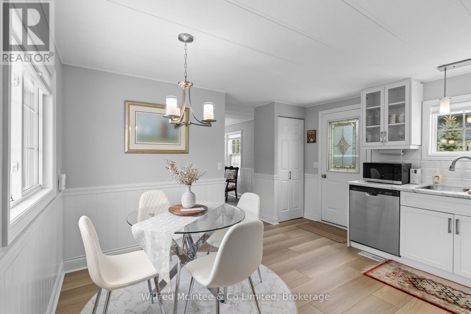 Affordable Year-Round Living in Inverhuron! Welcome to this fully updated mobile home in the Woodland Park community, offering modern finishes and move-in ready comfort just two blocks from the shores of Lake Huron. Inside you'll find luxury vinyl plank flooring, fresh paint, updated lighting and window coverings, along with a custom kitchen (2025) featuring stainless steel appliances. The home offers two spacious bedrooms, a 3-piece bathroom with walk-in shower and stackable washer/dryer, plus major upgrades including a propane forced-air furnace (2023) and central air conditioning (2024). Additional improvements include a metal roof, vinyl siding, vinyl windows and a hot water tank (2025). Outside, enjoy a large 350 sq. ft. deck with pergola, two storage sheds and mature trees providing privacy. Located between Kincardine and Port Elgin and minutes to Inverhuron Provincial Park, trails and a local convenience store/restaurant, this property offers both relaxation and convenience. The leased land fee is $642/month and includes water, septic, land lease, snow removal of private roadways and maintenance of common areas. Looking for financing? Great news - RBC Kincardine has financing options available with as little as 5% down. For example: Purchase price $254,900, down payment (5%) $12,995, mortgage amount approximately $246,905. At an estimated interest rate of 4.5% with a 25-year amortization, the monthly payment would be roughly $1,370/month (plus land lease). WOW - that's an opportunity to own where you live near Lake Huron! Ask about approval process if needed. (id:64974)