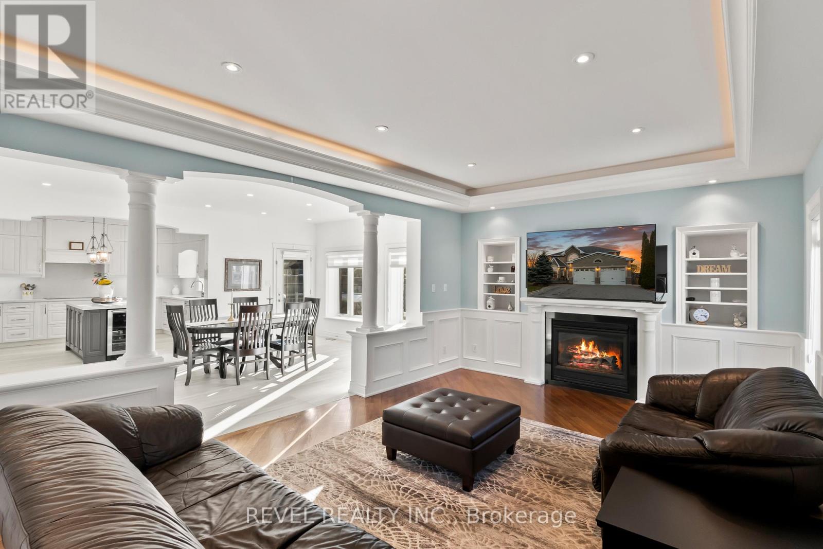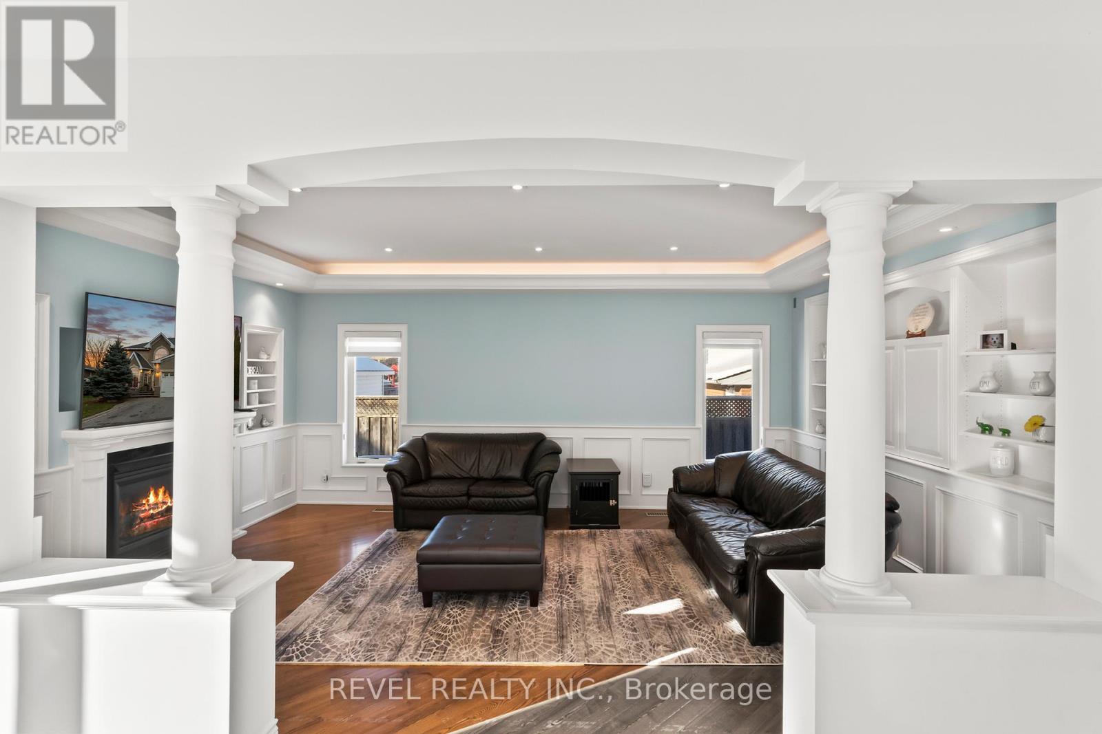 A beautiful custom residence offering 2897 sqft of refined living space, perfectly situated on a quiet cul-de-sac in the highly desirable Blue Grass Meadows community. Thoughtfully designed with over $150,000 in premium upgrades, this home blends timeless craftsmanship with modern elegance to create a warm, sophisticated living experience. Step inside to soaring 18' ceilings in the foyer, an opulent chandelier and porcelain tile floors flowing seamlessly into a cozy living room complete with a gas fireplace, custom built-in shelving, and illuminated ceiling features. The chef-inspired kitchen stands at the heart of the home, offering generous prep space, quartz countertops, quality cabinetry and high end appliances. The sun-filled dining space provides direct access to the backyard patio, overlooking the mature gardens, offering a perfect setting for entertaining and peaceful evenings at home. Upstairs, you'll find three generously sized bedrooms, perfect for guests, children or a dedicated home office. The spacious primary bedroom includes a spa-like 4-piece ensuite and walk-in closet. A convenient second-floor laundry room enhances everyday living and can easily be converted back into a fourth bedroom if desired. This home features a two-car garage, landscaped grounds, and a full irrigation system for low-maintenance up keep. This is a rare opportunity to own a meticulously maintained custom home in an established neighbourhood loved for its quiet streets, strong community feel, and proximity to parks, schools, and major amenities. A residence that offers quality, comfort, and enduring design ready to be enjoyed for years to come. (id:64974)