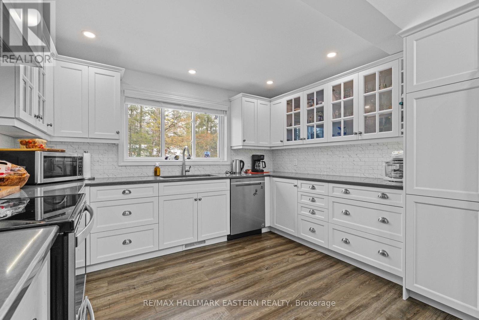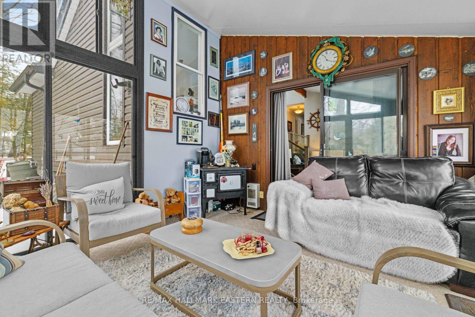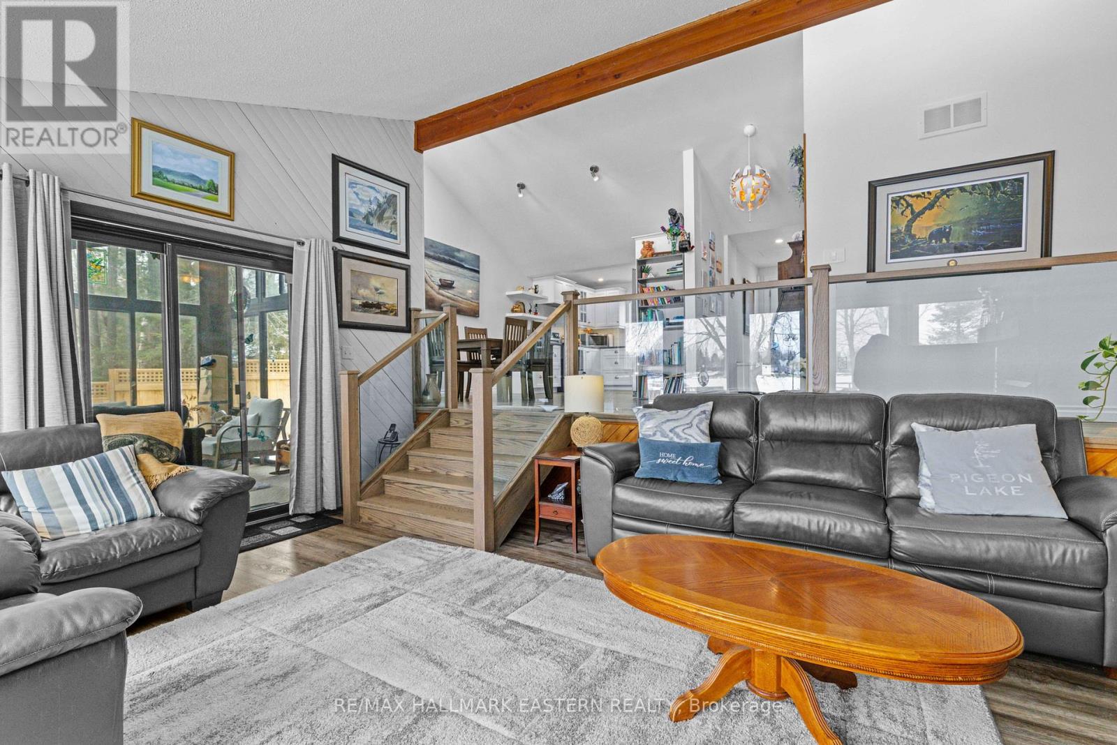 Welcome to this custom Viceroy waterfront bungalow offering 119 feet of private shoreline on Pigeon Lake. Enjoy calm, picturesque lake views and plenty of natural light through stunning wall-to-wall windows in the main living areas. A bright, open-concept layout features a spacious eat-in kitchen overlooking the sunken living room-ideal for entertaining or relaxing while taking in the waterfront setting. The property includes 3 bedrooms and 2 bathrooms, with a primary suite complete with an ensuite. Step out to the 12' x 11' three-season sunroom, perfect for morning coffee or unwinding at the end of the day while enjoying the peaceful surroundings. A detached garage offers excellent storage for vehicles, tools, or water equipment. Situated on the Trent-Severn Waterway, enjoy lock-free boating with access to miles of interconnected lakes-perfect for fishing, kayaking, or canoeing right from your dock. Located just minutes to Ennismore and Bridgenorth amenities, including golf, trails, local shops, and approximately 1.5 hours from the GTA. This home is the perfect opportunity for those seeking a peaceful waterfront lifestyle without sacrificing convenience. (id:64974)
