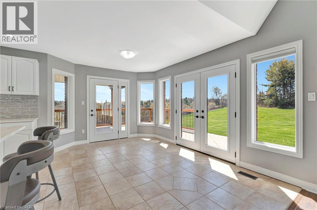 This incredible 57+-acre slice of paradise is more than just a property—it's a retreat into nature’s beauty. Rolling hills & valleys are interwoven with trails, offering a true paradise for outdoor enthusiasts. Fairchild Creek winds its way through the l&, offering an idyllic setting for relaxation & recreation. Explore the l&scape on foot, hunt, ride ATVS or off-road vehicles, or simply enjoy the peace & serenity. Step onto the deck to greet magical sunrises & unwind with breathtaking sunsets. With ample space & privacy, this property is ideal for large or extended families seeking room to grow & enjoy life together. The move-in ready home features over 3,800 sq. ft. of finished living space, including 5 spacious bedrooms, office space, & 3 full baths. The open-concept kitchen & main living area are perfect for modern living. The primary bedroom boasts an oversized walk-in closet & a 4-piece ensuite. Wood stoves at each end of the home add a cozy touch of country charm, complemented by a geothermal heating & cooling system for efficient, sustainable warmth & comfort year-round. A finished walk-out lower level adds even more versatile living space. An oversized three-car garage offers extra storage & ample parking. Need space for hobbies or projects? The 3,200 sq. ft. insulated & heated workshop is a dream come true. Featuring three oversized garage doors, 14-foot ceilings, & a built-in loft, this space is perfect for collectors, fabricators, or anyone needing a large, organized workspace. There’s room for vehicles, tractors, & all your toys. Adding to its appeal, approximately 25 acres of woodlot include around 1,200 blue spruce & 150 oak trees, showcasing a commitment to sustainability & natural beauty. Whether seeking a private retreat, recreational playground, or family paradise, this property offers peace, adventure, & endless possibilities. Centrally located just minutes from St. George, Paris, Brantford, Ancaster (id:64974)