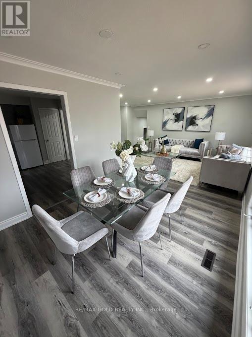 Spacious home situated on a large corner lot backing directly onto a park. The property offers three bedrooms and a bright open-concept living and dining area. Vinyl flooring runs throughout the main level, complemented by LED pot lights. The eat-in kitchen provides generous space for family meals. A separate entrance leads to a large basement with excellent potential for a future three-bedroom legal apartment. Enjoy the expansive fully fenced backyard with park views and a large storage shed, perfect for additional storage. (id:64974)