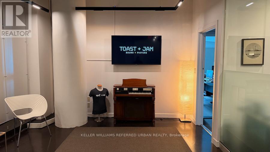 Fantastic, light-filled office space in a modern, loft-style setting designed to inspire creativity and productivity. This inviting and versatile workspace is one your team will actually enjoy coming to every day. Offering three private offices for sublease, along with shared access to a stylish waiting/lounge area and kitchenette within a beautifully finished unit. Share the space with Toast + Jam (Sound + Picture Company), creating a dynamic and professional environment. Approximately 1,606 sq. ft. of fully furnished, plug-and-play space with elevator exposure. The building also features a shared rooftop patio. Offered at a heavily discounted gross sublease rate for a 3-year term, providing exceptional value in a premium downtown location. Ideally situated at Adelaide & Spadina in the heart of the Entertainment District, just steps to King Street West and Queen Street West. Surrounded by high foot traffic, amenities, and transit, this location supports strong business growth and client accessibility. (id:64974)