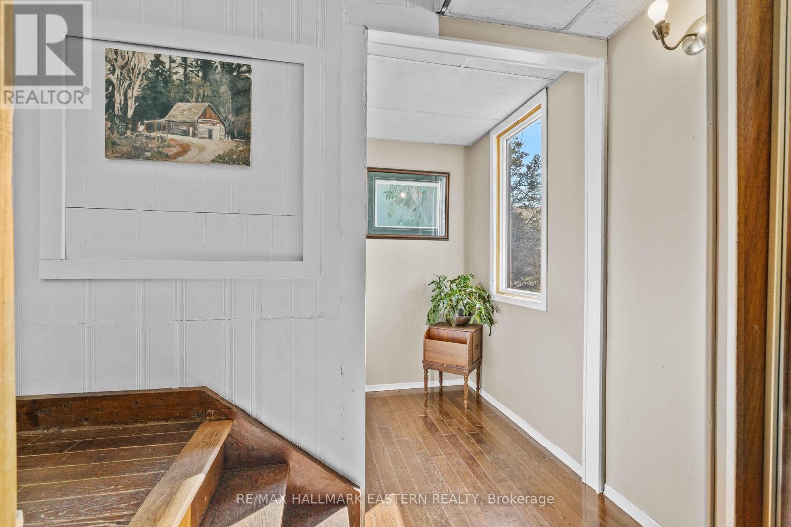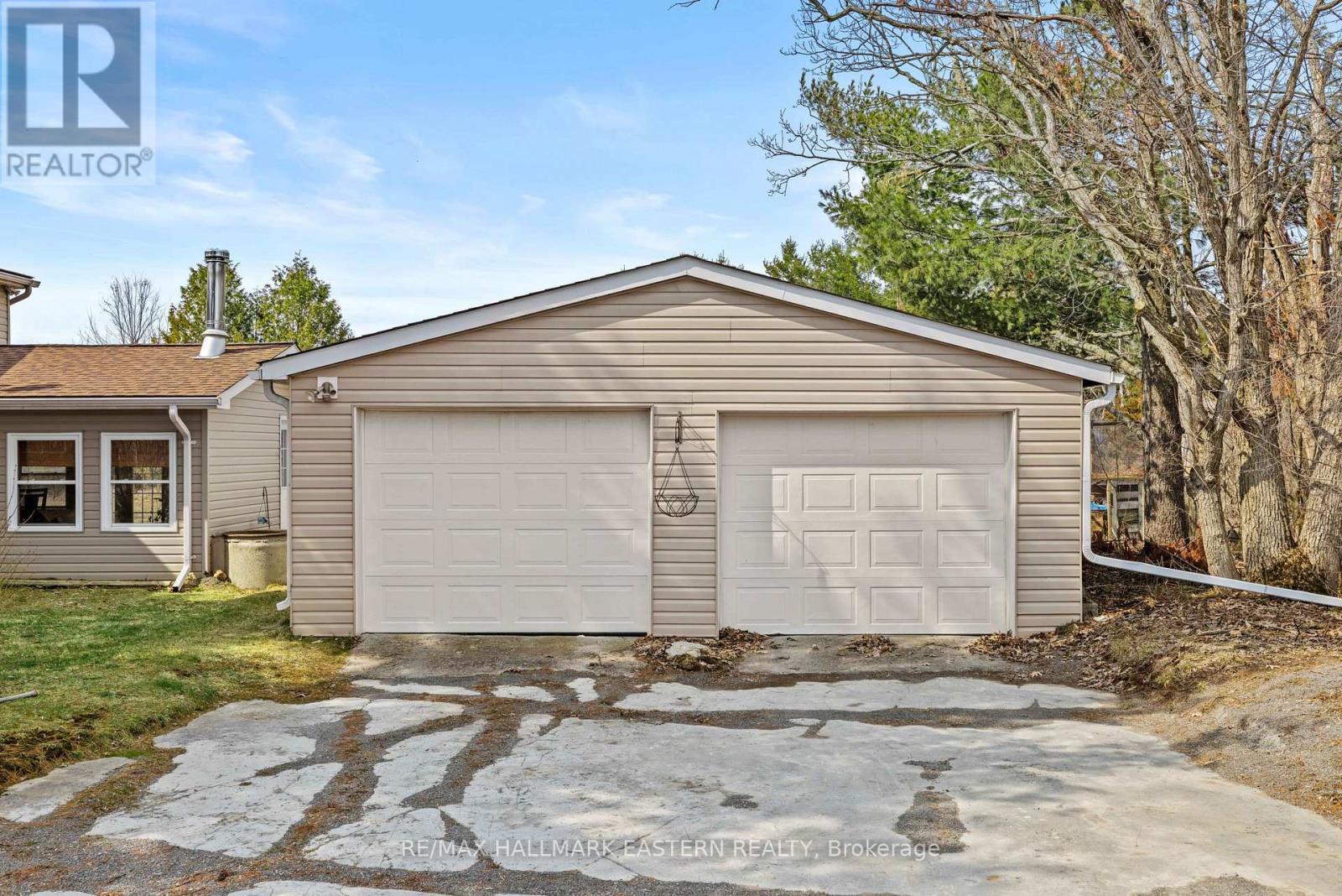 Nestled on a private 1.23-acre level and cleared lot, this charming country home offers the perfect blend of comfort, space, and rural tranquility. Featuring a detached double garage and a distinctive circular driveway set on exposed limestone bedrock, the property makes a striking first impression. The home offers a versatile 1+2 bedroom, 2-bath layout with an inviting open-concept main floor. The spacious living area flows seamlessly to a walkout deck, ideal for enjoying the peaceful surroundings. A generous primary bedroom includes a walk-in closet, providing both comfort and convenience. A standout feature is the attached sunroom, finished with warm tongue-and-groove pine and complete with a cozy freestanding woodstove-perfect for year-round enjoyment. For those seeking additional space or future potential, an adjacent 1.29-acre treed lot is also available for purchase. Offering excellent privacy, this separately deeded parcel presents a unique opportunity, though buyers should note that an entrance permit and servicing will be required. (id:64974)