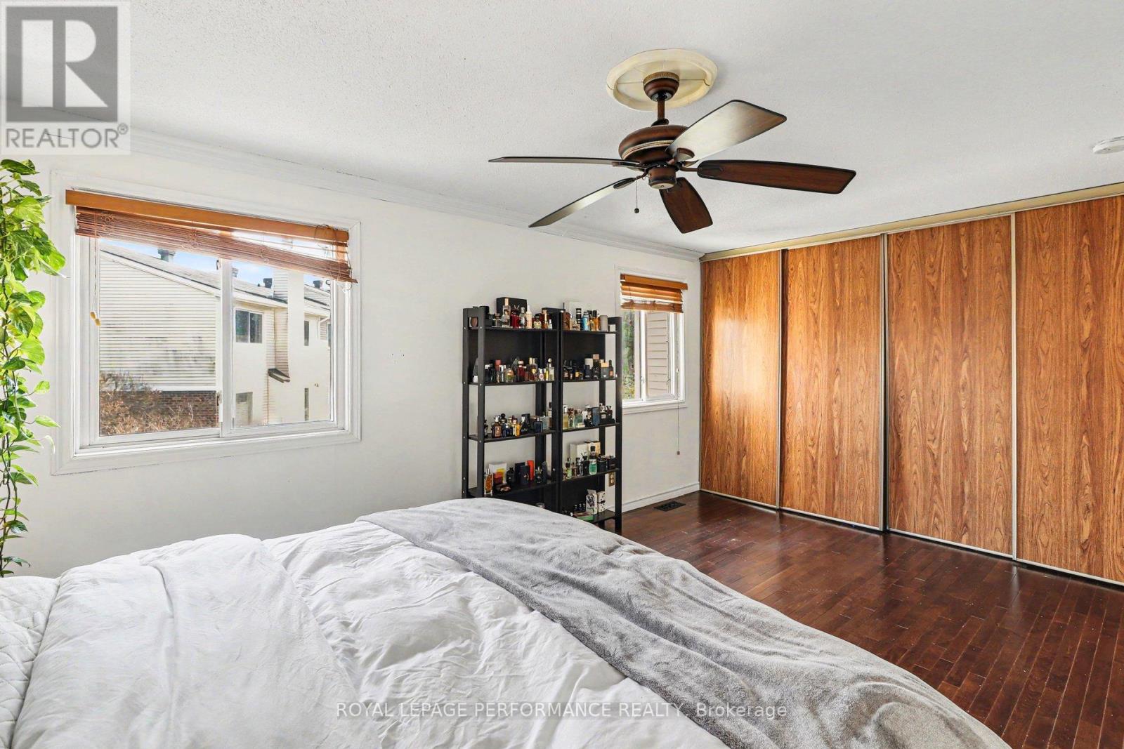 Welcome to this spacious 2-storey townhome offering a functional layout and a number of practical updates. Hardwood flooring extends throughout both the main and second levels, adding warmth and continuity to the space. The main floor features a bright living room with a wood-burning fireplace and patio doors leading to a private, fully fenced backyard with patio. A separate dining area provides a defined space for everyday meals or entertaining. The updated kitchen offers stainless steel appliances, backsplash, ample cabinetry and counter space, along with pot lighting. A generous foyer includes a closet and convenient access to the garage. Upstairs, the primary bedroom is well-sized and includes an updated 3-piece ensuite with an oversized shower. Two additional bedrooms offer good space and flexibility. The main 5-piece bathroom has also been updated and features double sinks. The finished basement provides additional living space suitable for a family room, home office, or recreation area. Recent updates include wood fence slats (2018), permanent outdoor LED lighting (2023), furnace and smart thermostat (2024), washer and dryer (2024), CCTV system (2024) and air conditioner (2025).Located within walking distance to Joe Jamieson Park, public transit, and Place d'Orléans Shopping Centre, this home offers convenience in an established neighbourhood. (id:64974)