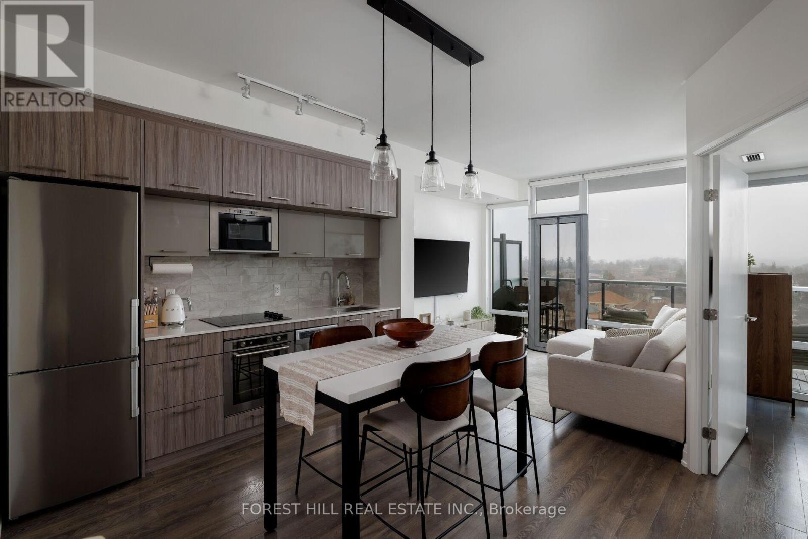 Welcome to unit 701! This bright and beautiful 2 bedroom, 1 bathroom condo offers 638 sqft +95 sqft balcony. This unit offers a modern open layout, thoughtfully designed with the utmost attention to detail. With a spacious living and dining area this unit is filled with natural light from the floor-to-ceiling windows and unobstructed views. The kitchen offers stainless steel appliances, beautiful backsplash and quartz countertops along with a custom kitchen table and dining chairs, perfect for living and entertaining. Throughout the unit you will find custom upgrades including custom high end closet organizers in both bedrooms, brand new washer/dryer, pot lights, upgraded hardware in the bathroom and so much more. The large balcony offers a great space for entertaining and the perfect place to unwind. The building offers amazing amenities including a state-of-the-art gym, sauna, outdoor saltwater pool, roof top lounge, party room, visitor parking and terrific concierge services. Avenue on 7 Condos is ideally located in the heart of Woodbridge with easy access to all major highways 400, 401,407, 427, and is steps away from public transit. This turnkey unit provides all your urban living needs and now is the perfect opportunity to call it home! (id:64974)