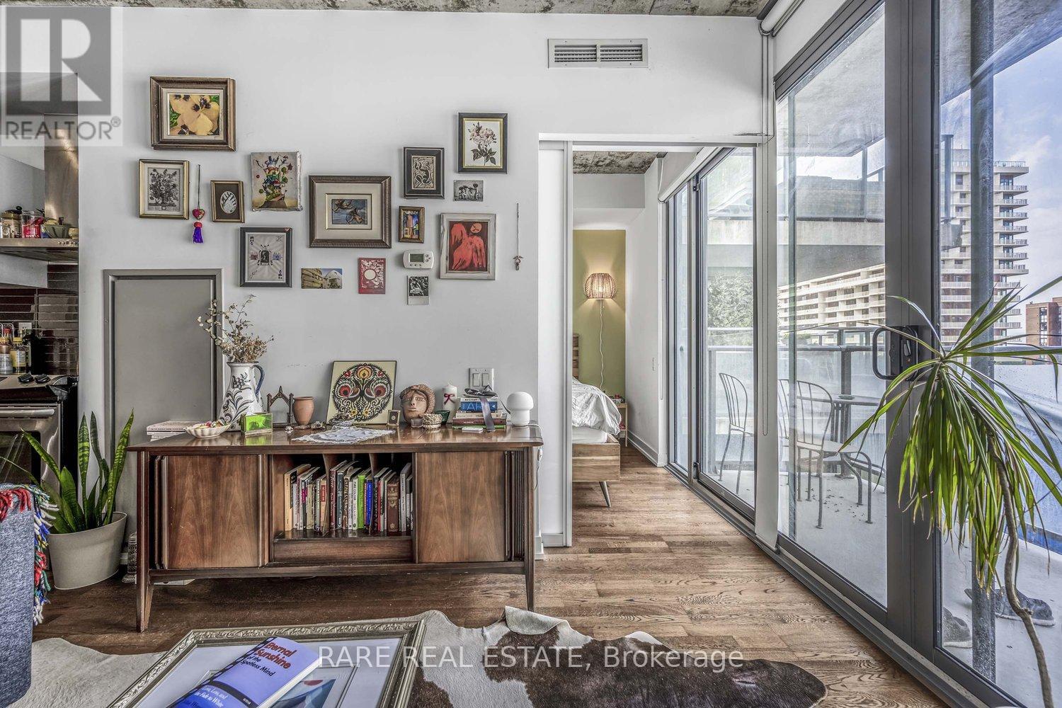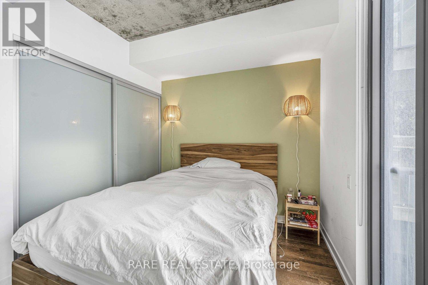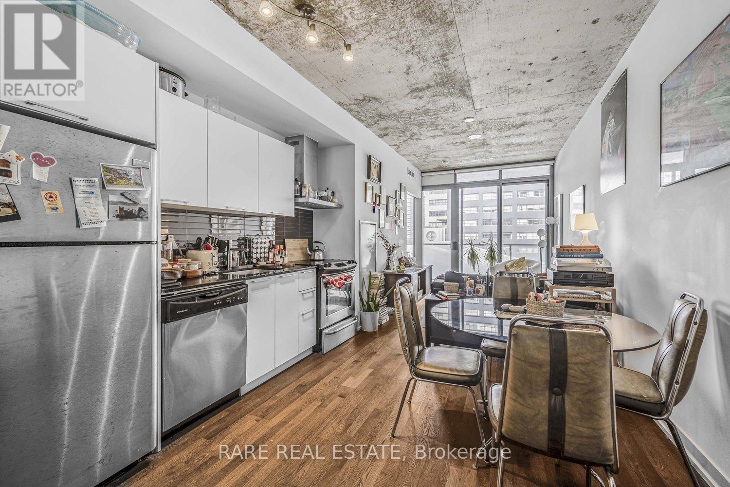 Discover urban living at its best in this stylish 1-bedroom condo at the sought-after 650 King West residences. Perfectly located at King & Bathurst, this modern suite offers an unbeatable balance of comfort, efficiency, and vibrant city life.The open-concept layout maximizes every inch of space, featuring floor-to-ceiling windows that flood the home with natural light and create a bright, inviting atmosphere. The sleek kitchen is equipped with modern cabinetry, integrated appliances, and ample counter space ideal for cooking or entertaining. The living area flows seamlessly to a private balcony, offering a perfect spot to relax or take in the energy of King West.The bedroom is well-designed with room for a queen bed and storage, while the spa-inspired bathroom boasts premium finishes. Additional features include in-suite laundry, a heat pump for efficient heating and cooling, and thoughtful design details that elevate the living experience.Low monthly condo fees cover essentials, keeping costs manageable, and property taxes remain very reasonable. Residents of 650 King enjoy the convenience of a boutique building with secure entry, underground parking options, and excellent noise insulation thanks to its concrete construction.Step outside and you're in the heart of one of Torontos most dynamic neighbourhoods surrounded by trendy restaurants, coffee shops, boutiques, and nightlife. With a near-perfect Walk Score and TTC at your doorstep, commuting and city exploring are effortless.Whether you're a first-time buyer, investor, or looking for a pied-à-terre in downtown Toronto, this suite offers incredible value in one of the citys most desirable areas. (id:64974)