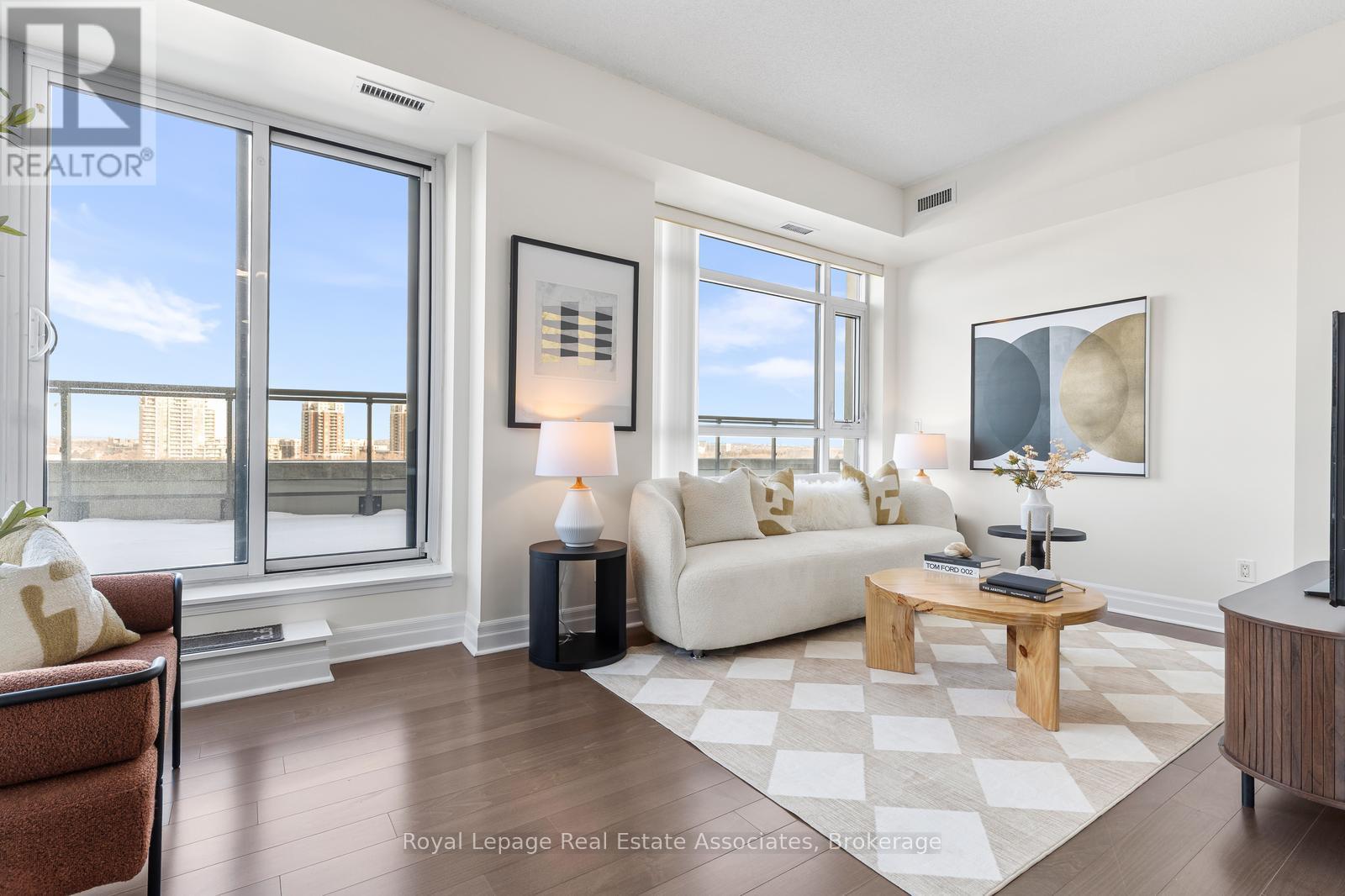 Welcome to exceptional urban living in the heart of Downtown Markham! This bright and spacious 2-bedroom + den condo is a true showstopper - thoughtfully designed with a split-bedroom layout that delivers both privacy and remarkable functionality rarely found in condo living.Floor-to-ceiling windows flood the open-concept living and dining area with natural light, creating an inviting atmosphere perfect for everyday living and entertaining. The stylish modern kitchen features stainless steel appliances, a sleek breakfast bar, and ample cabinetry, seamlessly flowing into the main living area with a walk-out to an oversized private terrace - a rare urban luxury and an entertainer's dream.The split layout places the primary bedroom on one side of the unit, offering a true retreat complete with two closets and a spa-inspired 4-piece ensuite featuring a walk-in shower. The generously sized second bedroom sits on the opposite end, offering guests or family members their own private space, serviced by an additional 3-piece bathroom - also with a walk-in shower. The versatile den rounds out this intelligent floorplan, functioning beautifully as a home office or easily converted into a third bedroom.For those looking to downsize without compromise, this is the upgrade you've been waiting for - all the space, luxury, and style of a premium home, wrapped in the ease and convenience of condo living.Residents enjoy access to world-class amenities including 24-hour concierge, party room, indoor pool, sauna, media room, and a rooftop terrace. Unbeatable location just minutes to Highways 404 & 407, steps to VIVA transit and GO Train access, and walking distance to York University - surrounded by CF Markville, dining, medical facilities, the YMCA, and everyday conveniences.A perfect opportunity for end-users and investors alike - modern living, exceptional outdoor space, and a prime location all in one. (id:64974)
