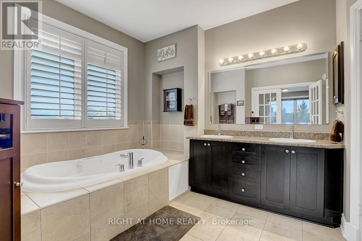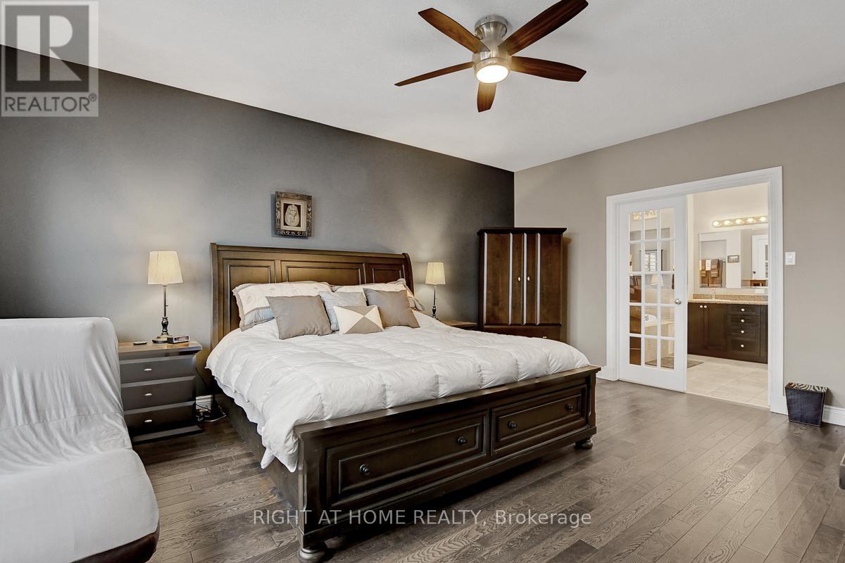 Welcome to this stunning 2 storey home set on a premium oversized corner lot in one of Ottawa's most desirable family-friendly communities. This beautifully maintained residence offers exceptional curb appeal, a rare triple car garage, and over-the-top upgrades that truly set it apart. Step inside to a bright and elegant main floor featuring upgraded hardwood flooring, a thoughtfully designed layout, and a high-end kitchen complete with custom cabinetry, granite countertops, stainless steel appliances, and a sleek hood vent. The attention to detail continues throughout the home, with quality finishes, upgraded fixtures, and large windows dressed with premium Hunter Douglas blinds, filling the space with natural light.Upstairs, you'll find 4 spacious bedrooms with newly upgraded hardwood flooring throughout. The primary suite offers a luxurious retreat with a custom walk-in closet organization system and a private ensuite bath. The remaining bedrooms are exceptionally well served by two additional 3-piece bathrooms, providing comfort and convenience for family and guests alike. A second-floor laundry room adds everyday practicality, making daily routines seamless and efficient. The fully finished basement offers incredible additional living space, including a large recreation room, a full bathroom, and a generously sized bedroom-perfect for guests, extended family, or a private retreat.Outside is where this home truly shines. The backyard is a private oasis, fully fenced with composite fencing and professionally landscaped. Enjoy summer days on the multi-level composite deck with gazebo, unwind in the hot tub, or relax among mature trees and thoughtfully designed outdoor spaces. The front yard features extensive interlock landscaping, enhancing the home's already impressive curb appeal. This is a rare opportunity to own a meticulously upgraded, move-in-ready home that offers space, luxury, and lifestyle-all in one exceptional package. (id:64974)