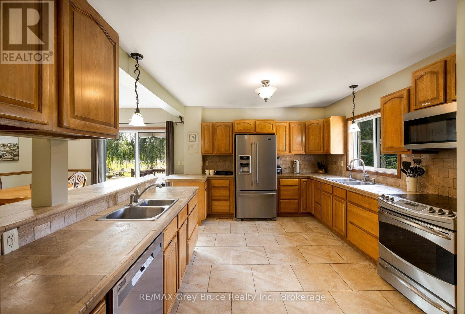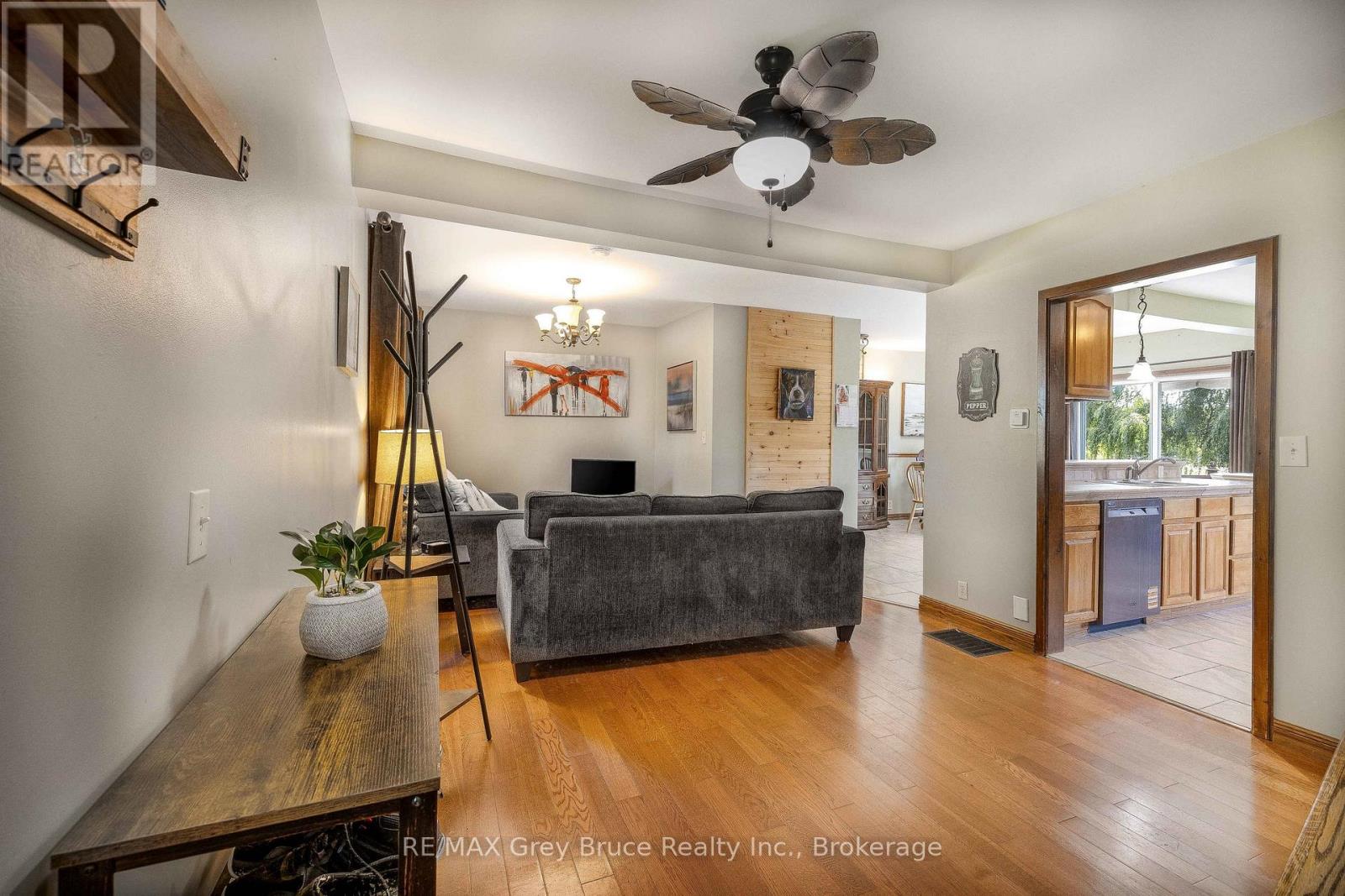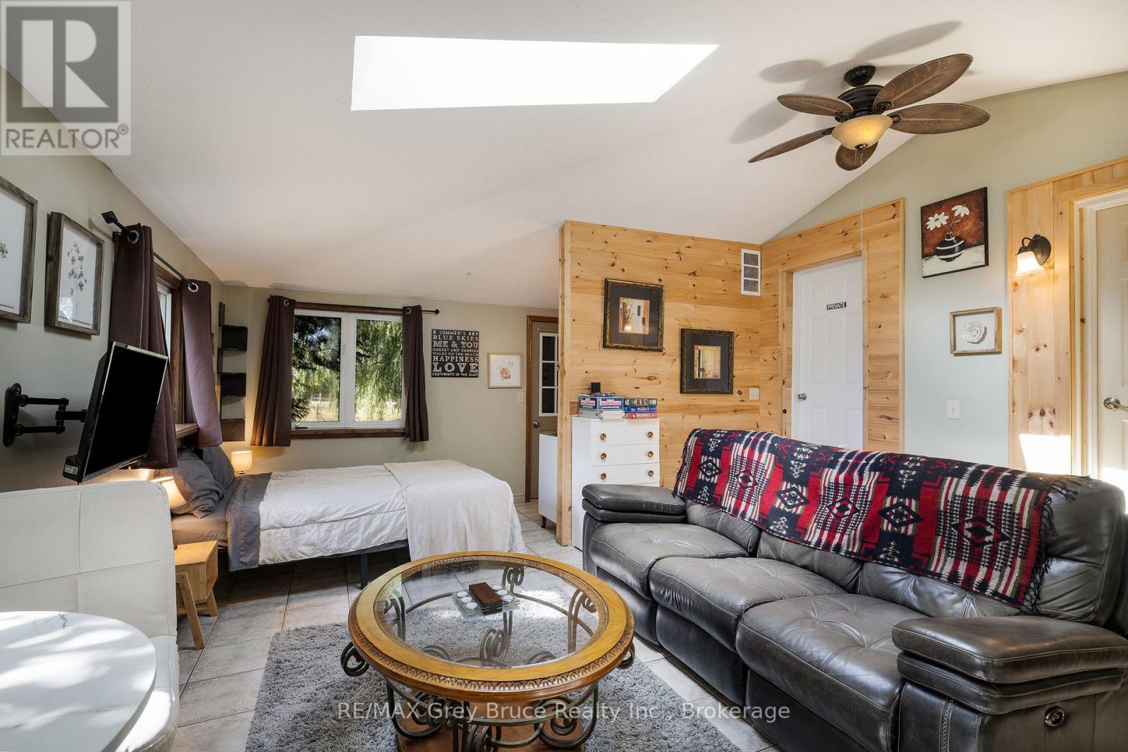 FAMILY HOME, BED & BREAKFAST, HOME BASED BUSINESS or RECREATIONAL GETAWAY! This versatile property offers incredible potential for a variety of uses, whether you're looking for a welcoming family home, a cozy bed & breakfast, a base for your home-based business, or a peaceful country getaway. Ideally located on Highway 6 with commercial zoning, the property provides excellent visibility for those exploring business opportunities close to town. Set on 1.5 acres, there's ample space for future development or simply enjoying the great outdoors. The property includes a dog run, firepit area, and a majestic willow tree, creating a serene setting for relaxation or play. A large cleared area offers endless possibilitiesfrom a children's play zone to a thriving vegetable garden. Mature apple trees, gardens, and exterior storage enhance the charm and practicality of this unique property. Inside the main home, you are afforded 3 bedrooms plus a den, and a 4Pc bath for comfortable living. The spacious kitchen features tile flooring, breakfast bar and SS appliances, with access to a mudroom. The open concept layout is perfect for entertaining. The dining room features a walkout to the deck, as well as access to the in-law suite. The second level bedrooms are spacious, each with closet space. A 4Pc bathroom offers a jacuzzi tub to relax after a long day. The Den is perfect for an in-home office, library or TV room with access to the loft bedroom. The in-law suite is a flexible space, and could be used as an additional family room, workshop space or kept as it is offering guests / family their own space. Featuring its own entry, 2Pc bathroom plus a separate shower/sink, and a cozy woodstove. Minutes from Tobermory and local amenities, this property blends the tranquility of country living with the convenience of nearby services. Whether you're starting a new chapter or growing your current lifestyle, this property offers the space, zoning, and charm to make it your own. (id:64974)