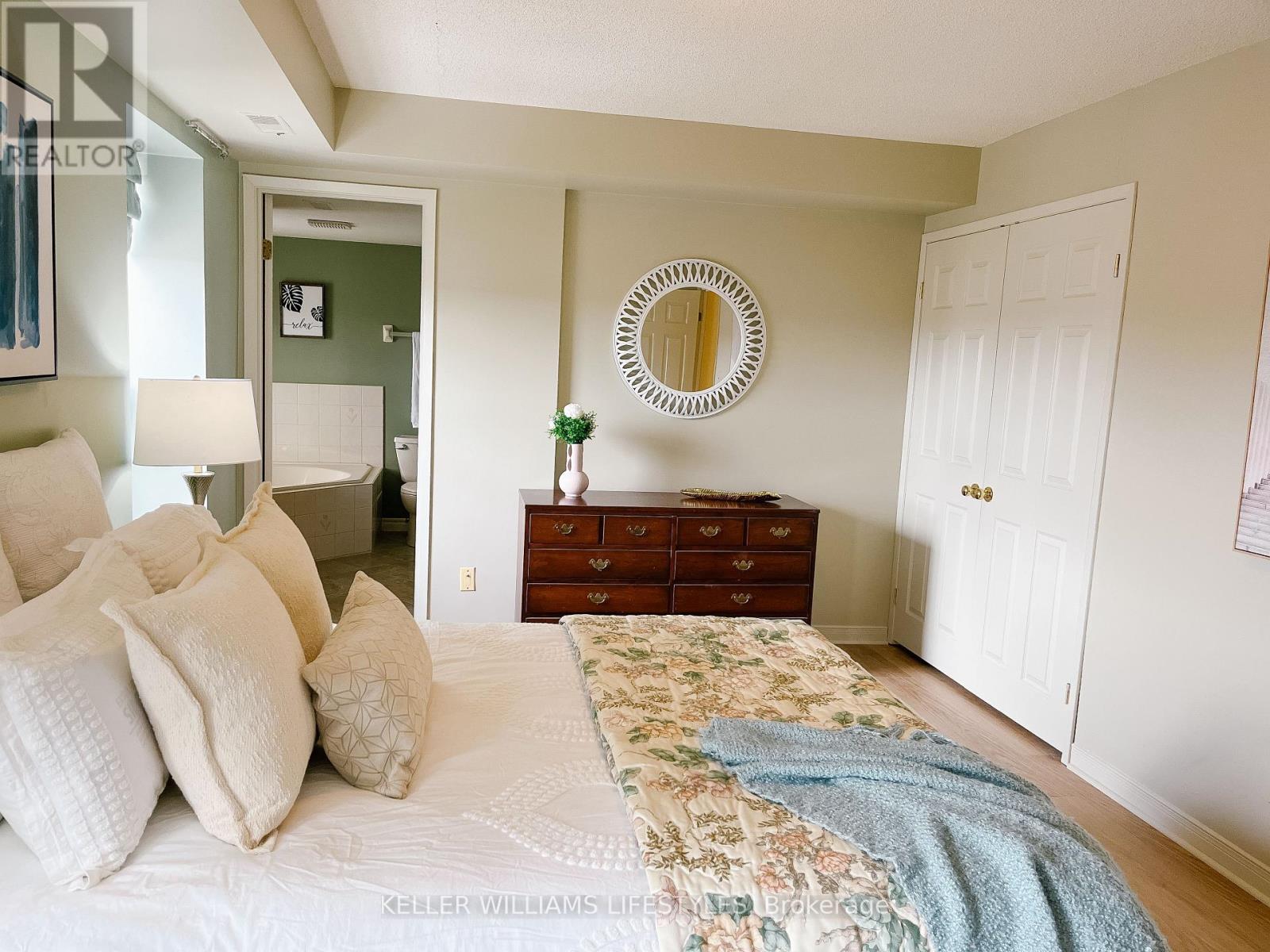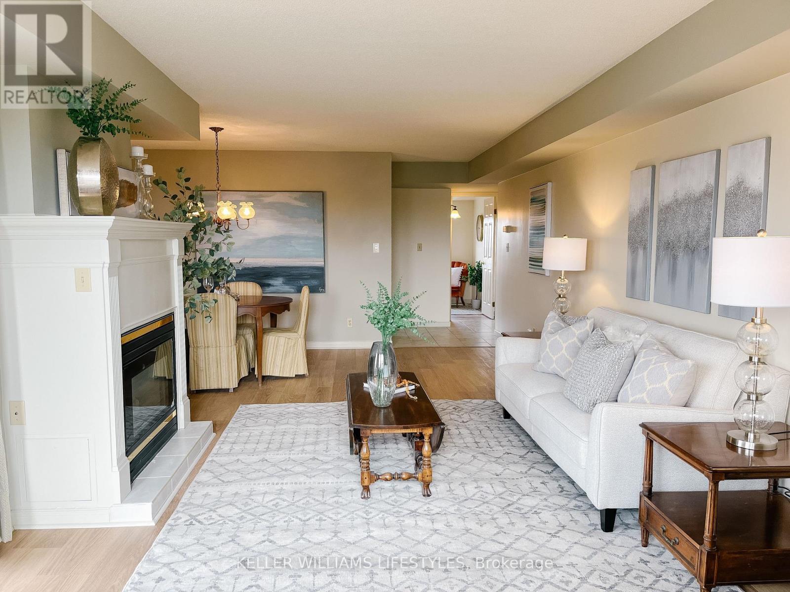Welcome to Unit 702 at 10 Van Allen Avenue - where comfort and easy living come together. This bright, freshly updated 2-bedroom, 1.5-bath condo offers low-maintenance living on the 7th floor. New flooring and fresh paint create a clean, inviting space. The spacious living and dining area with a cozy gas fireplace is perfect for relaxing or hosting family. The eat-in kitchen is ideal for everyday meals, while the private balcony offers beautiful river views - a peaceful place to unwind. The primary suite features double closets for ample storage and a private ensuite with a large soaker tub. A second bedroom is perfect for guests or hobbies, and in-suite laundry adds everyday convenience. Located close to shopping, dining, parks, and Thames River walking paths, this is ideal for downsizers seeking comfort, simplicity, and a welcoming community. (id:64974)