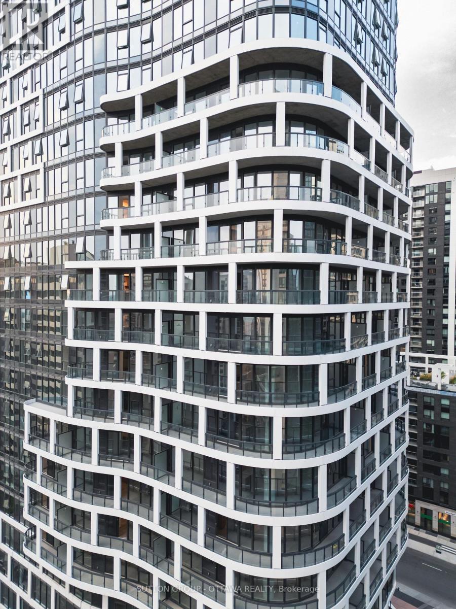 Experience refined urban living at Relevé, a newly built luxury rental community in the heart of downtown Ottawa. This exceptional corner two-bedroom, two-bathroom residence offers a rare combination of space, light, and design, ideal for those seeking both comfort and sophistication in a premier location. Perfectly positioned just steps from transit, dining, business hubs, and cultural attractions, Relevé places the city at your doorstep while offering a calm, elevated living experience above it all. This thoughtfully designed 801 sq ft layout features a beautiful open-concept living and dining area, enhanced by expansive windows that wrap the corner of the suite and deliver stunning open views and abundant natural light throughout the day. The modern kitchen anchors the space with clean lines, quality finishes, and seamless flow, making it equally suited for everyday living or entertaining. Both bedrooms are generously proportioned, with the primary suite offering a private ensuite and excellent separation for added privacy. Contemporary bathrooms, in-suite laundry, and smart storage solutions complete a layout that feels both functional and refined. Residents of Relevé enjoy access to over 20,000 square feet of premium amenities, designed to support a balanced and elevated lifestyle. Wellness, fitness, entertainment, and social spaces are complemented by outdoor terraces and resort-inspired features, creating a true extension of your living space. Optional concierge-style services and 24-hour security further enhance the experience, offering convenience and peace of mind rarely found in downtown rental living. This is a standout opportunity to enjoy luxury, space, and views in one of Ottawa's most exciting new developments. Schedule your private viewing and experience the difference firsthand. Max 1 parking space ($250 Standard, $275 Standard + Bike Rack Combo) (id:64974)