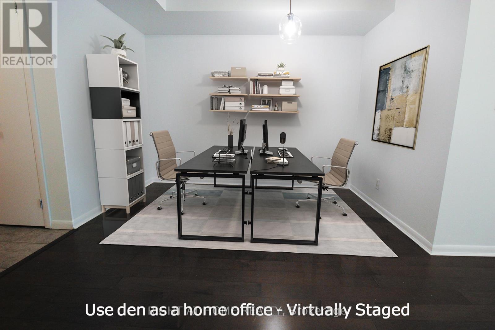 Sun Filled Beautifully Upgraded Suite Located In Popular Mystic Point! One Of The Best 640 Sf Floorplans! Large 10' X 6' Open Den (No Doors) Can Handle A Big Dining Table And Chairs Or A Spacious Office! If You Use The Den As An Office, There's Enough Space In The Living/Din Rm To Place A Sectional Couch, Big Screen Tv On Large Tv Wall, Plus A Breakfast Table And Chairs! Plank Laminate Flooring! Renovated Modern Kitchen with High End Cabinetry & Backsplash, Popular Caesarstone Quartz Counters! Elegant & Stylish Bathroom! Painted Neutral White Thruout! 21' X 4.5' Balcony Spans Across the Suite With 2 Walk-Outs (Master & Living) with Unobstructed Northern Views! Fabulous Building Amenities include Outdoor Pool W Sundeck, Indoor/Outdoor Hot Tubs, Sauna, Gym, Yoga, Squash Courts, Business Centre, 2 Billiard Tables, Library, Theatre W Stadium Seating, 24 Hour Concierge, Visitor Parking & More! (( 2 min drive to Metro Grocery, Shoppers Drug Mart, Starbucks, Sunset Grill Breakfast Restaurant, & Panago Pizza )), (( 5 min drive to Sobeys, another Shoppers Drug Mart, Cobs Bread, Subway Sandwiches, LCBO, Booster Juice, Pedi N Nails, Pizza Pizza, Dry Cleaners, & Lakeview Dental )), (( Parks = 3 min walk to Grand Avenue Park & 15 min walk to Humber Bay Park East which is a natural lakeside park & butterfly habitat on reclaimed land with cycling trails, ponds, parking lot, picnic tables and public restroom)), 3 min bike ride to Martin Goodman Trail where you can cycle along the lake for miles going east to Toronto or west to Oakville, 10 min walk to bus stop, 20 min walk to Mimico GO, 4 min drive to Gardiner Expy East, 2 min drive to Gardiner Expy West, near Mimico Cruising Club and Etobicoke Yacht Club! (All area amenities must be verified by tenant - it's possible some store or shop mentioned in this listing is no longer in the area). The current tenant will be leaving before May 1st, so the apt may be available from Apr 23rd. ** Photos were taken before the tenant moved in ** (id:64974)