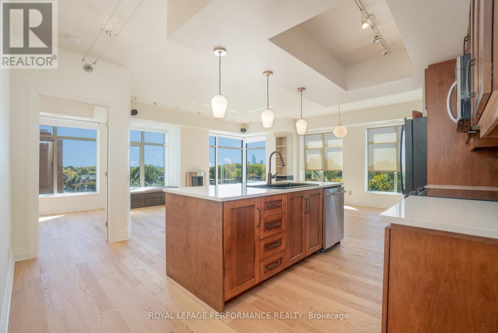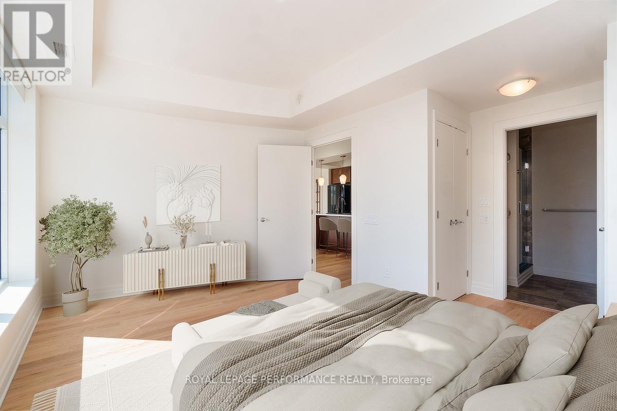 Welcome to Hudson Park! This elevated CORNER END UNIT boasts nearly 1,200 sq. ft. of polished, turn-key sophistication, RENOVATED in 2025 with over 50K in upgrades & finishes! Step through a chic terrazzo-style foyer (with new subfloor) into an airy, open-concept great room wrapped in oversized windows that drench every space in natural light, with BRAND NEW HARDWOOD FLOORING and new subfloor throughout! The living and dining areas are anchored by a refined fireplace, a perfect touch of elegance. The adjacent MODERN kitchen dazzles with a sleek backsplash, a centre-island breakfast bar with designer pendant lighting and Canadian-made, GREENGUARD-certified QUARTZ counters. New lower cabinetry and surfaces deliver both style and everyday durability! A versatile den/office opens directly to a private balcony, your quiet nook or workstation. The private bedroom wing features a large, sunlit primary suite with two closets and a magazine-worthy 3-piece ENSUITE, beautifully designed for a clean, contemporary look. A well-proportioned second bedroom sits beside a full 4-piece guest bath finished with new tile flooring, subfloor, vanity, and QUARTZ countertop. Practicality is equally luxe: IN-SUITE laundry, a newer heat pump, an UNDERGROUND PARKING space, and a storage unit. Life at Hudson Park places you moments from Ottawa's best conveniences, cafés, dining, shops, and transit plus building amenities that elevate daily living: an exercise room, a rooftop terrace with skyline views, and a stylish party/meeting room. A rare, refined offering, bright, modern, and impeccably reimagined. (id:64974)