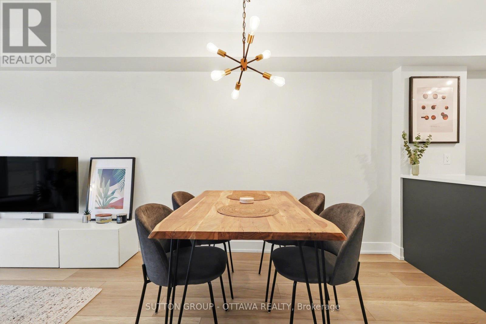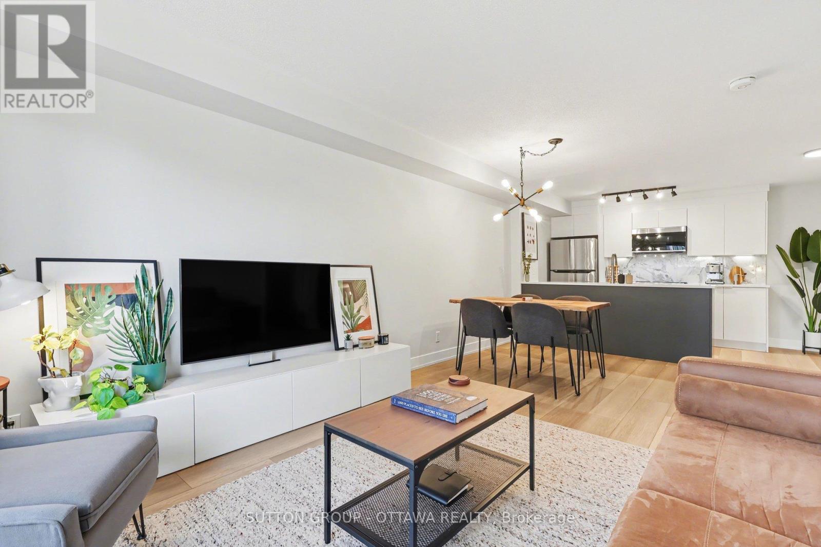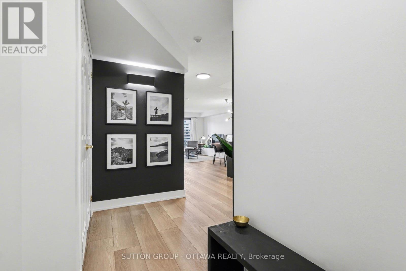 OPEN HOUSE: Saturday April 4th, 2-4PM. Some of the best condos in Centretown are hidden gems. Welcome to Unit 703 at The Strand. Step inside and you'll find one of the most thoughtfully renovated 1-bedroom condos downtown - a fully transformed space with value that is hard to beat. The kitchen was redesigned in 2021: enlarged storage, floor-to-ceiling white flat-panel cabinetry, quartz countertops, porcelain backsplash, a striking dark island with built-in dishwasher, and a full suite of stainless appliances. Wide-plank premium flooring (2021) runs seamlessly throughout, and the bathroom features a refreshed vanity with quartz countertop. This is not a cosmetic refresh it's a genuine, high-quality renovation. At 715 sq ft, the open-concept layout is one of the larger 1-bedroom footprints you'll find downtown, with room for a proper dining table, a full living room setup, and a private balcony. The bedroom stretches nearly 15 feet, offering plenty of room for a dedicated home office setup. The unit also includes underground parking and a storage locker - many comparable listings in this price range simply don't offer. Condo fees of $466/month cover heat, cooling, and water - among the most competitive you'll find downtown. What you get with those fees: a BBQ courtyard, bike storage, car wash area, party room, and nine visitor parking spaces. The building has also been actively investing in infrastructure: new HVAC (2021), upgraded entrance (2025), new entry system (2026), garage improvements (target April 2026), and elevator modernization (target Fall 2026). Located at Somerset and Kent in the heart of Centretown, you're steps from a grocery store, Bank Street restaurants and cafés, the Rideau Canal, and the Glebe. Lyon LRT is a short walk away.An exceptional opportunity for first-time buyers, professionals, or investors who want a move-in-ready downtown condo with real upgrades, real space, and real value. (id:64974)