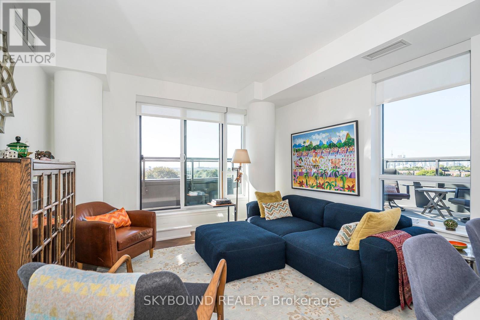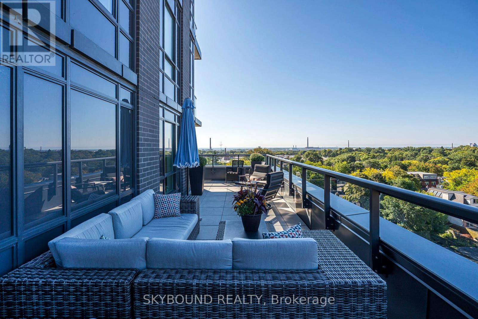 A Wow!! Unobstructed West, South and East Sweeping Views. Corner Unit! Arguably, The Best Toronto Skyline Prospective. 400 Plus Square Feet Of Private Terrace and Wrap Around Balcony. With, Rare Private BBQ Set Up And With Water Hookup. The Best Of What The Danforth Has to Offer. New Building 2020. One Owner. Two Bedrooms And A Den. The Master Bedroom Fits A King Bed And Has a 3 Piece Ensuite And Walk In Closet. Second Bedroom Has A Large South Facing Picture Window. With, A 4 Piece Washroom Right Outside The Bedroom Door. Also, A Private Den/Office Space. List Of Unit Upgrades Are Attached. Upgraded Kitchen Appliance Package, Upgraded Cabinetry. Full Size Stackable Washer And Dryer. Window Blinds Throughout & Blackouts In Bedrooms. Exquisite Upgraded Hardwood Flooring Throughout With Wide Plank Herringbone Pattern. Very European. A Fabulous Boutique Building, A Coveted Location. 9th Floor Amenities Include, Gym And Yoga Studio, Party Room, Games Room With Pool Table, Wrap Around Terrace With Sun Lounge, BBQ and Firepit. Steps To Greenwood TTC Subway Station. Check Out The Attached Video And Drone Pictures!! (id:64974)