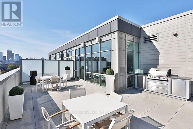 Experience modern boutique loft living at Sync Lofts in the heart of Toronto's vibrantRiverside community. This bright north facing 1 bedroom 1 bathroom unit offers a functionalopen concept layout with soaring concrete ceilings, oversized windows, and hardwood floorsthroughout, creating an airy and inviting space with plenty of natural light. The modernkitchen features sleek cabinetry, quality appliances, and ample counter space, ideal foreveryday living. The living area is well proportioned and walks out to a wide uncoveredbalcony with open north views. The bedroom comfortably fits a queen size bed and offers aclean and functional layout. Includes 1 locker conveniently located in the building. Steps toQueen Street East with top cafes, restaurants, and fitness studios including Blackbird Bakery,Dark Horse Espresso, and White Lily Diner. Excellent transit with streetcar at your doorstepand quick access to the DVP and downtown core. Building amenities include gym, party room,visitor parking, and rooftop terrace with BBQs. Tenant pays electricity through Metergy pluscable and internet. No parking. Available June 15 with potential for May 15 occupancy withproper notice (id:64974)