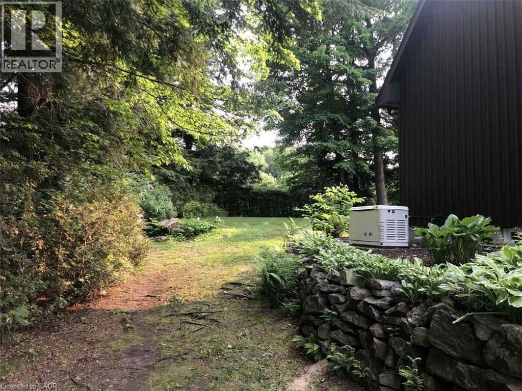 For more info on this property, please click the Brochure button. This charming custom-built Canadiana-style home offers peaceful country living on a beautifully treed, low-maintenance half-acre lot, with no front neighbours and just 10 minutes from all essential amenities and the hospital. The home features a freshly stained (2024) stone façade and board-and-batten wood siding. Elegant stonework flows from the driveway to the front entrance and into the backyard patio, which includes a fire pit, hot tub hookup, and natural gas line for a BBQ. Mature perennial gardens surround the home, adding colour and charm year-round. Inside, rich hardwood floors span the main and upper levels. The living room features a cozy wood-burning fireplace and opens into the dining area. A beautiful stone archway connects the dining space to the kitchen, which offers granite countertops and ample cabinet space. At the rear of the home, the sun-filled solarium provides a peaceful retreat with large windows overlooking the private yard and a natural gas fireplace for comfort. A den with Murphy bed sits adjacent to a full bathroom with a walk-in tub, making the main level ideal for guests or multigenerational living. Upstairs, a lovely hardwood staircase leads to three spacious bedrooms, including a generous primary suite with a walk-in closet. A 5-piece bathroom with in-suite laundry completes the upper floor. The finished basement features a family room with electric fireplace and surround sound, a bathroom with shower, cold storage, and a cedar closet. The attached single-car garage offers direct home access. Inclusions: Kitchen and laundry appliances, Murphy bed, drapes, and blinds. Extras: Bell Fibe, Generac generator, central vacuum, top-tier water system (2022), furnace (2021), AC, hot water tank (2021), well pump (2023), backup sump (2024), vinyl flooring (2023). A rare blend of rural charm and modern convenience. (id:64974)