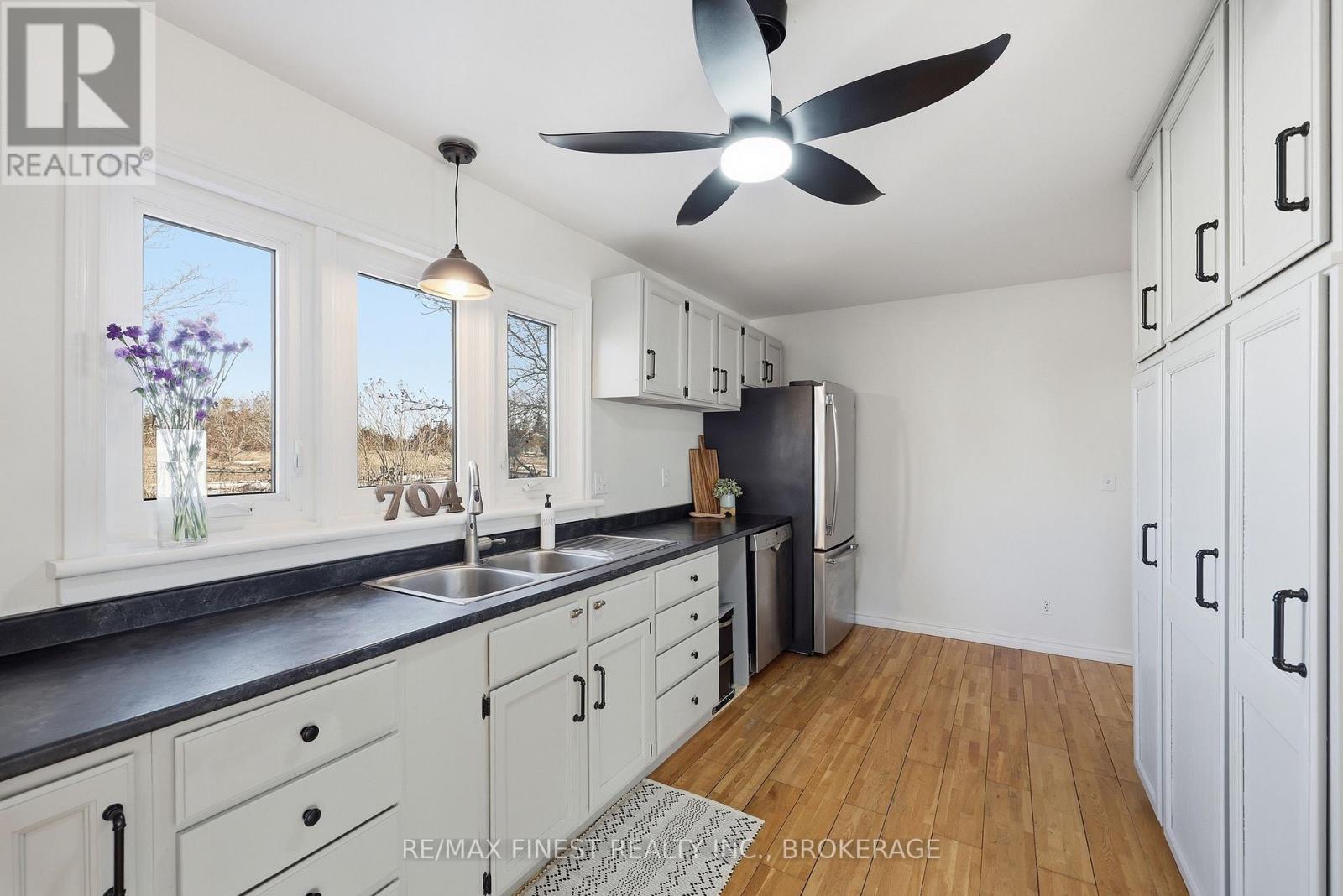 Welcome to 704 Wing Road in Odessa, a charming, updated bungalow set on a beautiful 2-acre property alongside scenic Millhaven Creek. This bright and inviting home offers the perfect balance of peaceful country living and modern upgrades, making it truly move-in ready. Inside, the home features 4 bedrooms, 2 bathrooms, fresh paint throughout, new carpeting, and stylish new light fixtures. The primary suite showcases refinished original pine plank floors (2026), adding warmth and character. The bright, spacious kitchen is equipped with stainless steel appliances. Step outside and enjoy your own rural retreat. The inground pool features a newer liner and custom safety cover (2021), perfect for relaxing or entertaining during the summer months. A brand new 26' x 48' detached garage (2025) offers exceptional space for vehicles, storage, or workshop use, while the gardening shed includes power and lighting for added versatility. Additional upgrades include a durable metal roof on the main house (2013), a new gravel driveway (2025), water system upgrades (2021), and all new plumbing fixtures, fittings, and valves installed in 2026. Set on a picturesque lot with creekside views and plenty of space to enjoy the outdoors, 704 Wing Road offers the tranquility of rural living just a short drive from local amenities. A rare opportunity to own a beautifully updated home in a peaceful country setting. (id:64974)